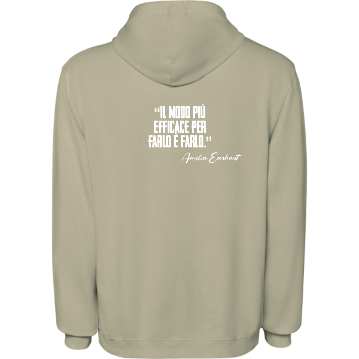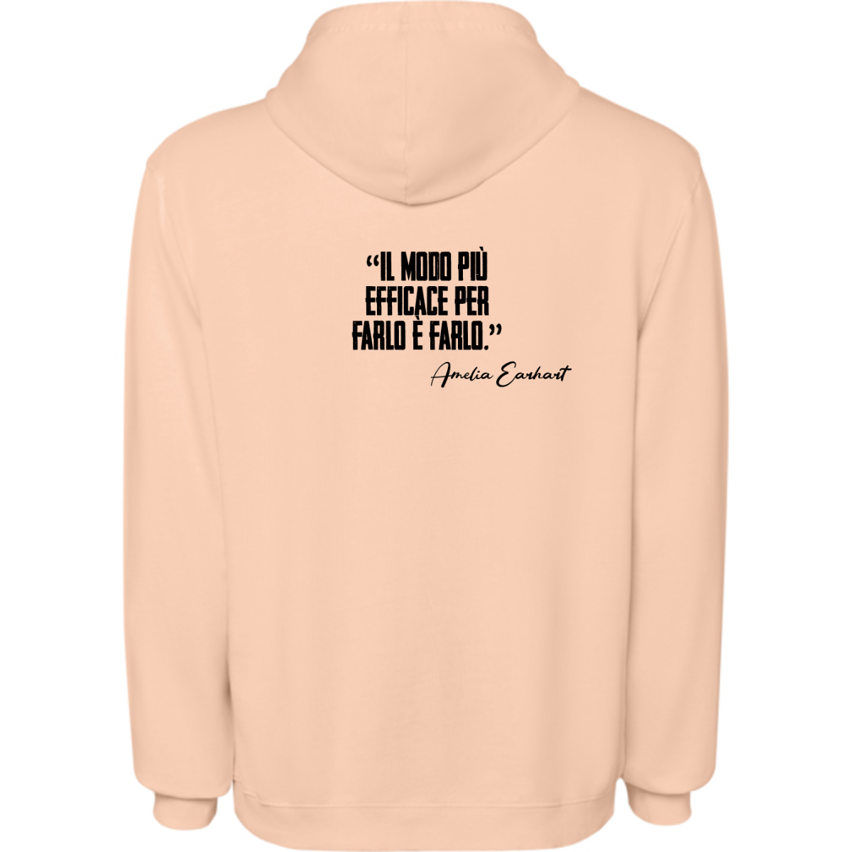 Felpa unisex con cappuccio foderato tono su tono, 100% cotone con finitura acid wash. Polsini e orlo in costina 2x1. Cordoni piatti tono su tono. Collo con copricuciture tono su tono. Tasca a canguro.