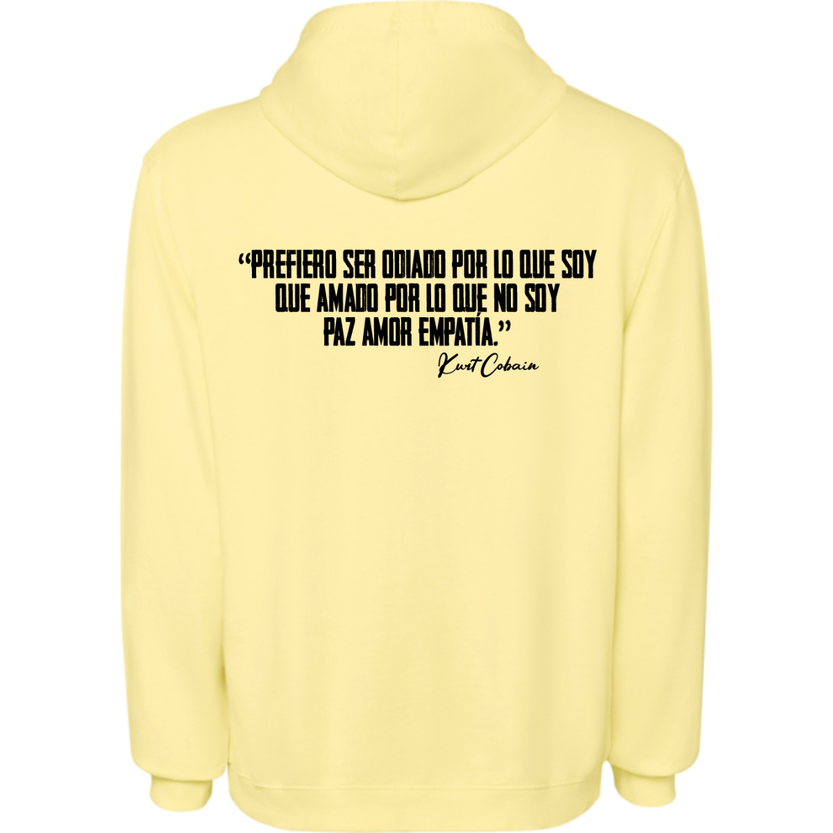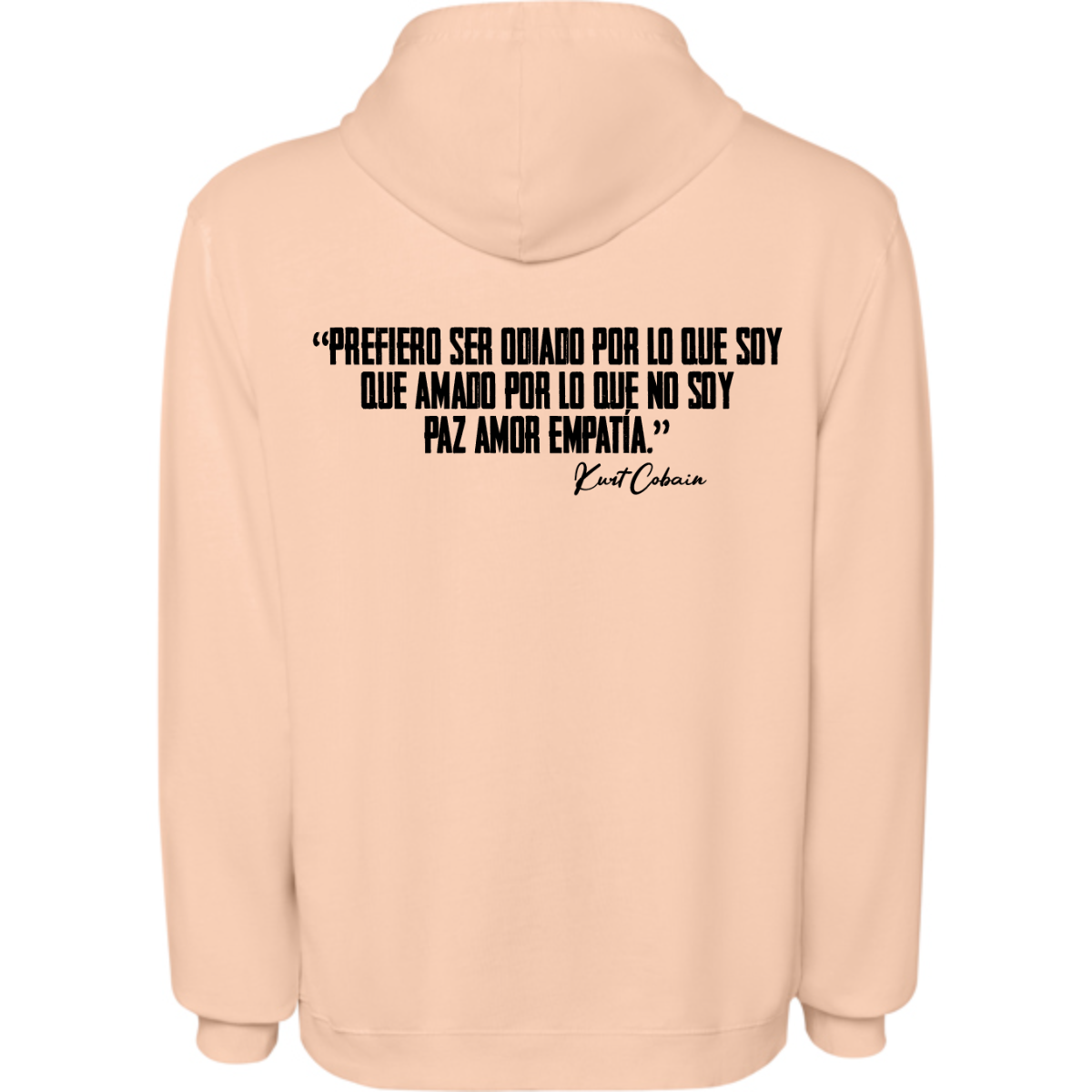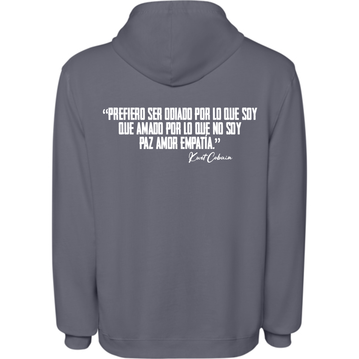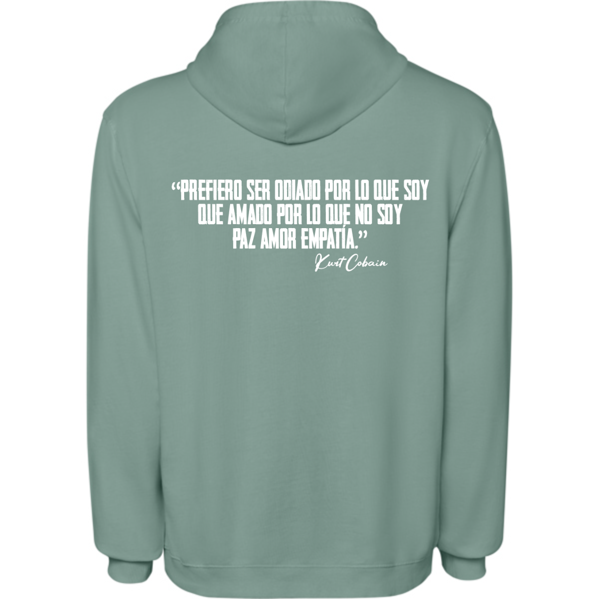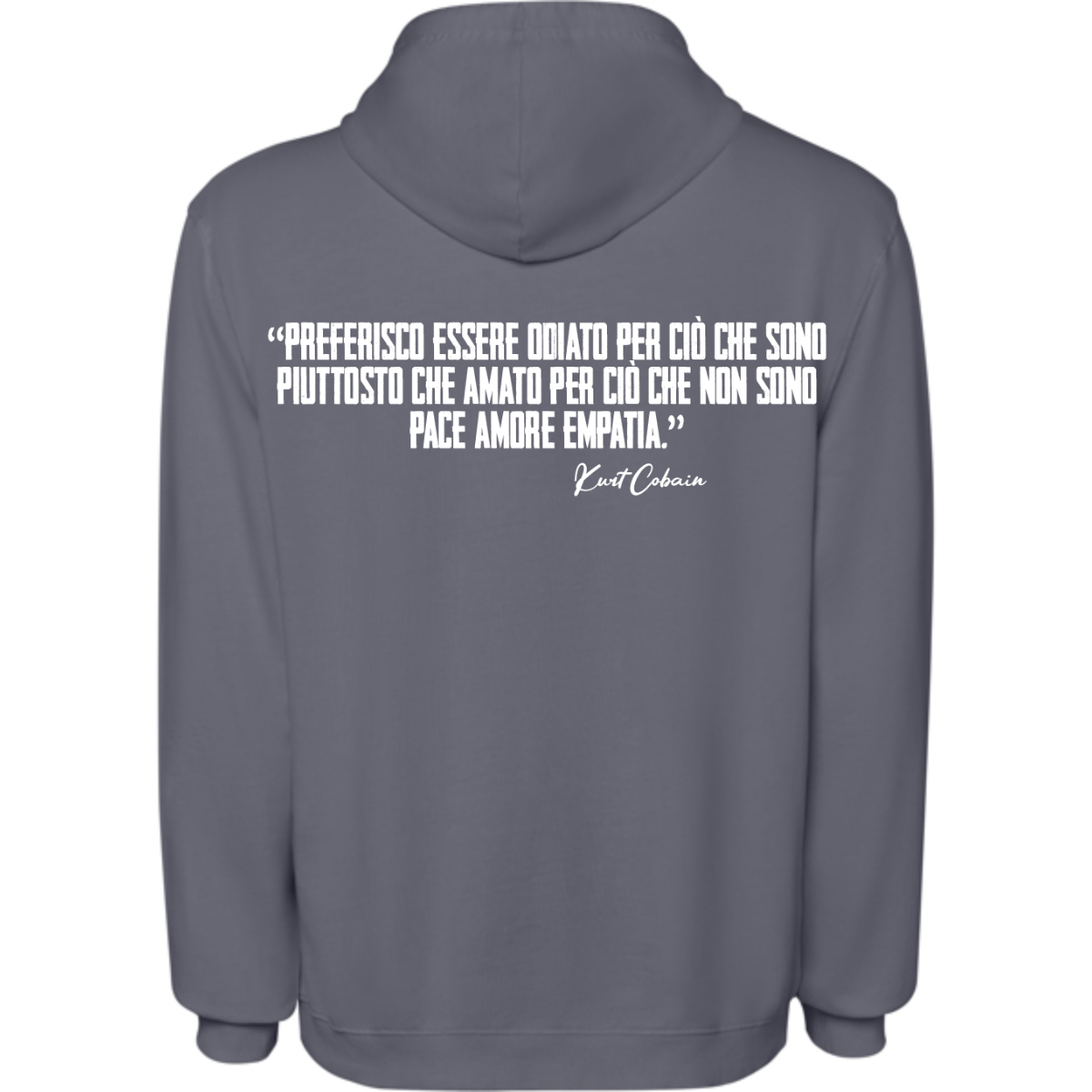 Felpa unisex con cappuccio foderato tono su tono, 100% cotone con finitura acid wash. Polsini e orlo in costina 2x1. Cordoni piatti tono su tono. Collo con copricuciture tono su tono. Tasca a canguro.