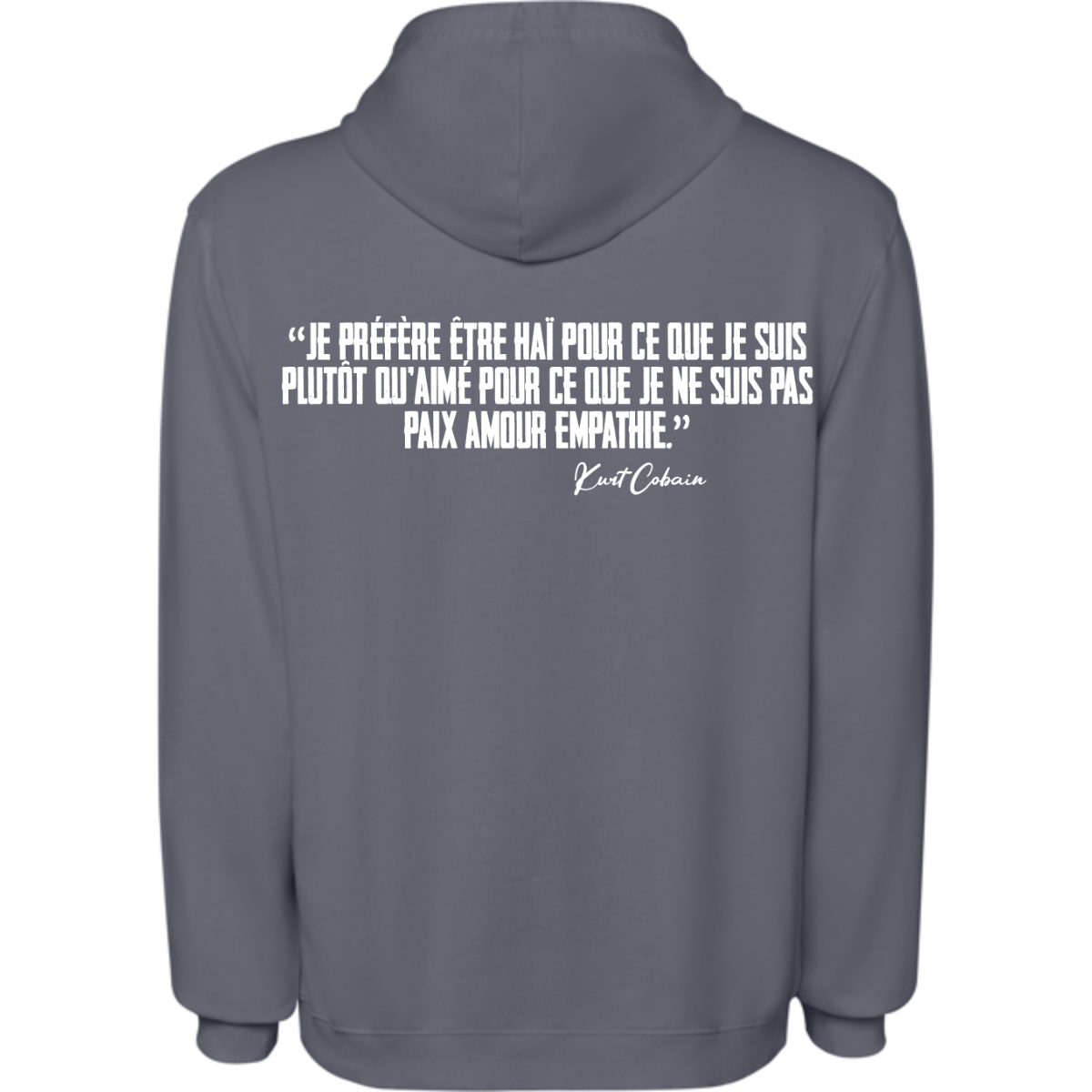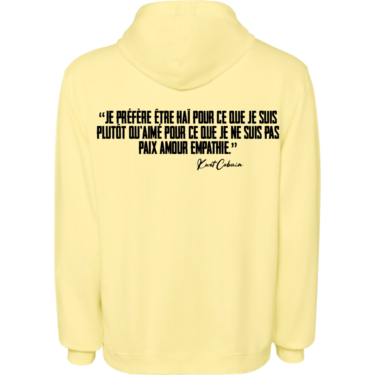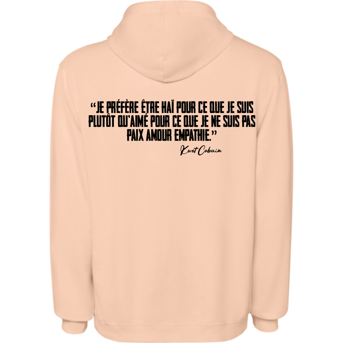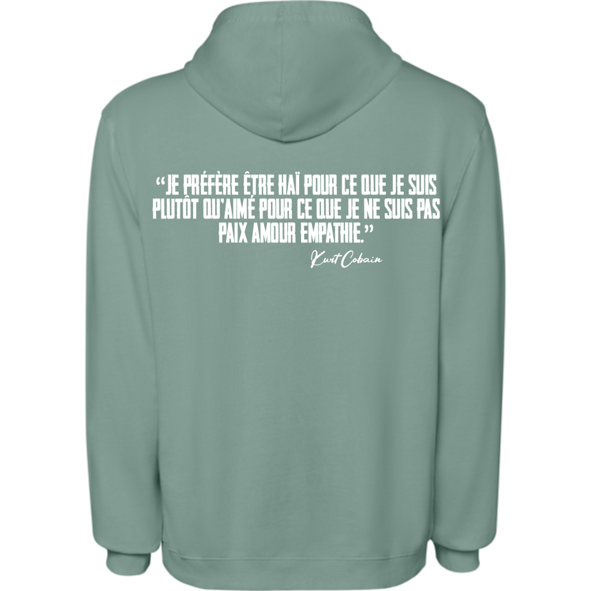 Felpa unisex con cappuccio foderato tono su tono, 100% cotone con finitura acid wash. Polsini e orlo in costina 2x1. Cordoni piatti tono su tono. Collo con copricuciture tono su tono. Tasca a canguro.
