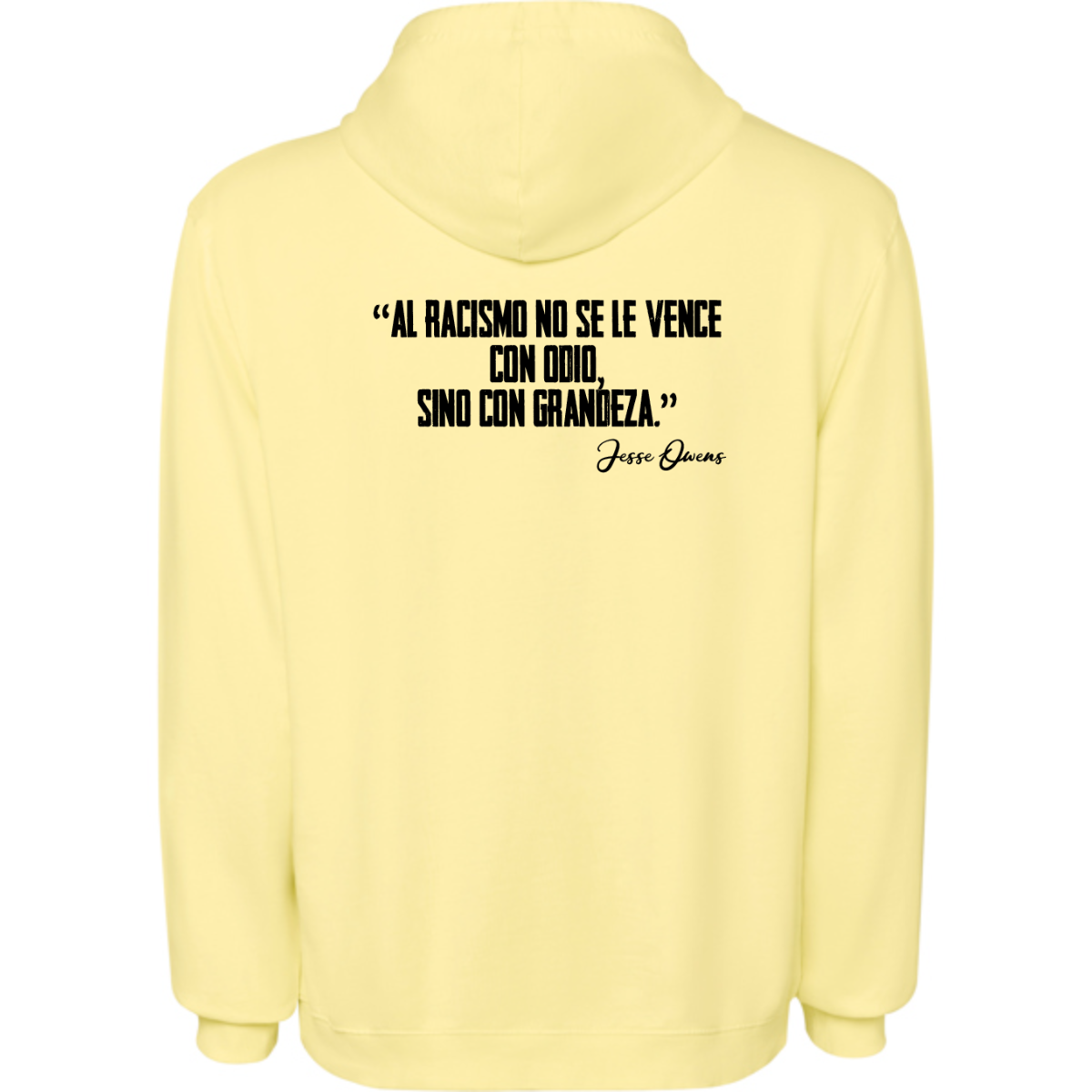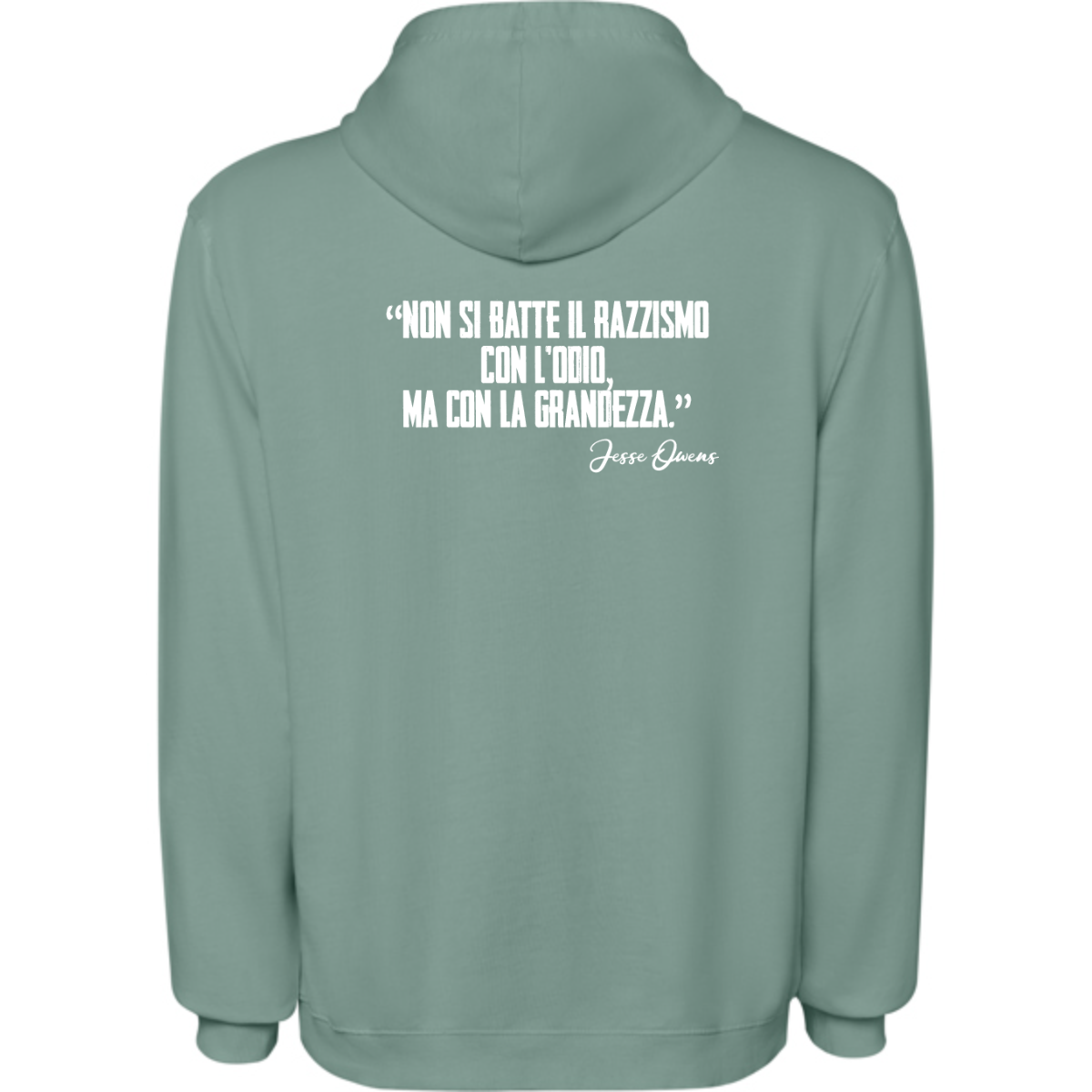 Felpa unisex con cappuccio foderato tono su tono, 100% cotone con finitura acid wash. Polsini e orlo in costina 2x1. Cordoni piatti tono su tono. Collo con copricuciture tono su tono. Tasca a canguro.