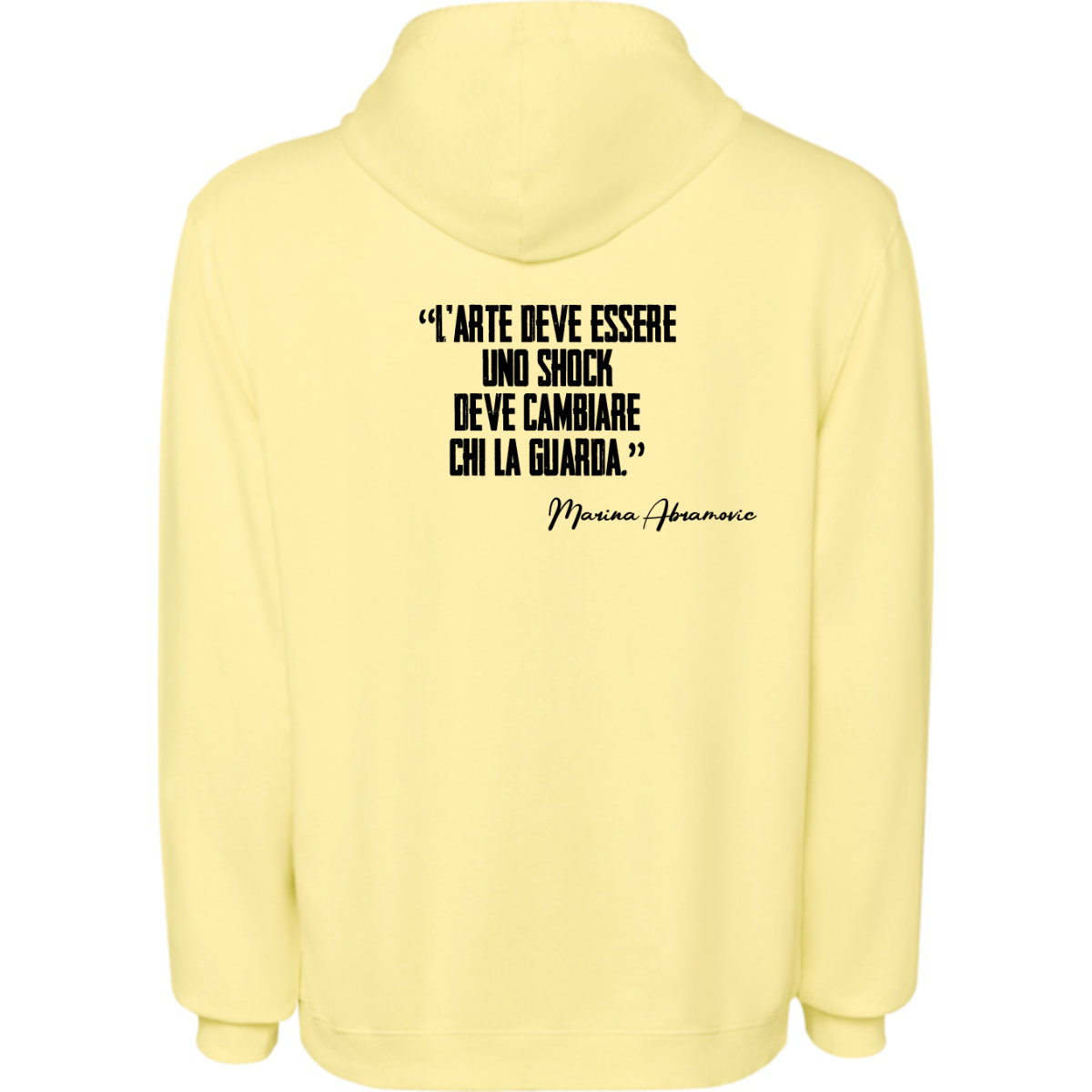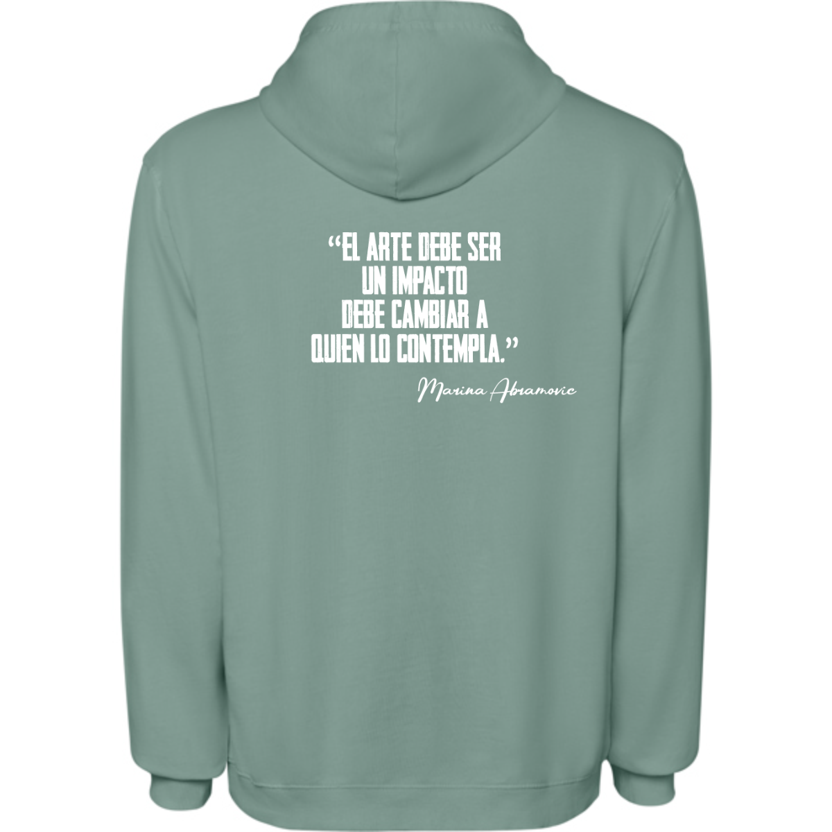 Felpa unisex con cappuccio foderato tono su tono, 100% cotone con finitura acid wash. Polsini e orlo in costina 2x1. Cordoni piatti tono su tono. Collo con copricuciture tono su tono. Tasca a canguro.