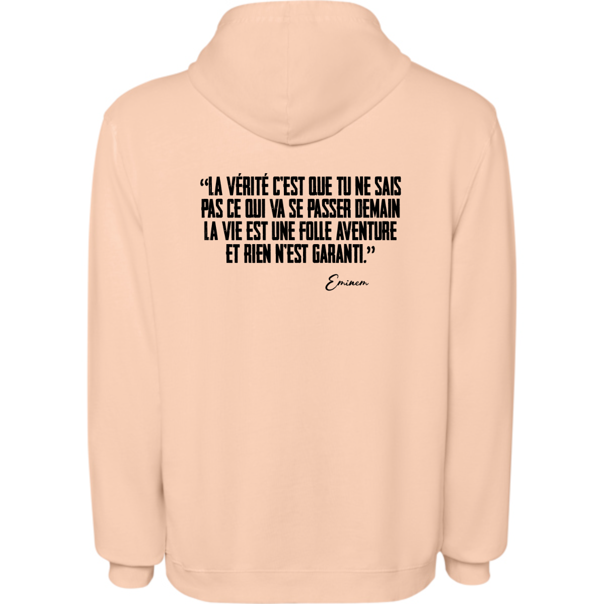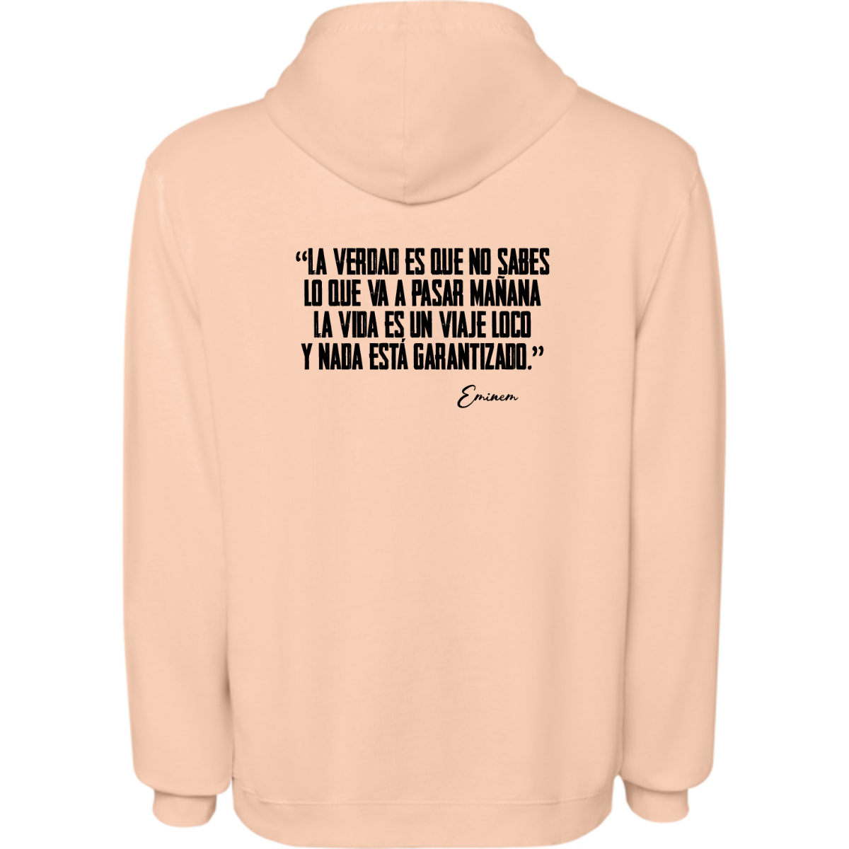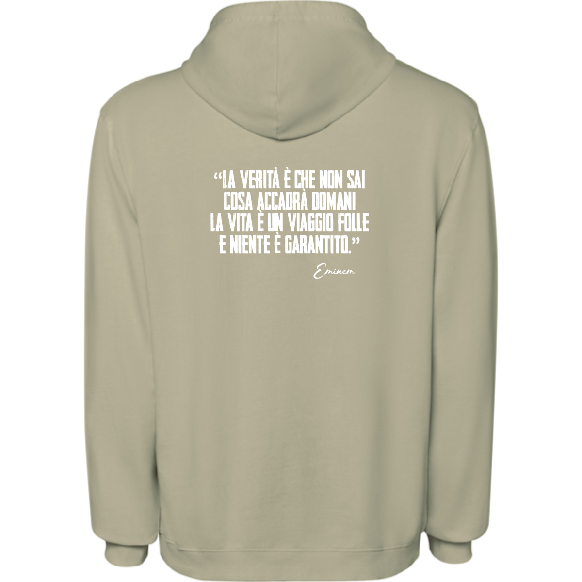 Felpa unisex con cappuccio foderato tono su tono, 100% cotone con finitura acid wash. Polsini e orlo in costina 2x1. Cordoni piatti tono su tono. Collo con copricuciture tono su tono. Tasca a canguro.