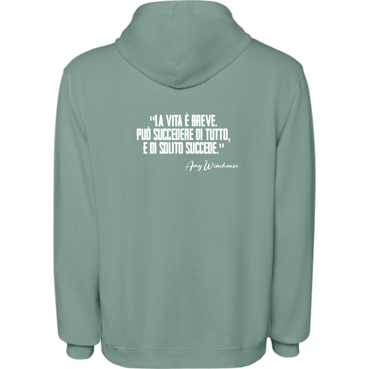 Felpa unisex con cappuccio, in cotone non garzato con effetto lavato. Tasca a marsupio. Polsini e vita a coste 2x1 con elastan. Coulisse piatta tono su tono con occhielli in metallo. Cuciture nastrate in tessuto coordinato. 100% cotone 250 g/m²