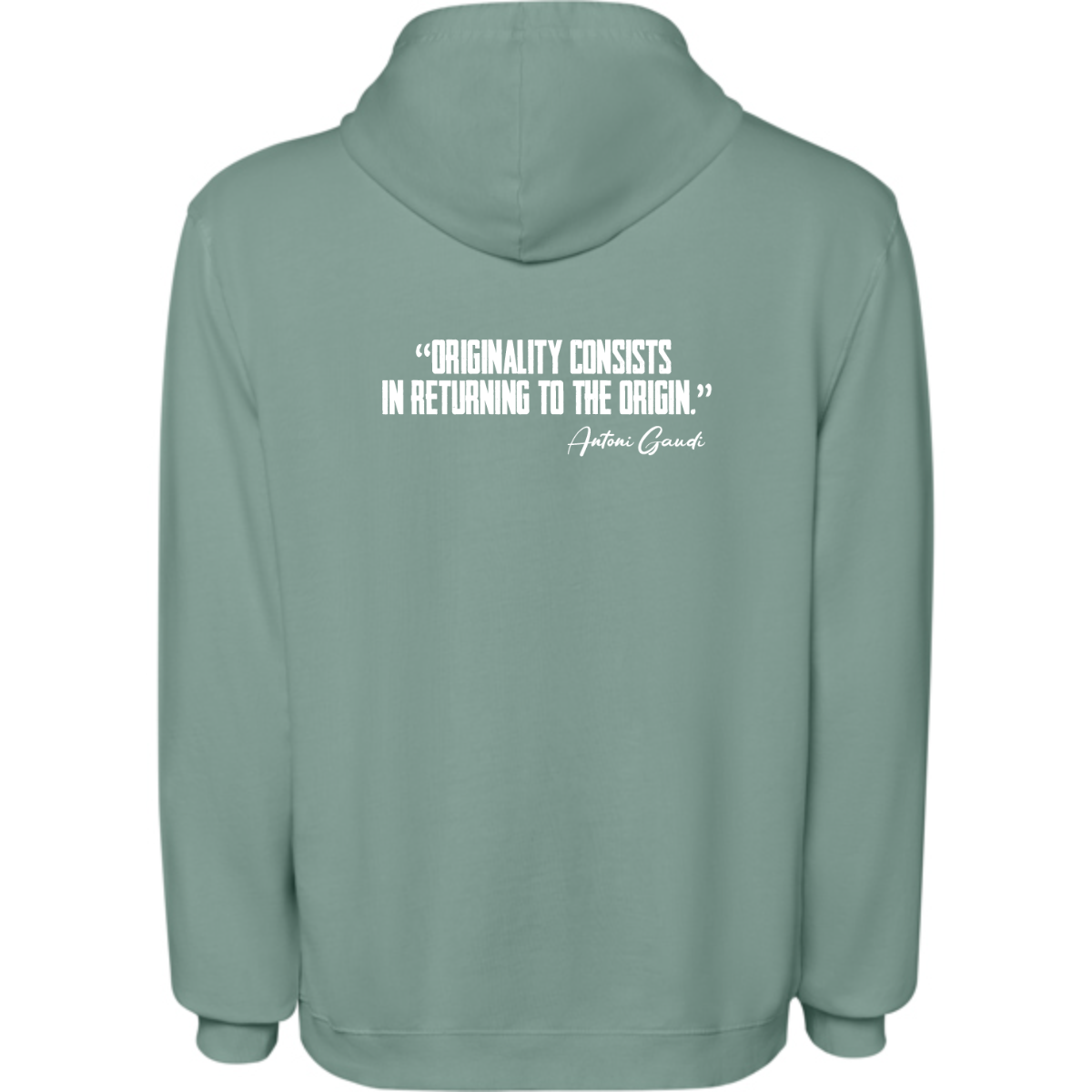 Felpa unisex con cappuccio, in cotone non garzato con effetto lavato. Tasca a marsupio. Polsini e vita a coste 2x1 con elastan. Coulisse piatta tono su tono con occhielli in metallo. Cuciture nastrate in tessuto coordinato. 100% cotone 250 g/m²