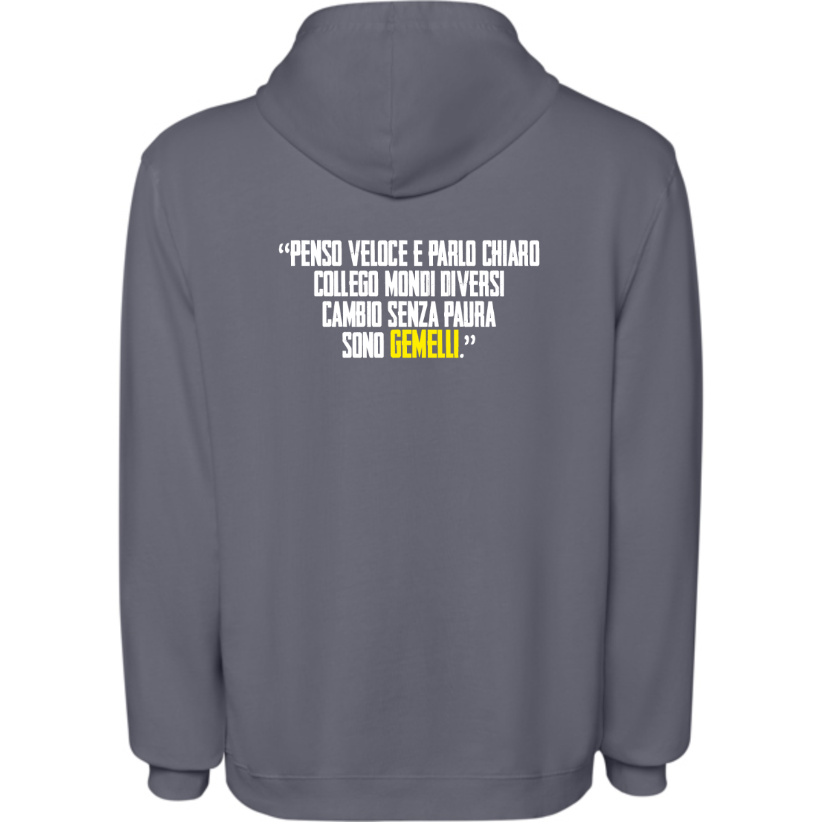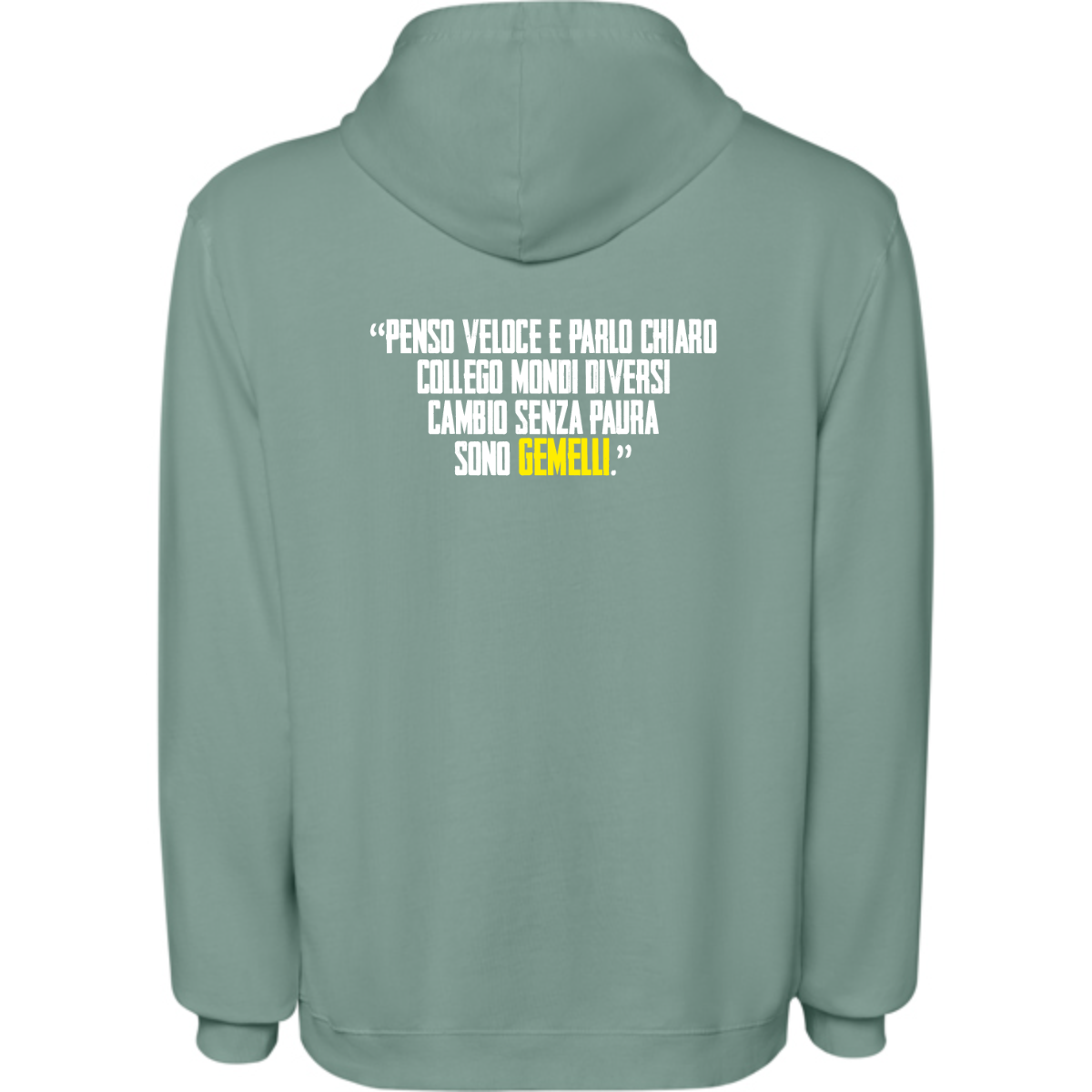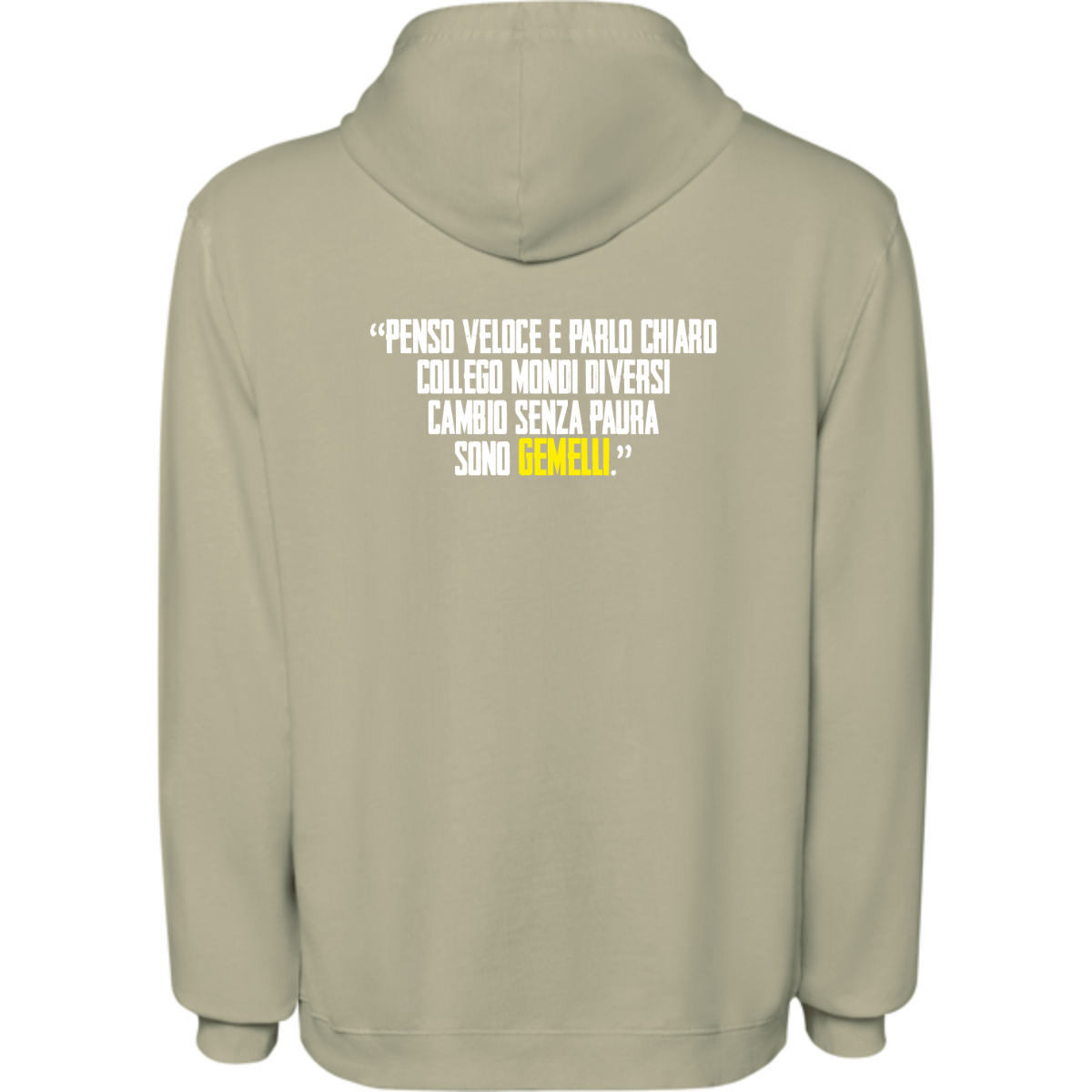 Felpa unisex con cappuccio, in cotone non garzato con effetto lavato. Tasca a marsupio. Polsini e vita a coste 2x1 con elastan. Coulisse piatta tono su tono con occhielli in metallo. Cuciture nastrate in tessuto coordinato. 100% cotone 250 g/m²