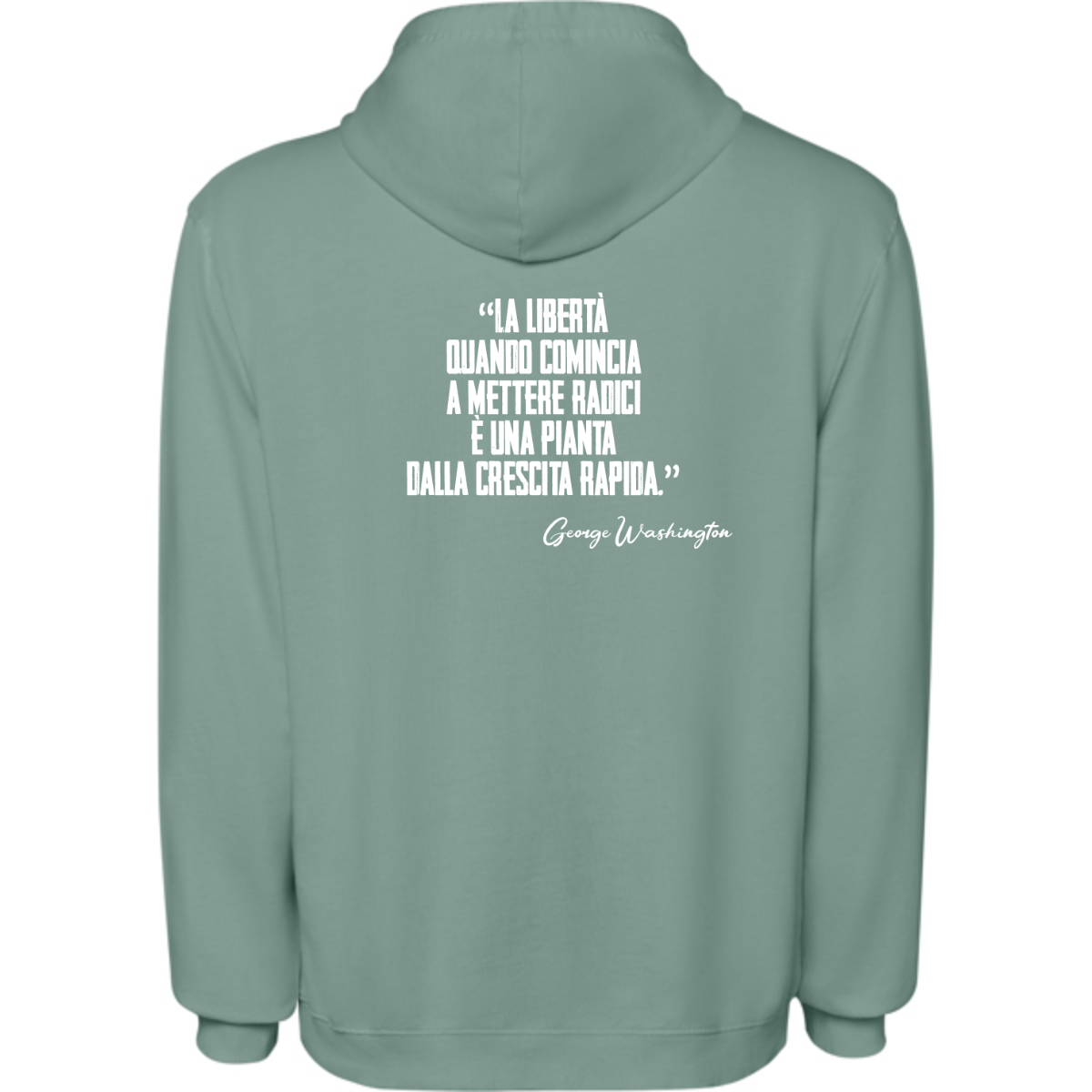 Sudadera unisex con capucha de algodón sin cepillar con efecto lavado. Bolsillo tipo canguro. Puños y cinturilla de canalé 2x1 con elastano. Cordón plano tono sobre tono con ojales metálicos. Costuras selladas a juego. 100 % algodón, 250 g/m².
