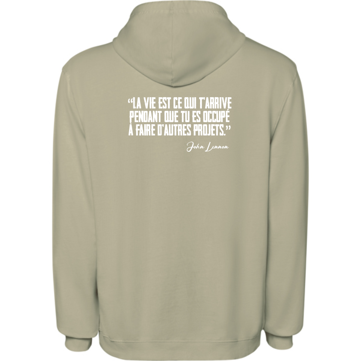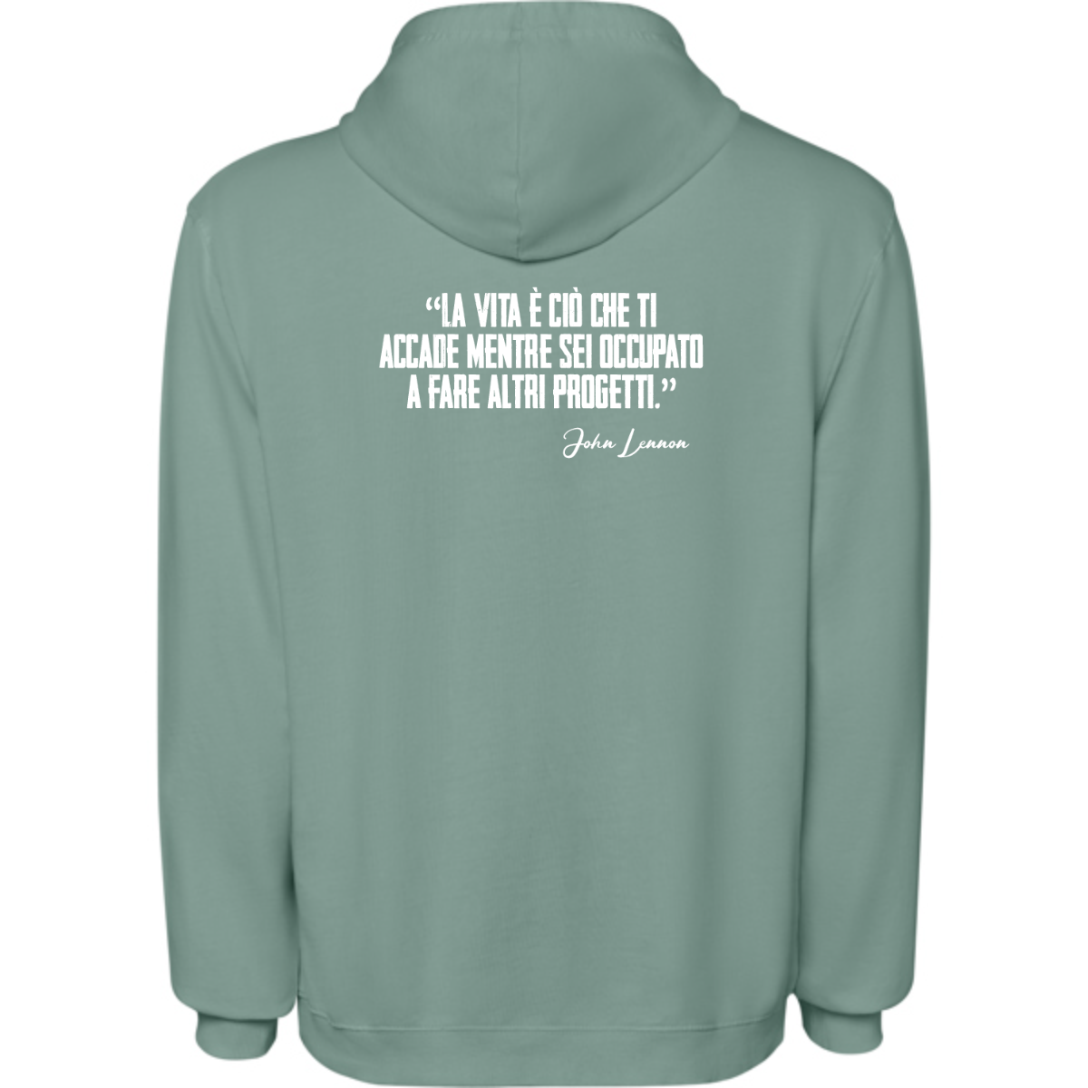 Felpa unisex con cappuccio, in cotone non garzato con effetto lavato. Tasca a marsupio. Polsini e vita a coste 2x1 con elastan. Coulisse piatta tono su tono con occhielli in metallo. Cuciture nastrate in tessuto coordinato. 100% cotone 250 g/m²