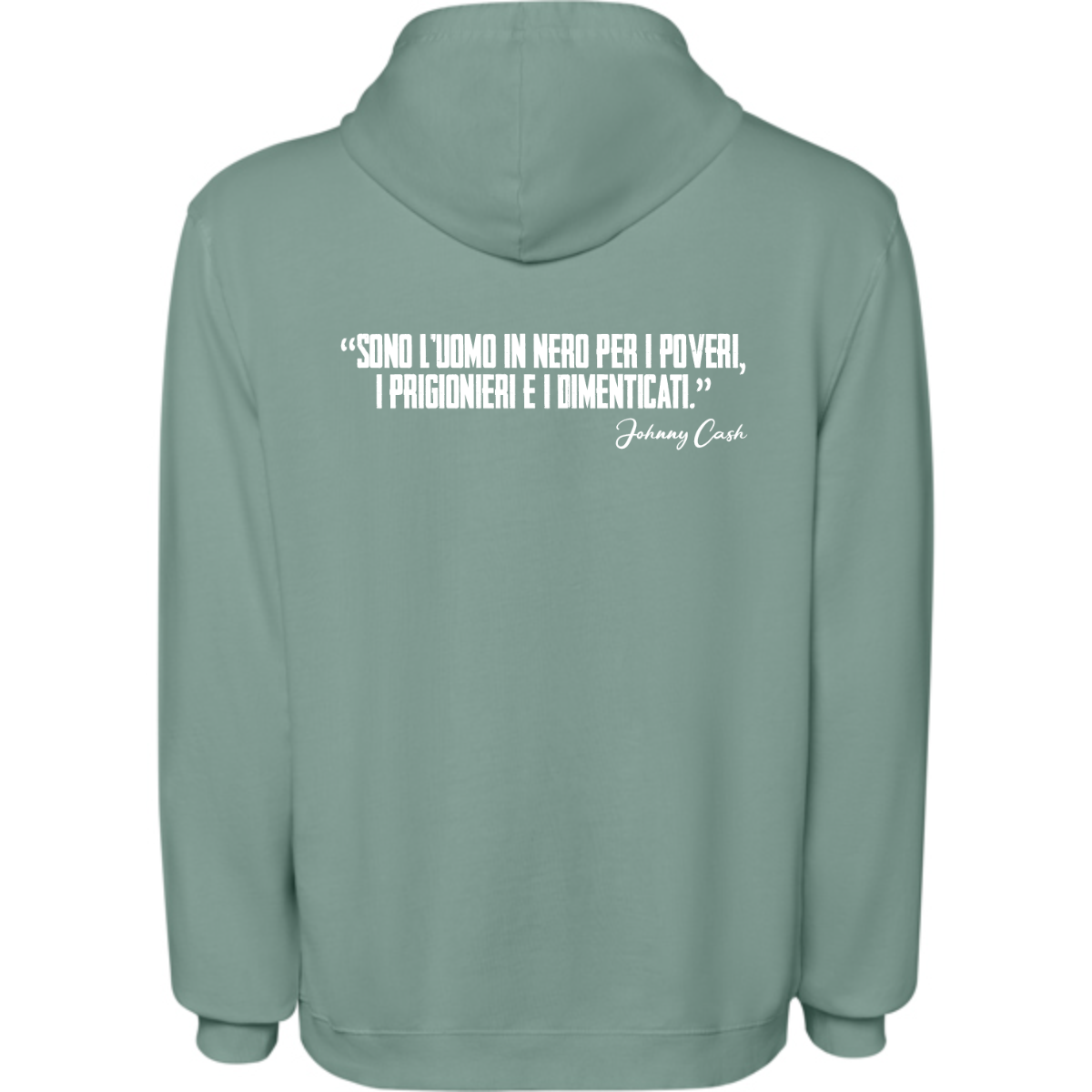 Felpa unisex con cappuccio, in cotone non garzato con effetto lavato. Tasca a marsupio. Polsini e vita a coste 2x1 con elastan. Coulisse piatta tono su tono con occhielli in metallo. Cuciture nastrate in tessuto coordinato. 100% cotone 250 g/m²