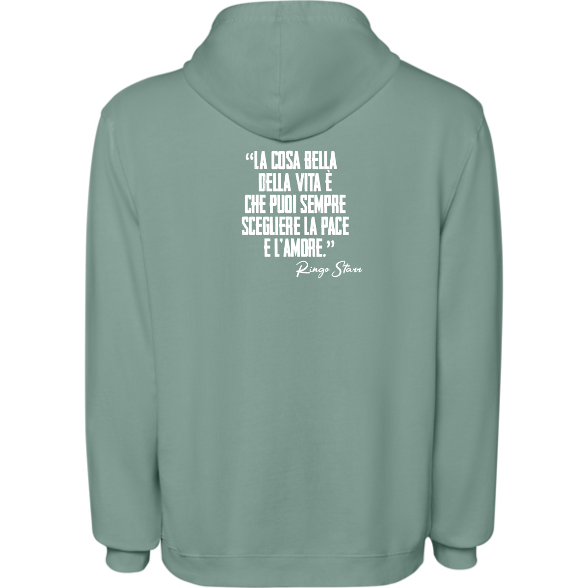 Felpa unisex con cappuccio, in cotone non garzato con effetto lavato. Tasca a marsupio. Polsini e vita a coste 2x1 con elastan. Coulisse piatta tono su tono con occhielli in metallo. Cuciture nastrate in tessuto coordinato. 100% cotone 250 g/m²