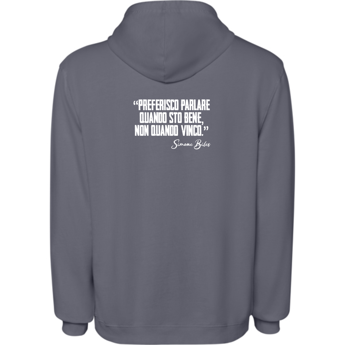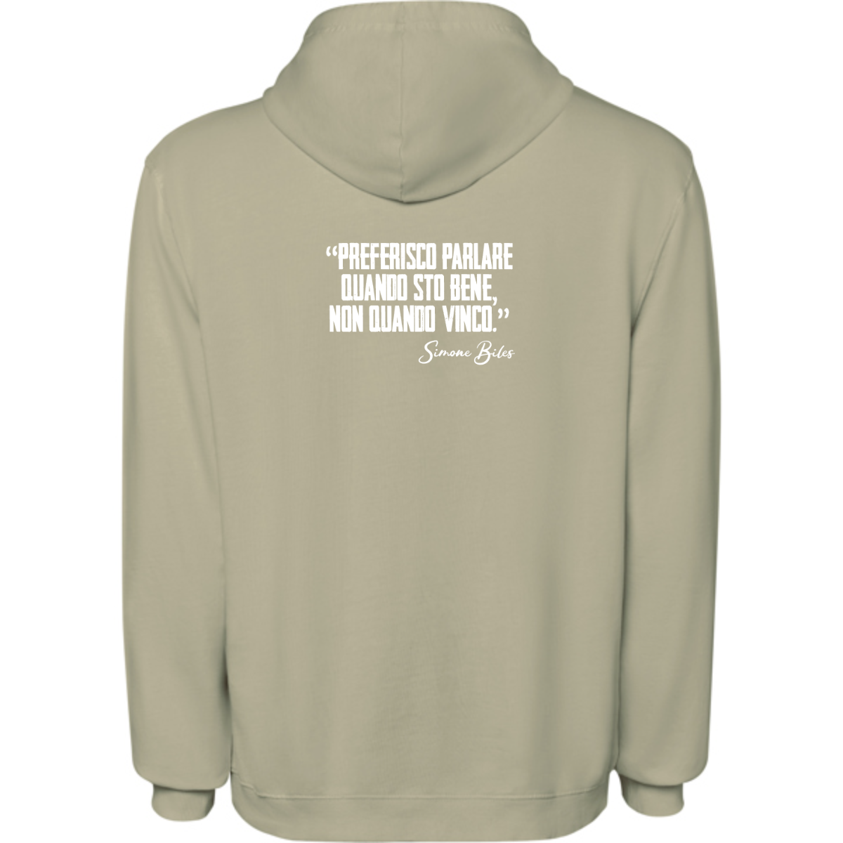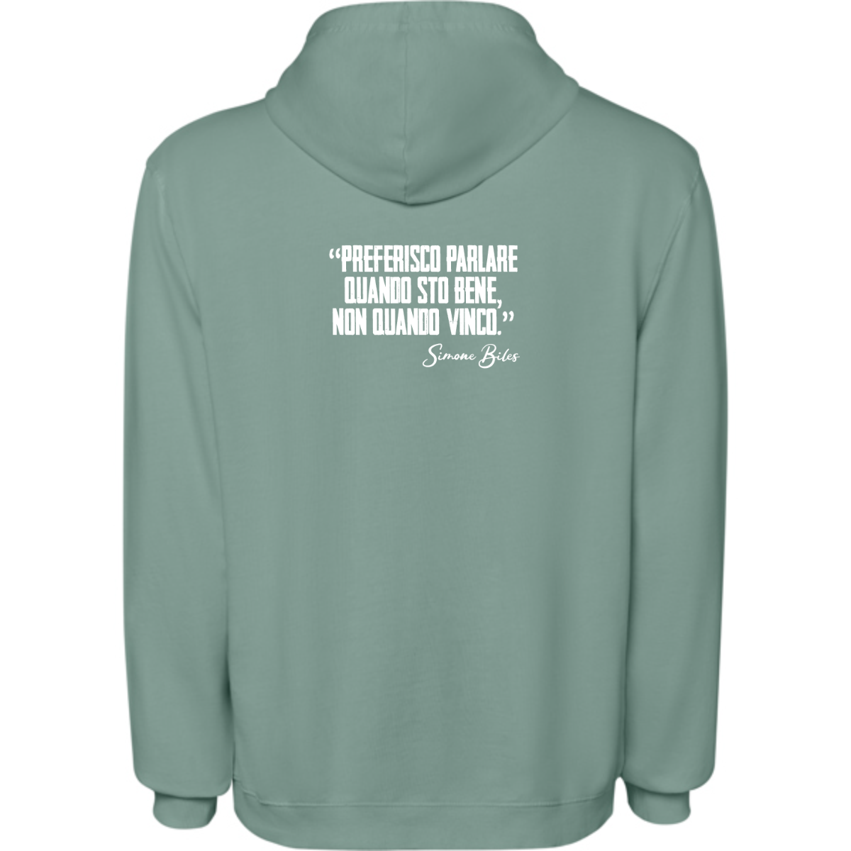 Felpa unisex con cappuccio, in cotone non garzato con effetto lavato. Tasca a marsupio. Polsini e vita a coste 2x1 con elastan. Coulisse piatta tono su tono con occhielli in metallo. Cuciture nastrate in tessuto coordinato. 100% cotone 250 g/m²