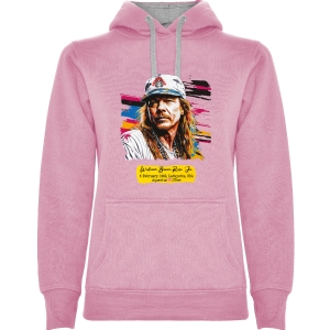 Felpa con cappuccio bicolore, tessuto doppio, con cordone regolabile. Tasca frontale. Costine 1x1 su polsini e girovita. Modello bambino senza cordone. Material: 50% cotone / 50% poliestere, interno felpato, 280 g/m².