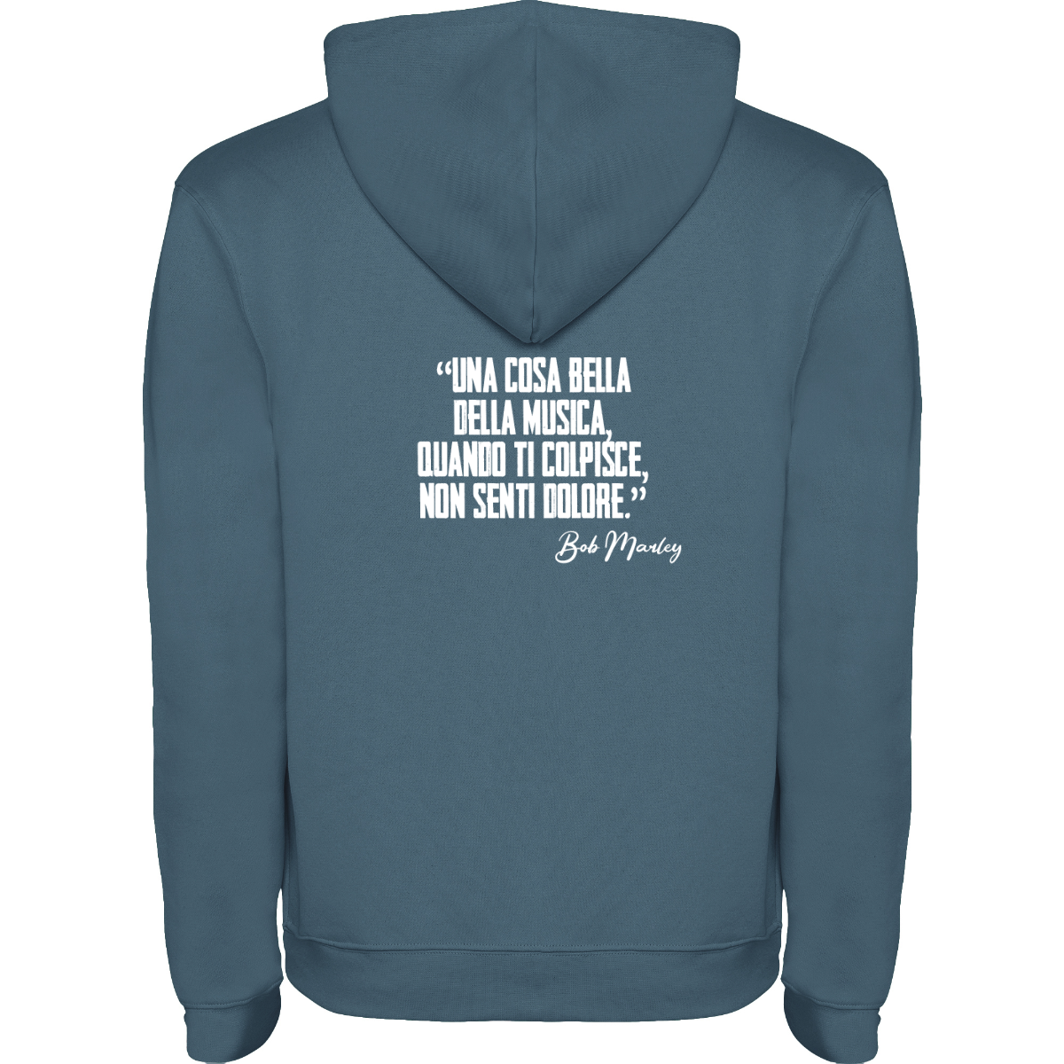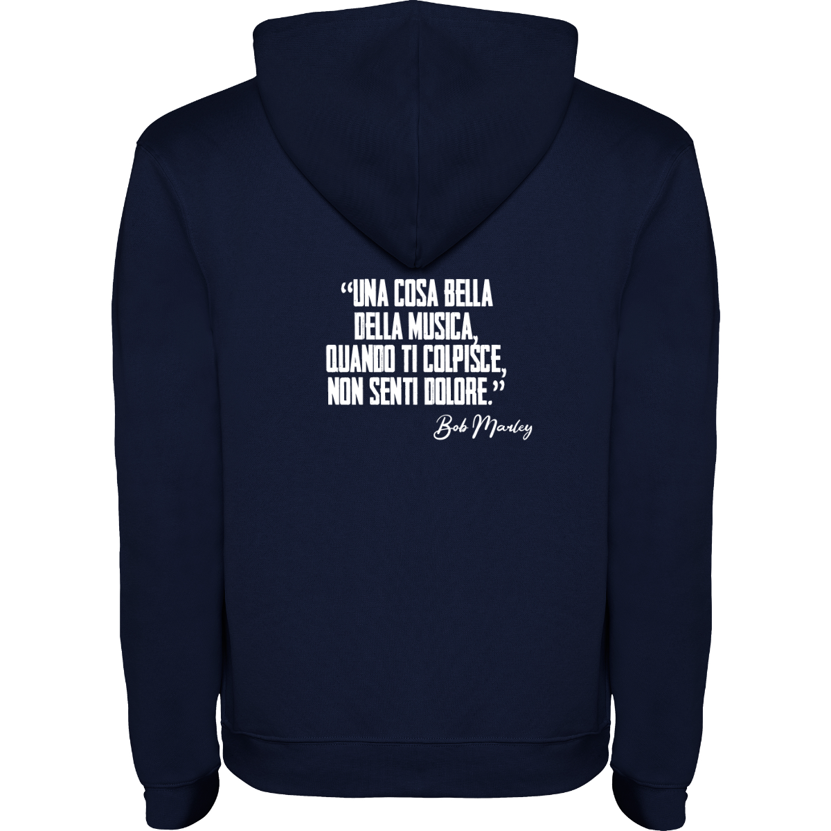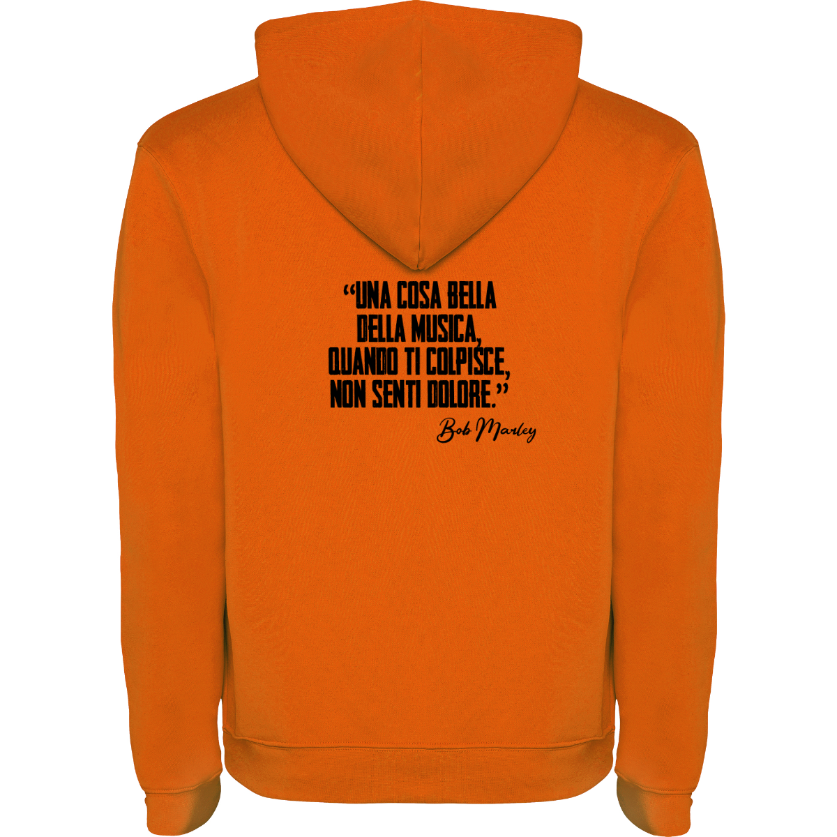 Felpa con cappuccio bicolore, tessuto doppio, con cordone regolabile. Tasca frontale. Costine 1x1 su polsini e girovita. Modello bambino senza cordone. Material: 50% cotone / 50% poliestere, interno felpato, 280 g/m².
