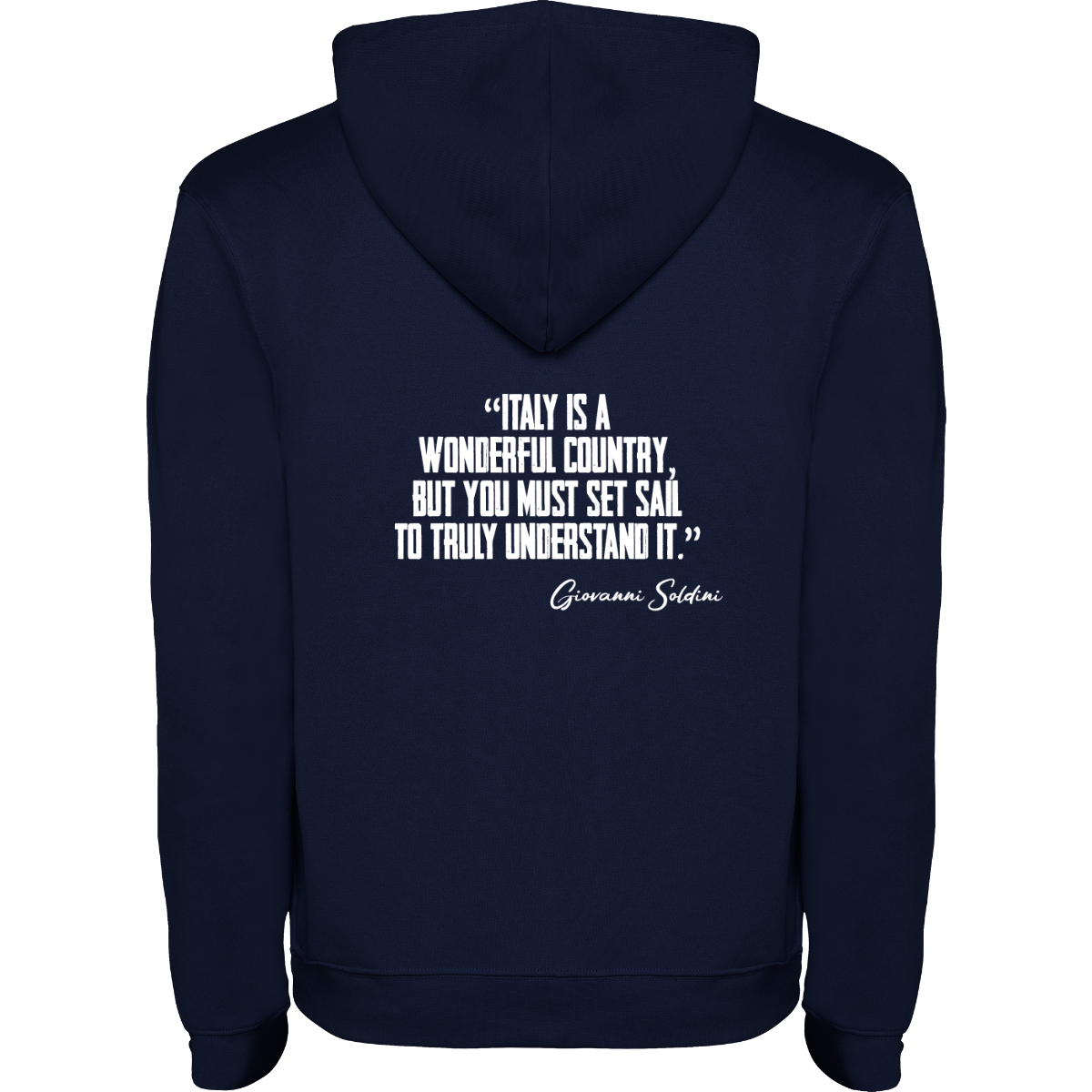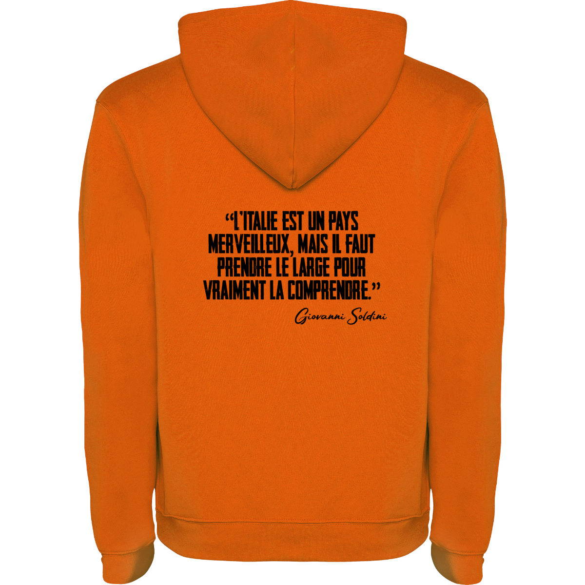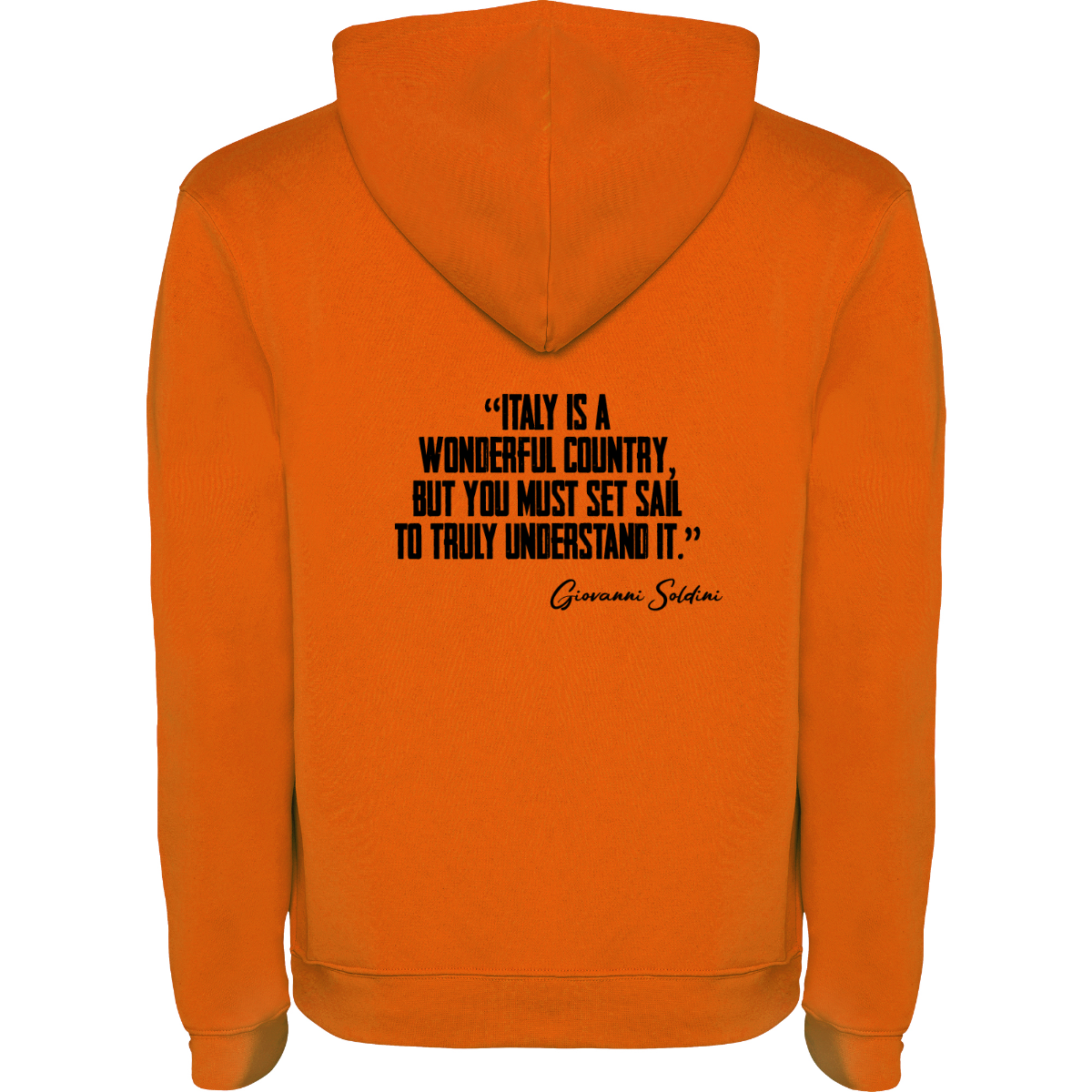 Sudadera bicolor con capucha, de doble tejido y cordón ajustable. Bolsillo frontal. Puños y cinturilla de canalé 1x1. Modelo para niño sin cordón. Material: 50 % algodón / 50 % poliéster, forro polar, 280 g/m².