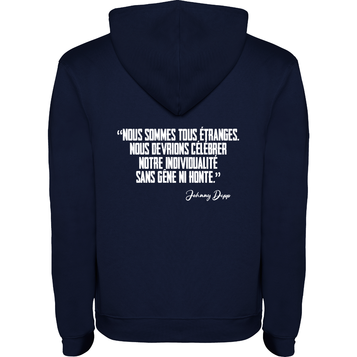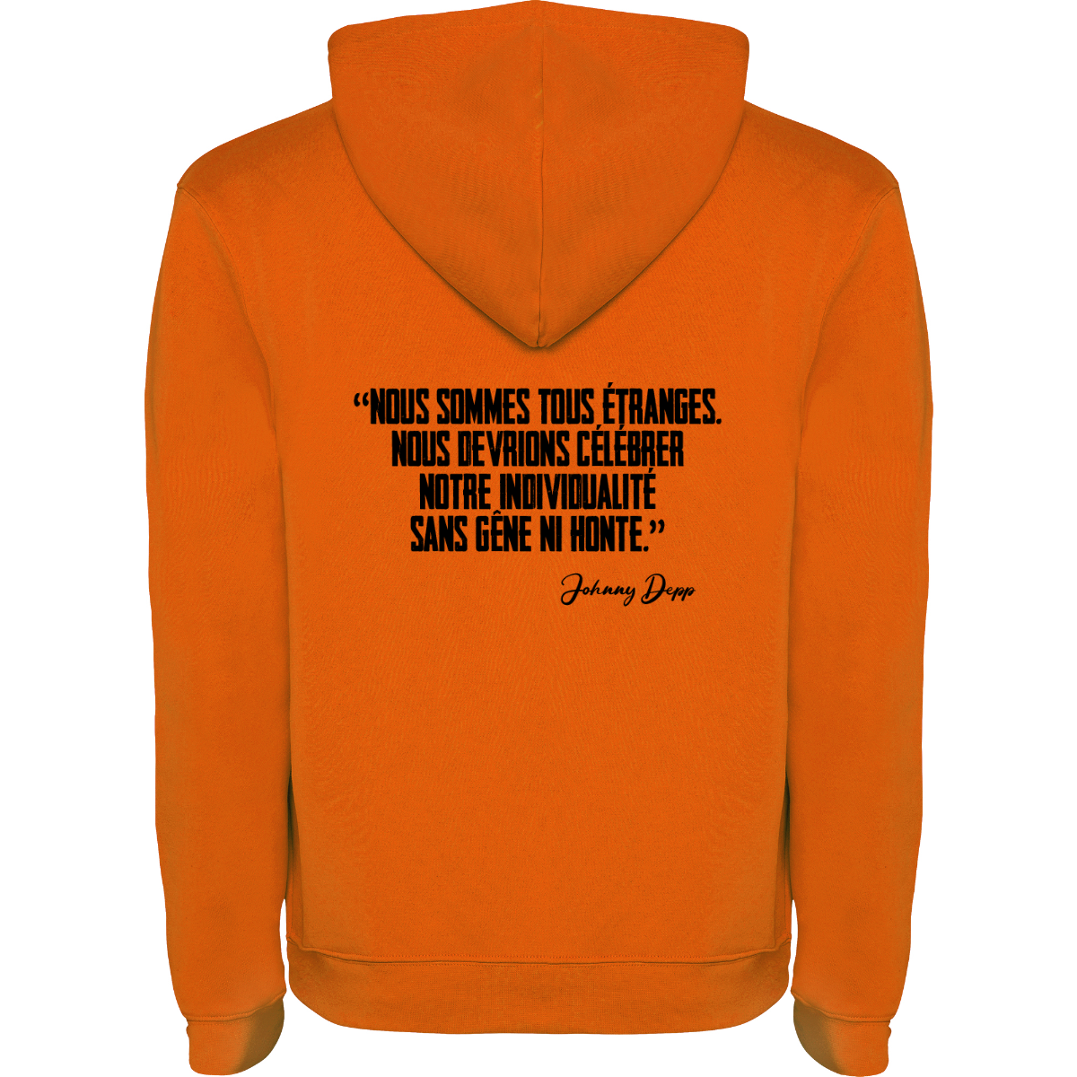 Sweat à capuche bicolore, double tissu, avec cordon de serrage réglable. Poche avant. Poignets et taille en bord-côte 1x1. Modèle garçon sans cordon de serrage. Matière : 50 % coton / 50 % polyester, doublure polaire, 280 g/m².