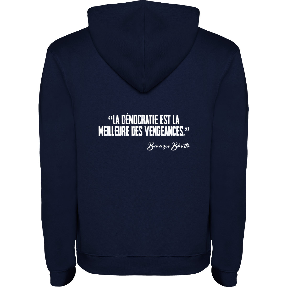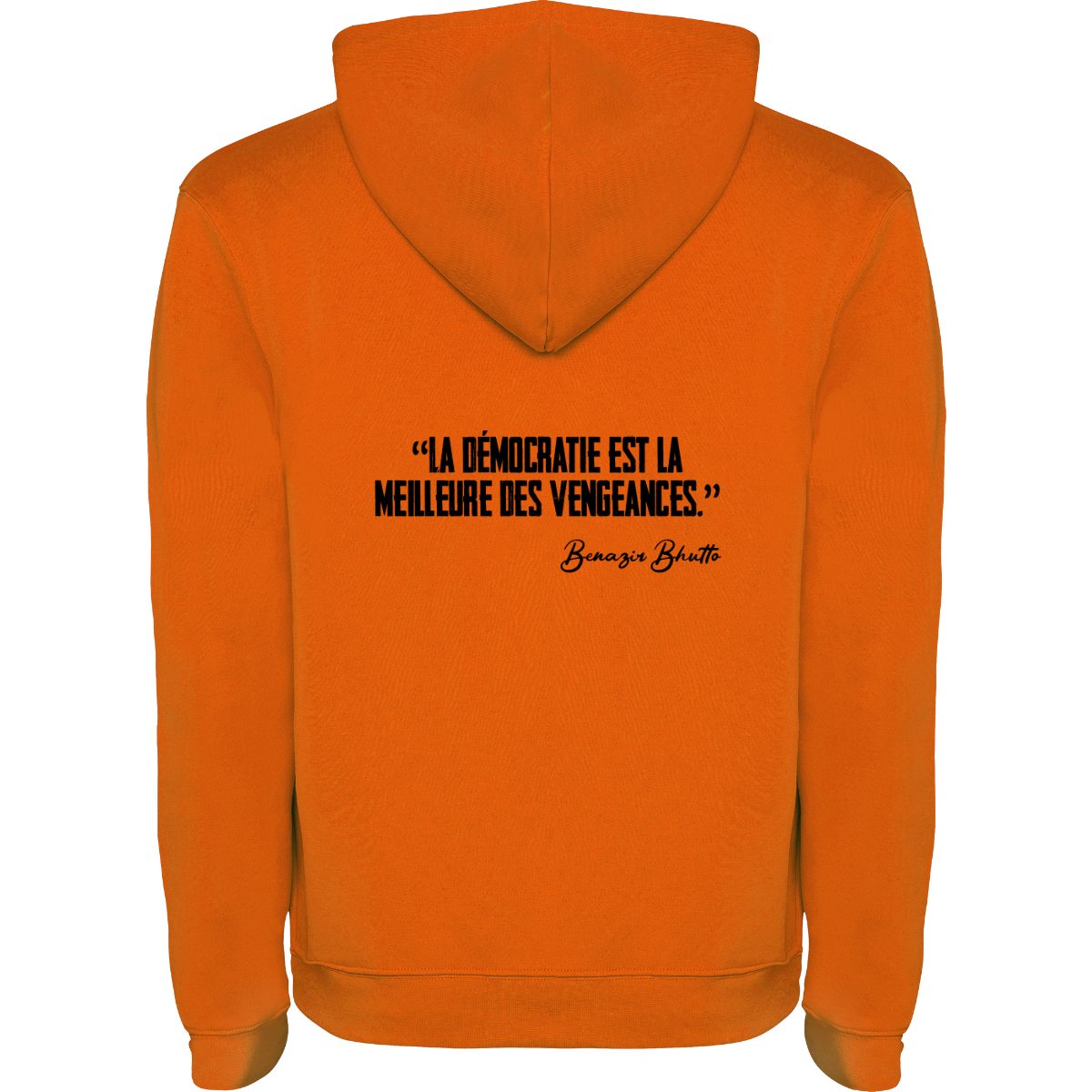 Sweat à capuche bicolore, double tissu, avec cordon de serrage réglable. Poche avant. Poignets et taille en bord-côte 1x1. Modèle garçon sans cordon de serrage. Matière : 50 % coton / 50 % polyester, doublure polaire, 280 g/m².