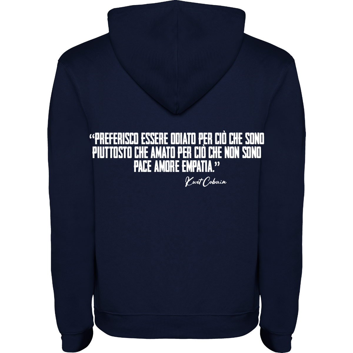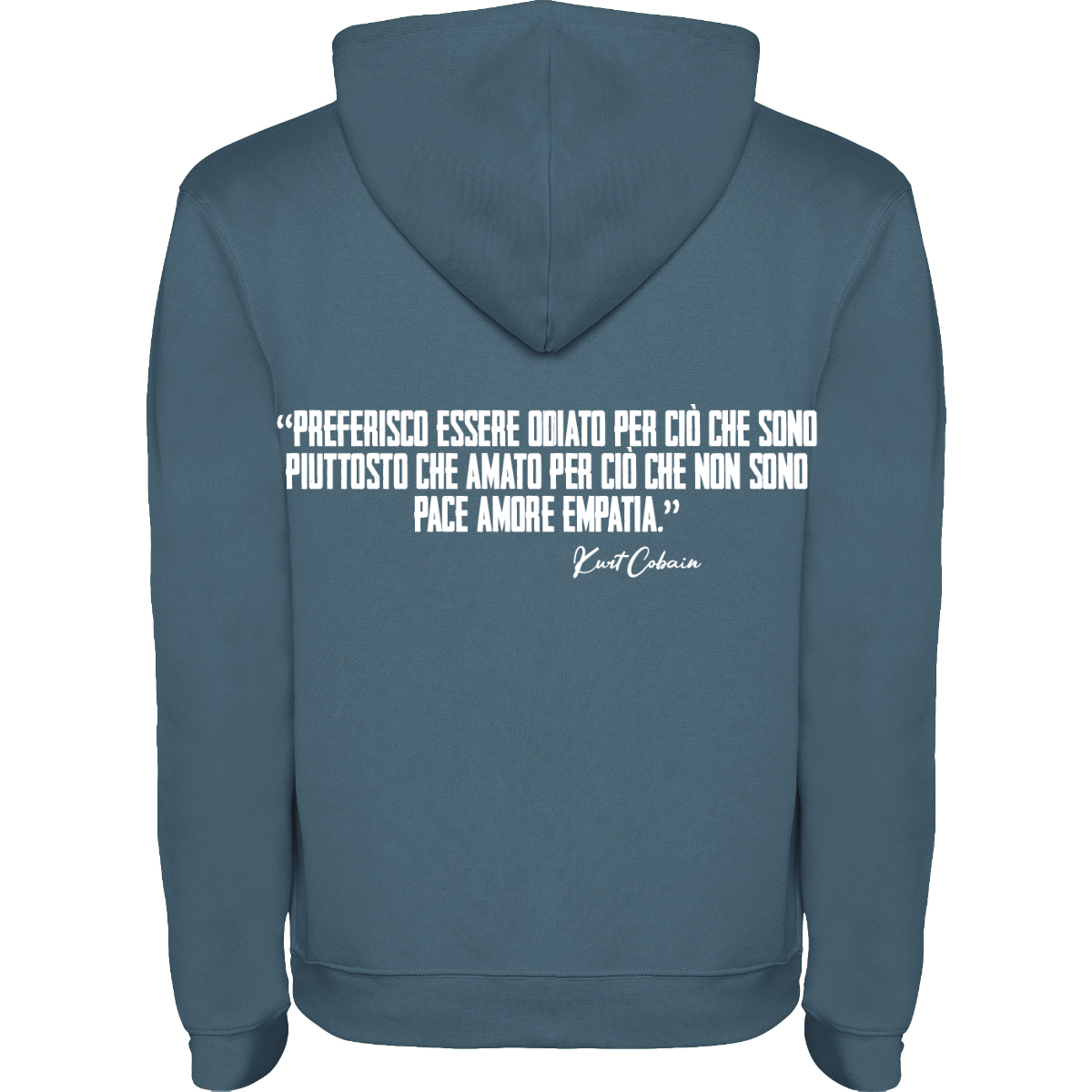 Felpa con cappuccio bicolore, tessuto doppio, con cordone regolabile. Tasca frontale. Costine 1x1 su polsini e girovita. Modello bambino senza cordone. Material: 50% cotone / 50% poliestere, interno felpato, 280 g/m².