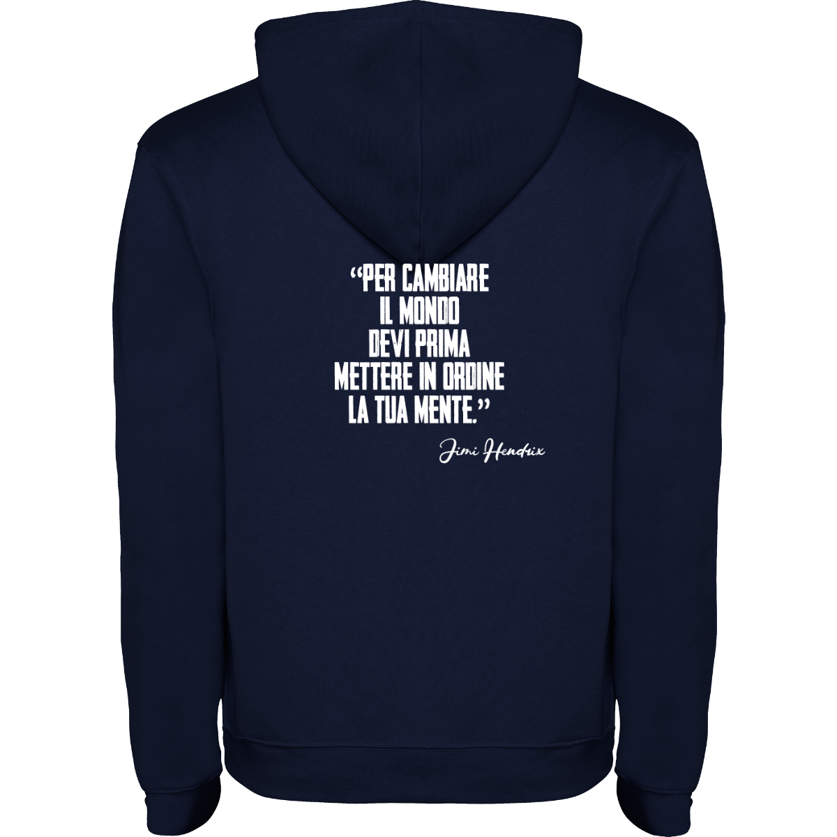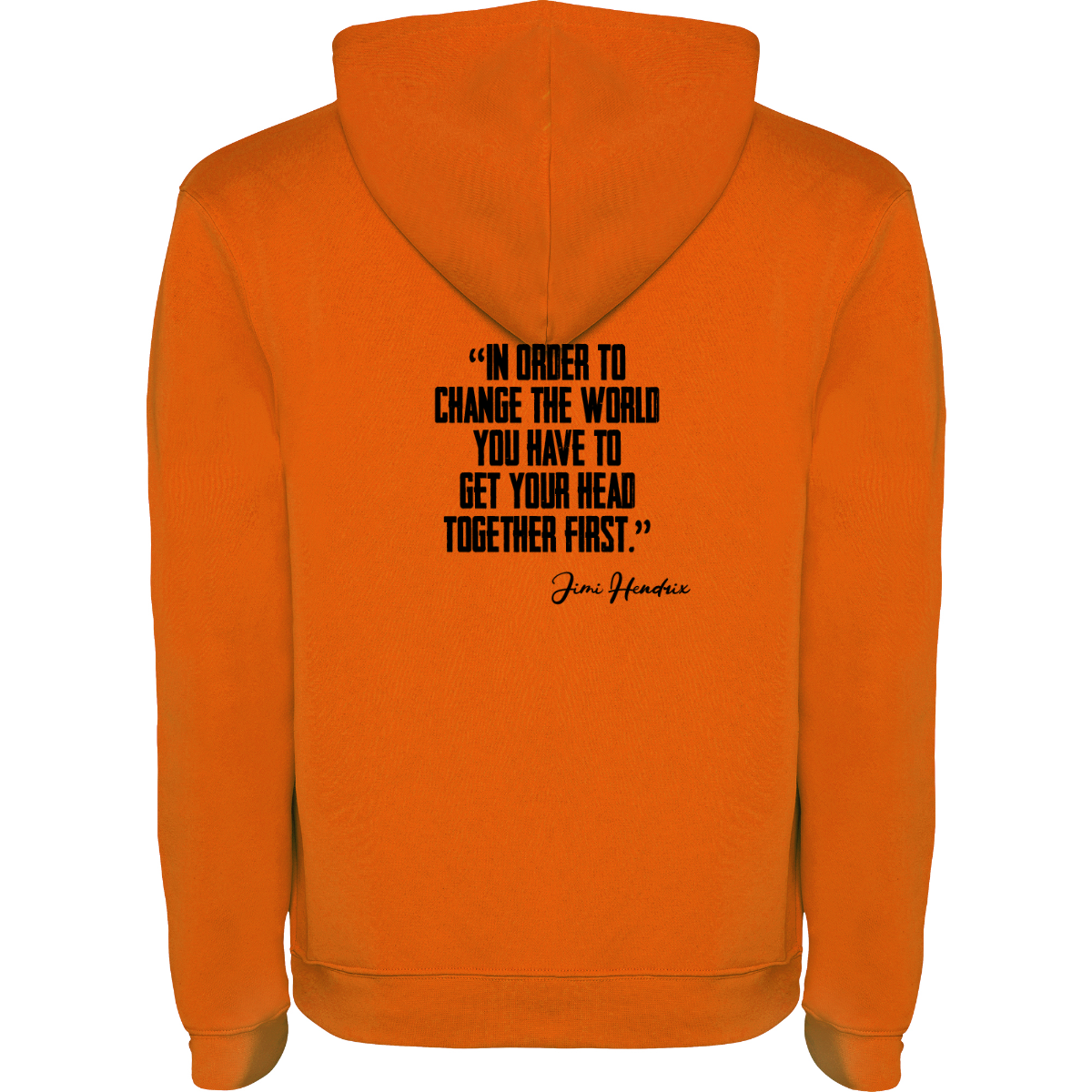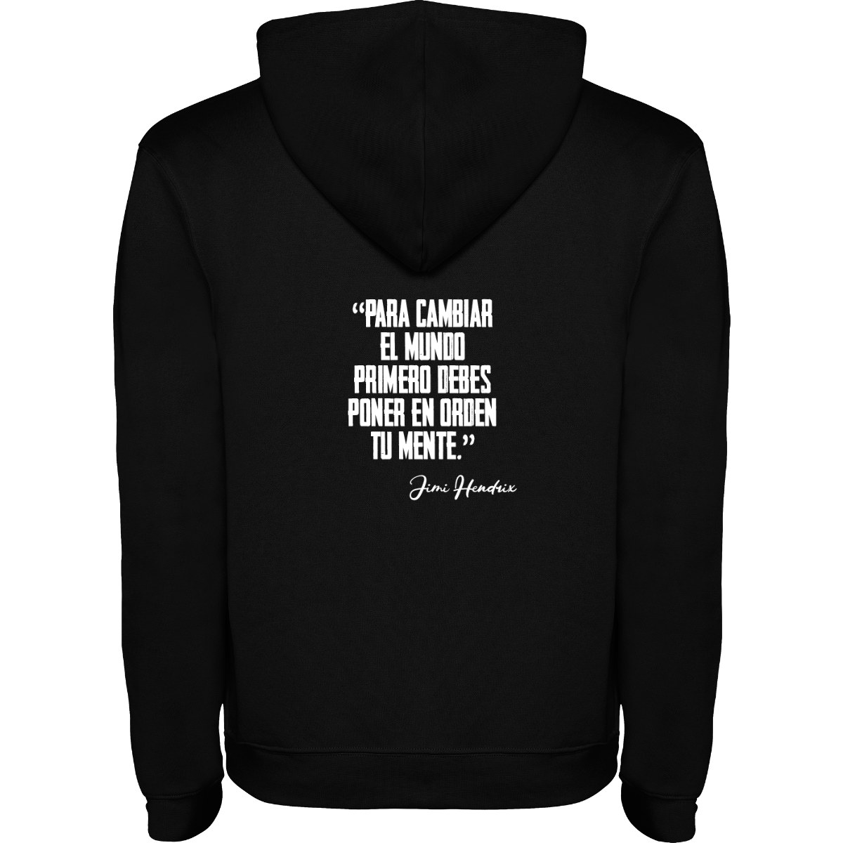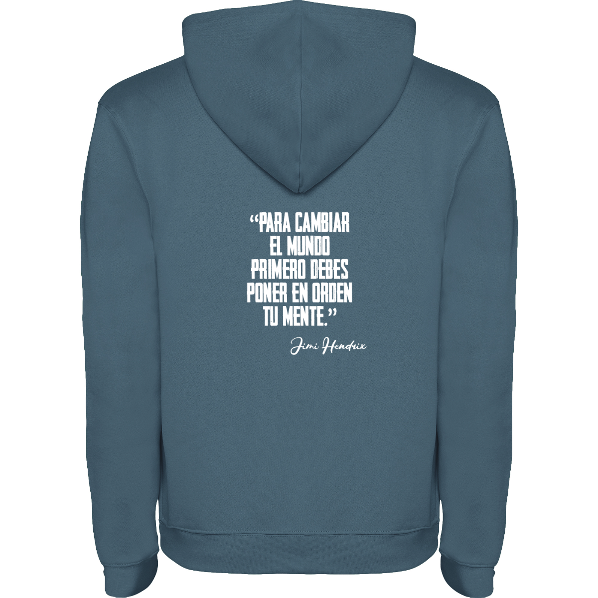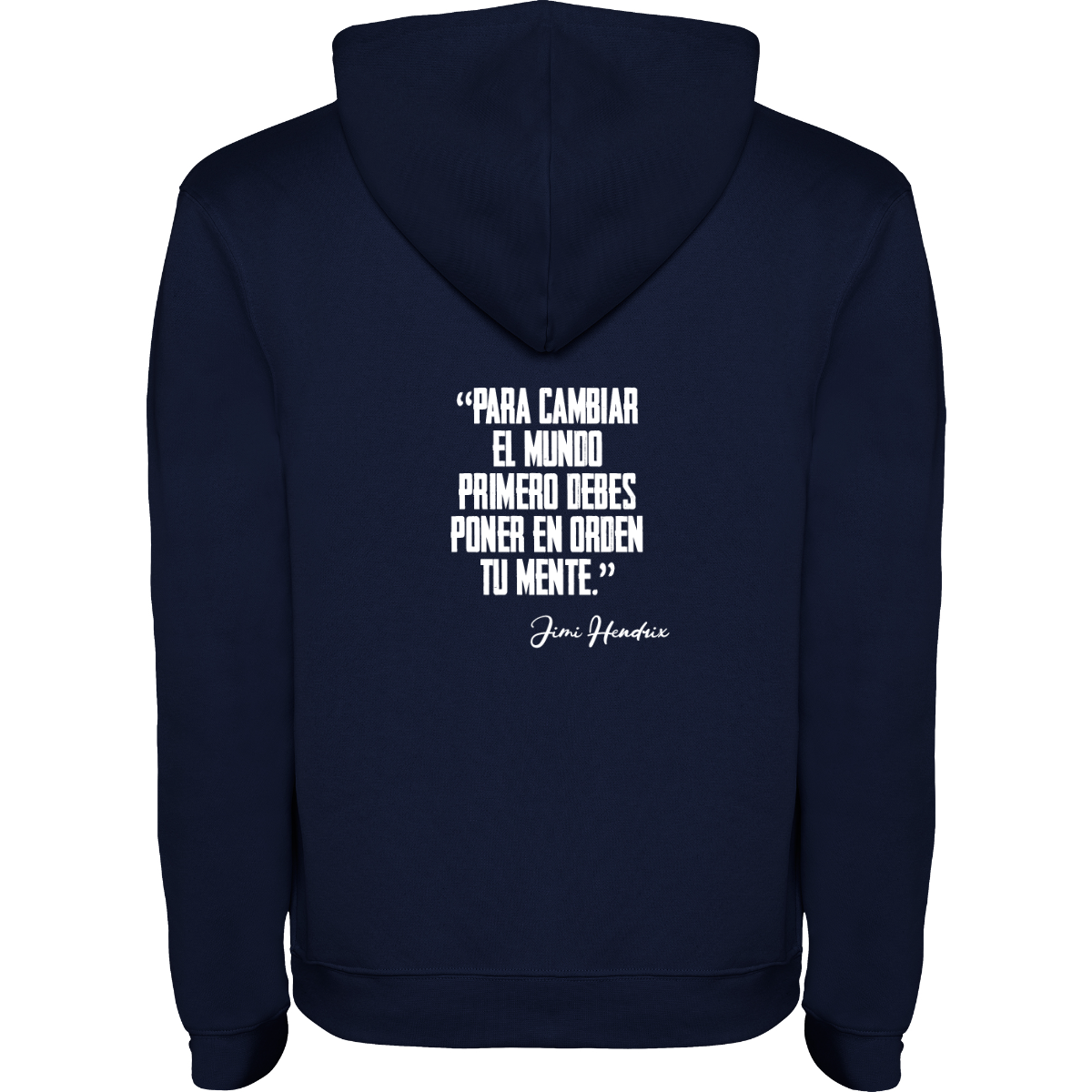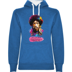 Sudadera bicolor con capucha, de doble tejido y cordón ajustable. Bolsillo frontal. Puños y cinturilla de canalé 1x1. Modelo para niño sin cordón. Material: 50 % algodón / 50 % poliéster, forro polar, 280 g/m².