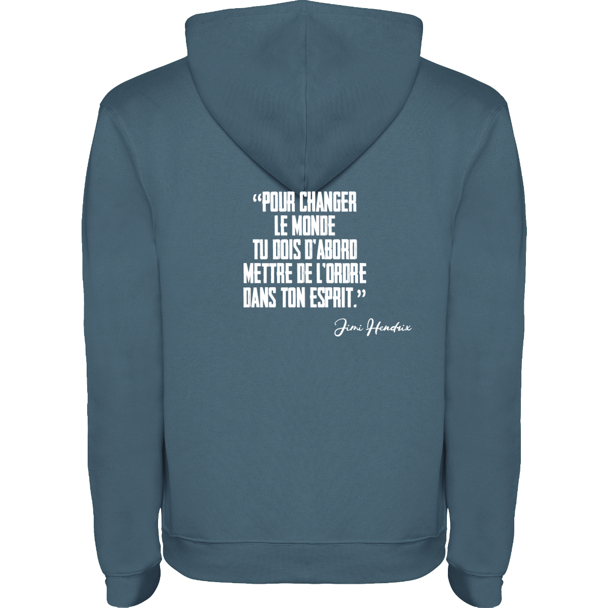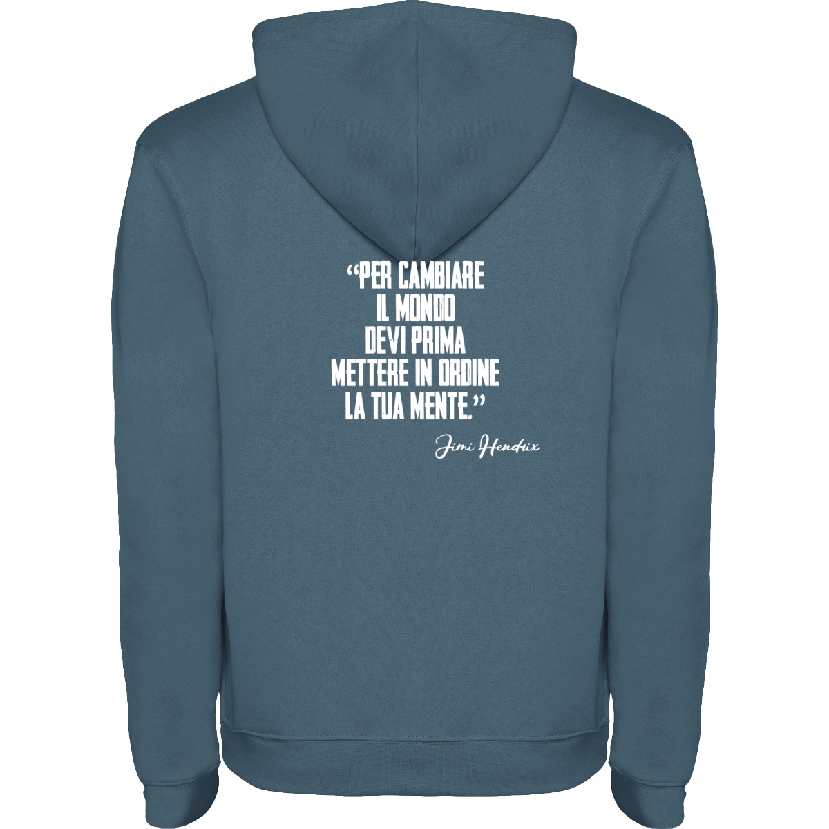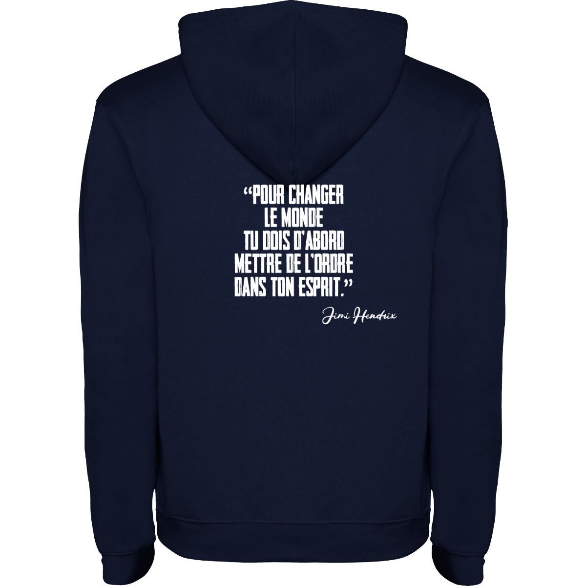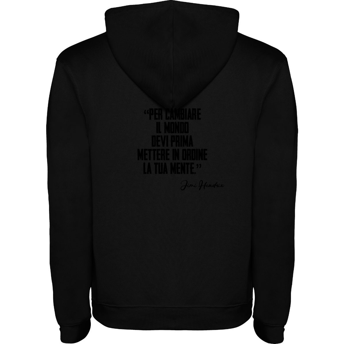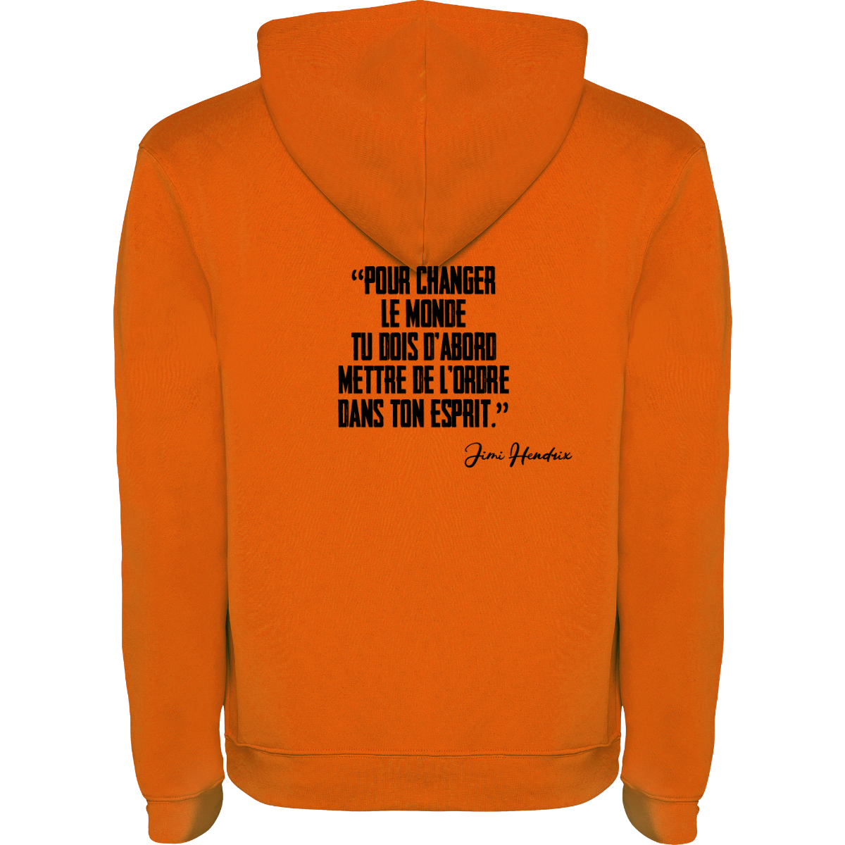 Sudadera bicolor con capucha, de doble tejido y cordón ajustable. Bolsillo frontal. Puños y cinturilla de canalé 1x1. Modelo para niño sin cordón. Material: 50 % algodón / 50 % poliéster, forro polar, 280 g/m².