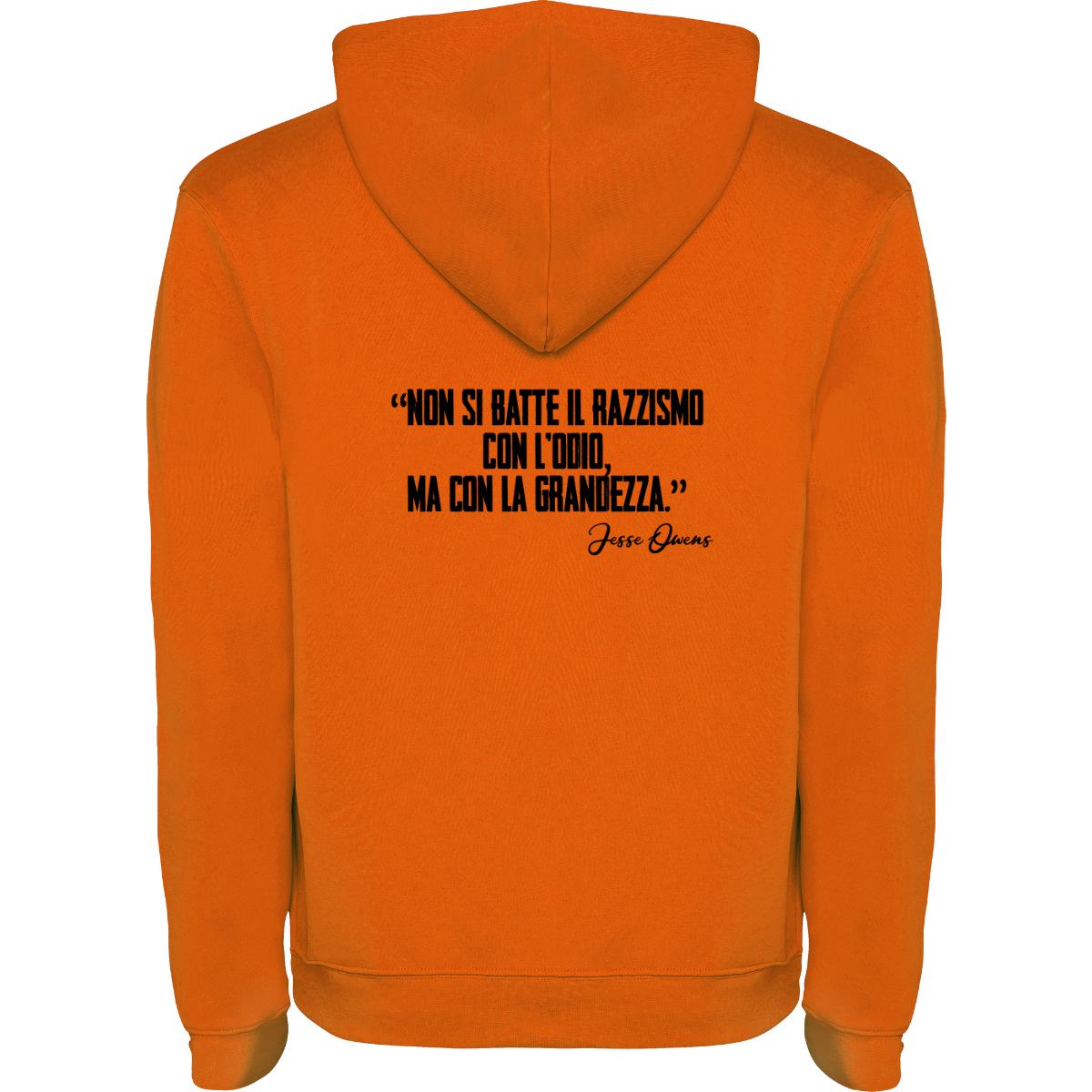 Felpa con cappuccio bicolore, tessuto doppio, con cordone regolabile. Tasca frontale. Costine 1x1 su polsini e girovita. Modello bambino senza cordone. Material: 50% cotone / 50% poliestere, interno felpato, 280 g/m².