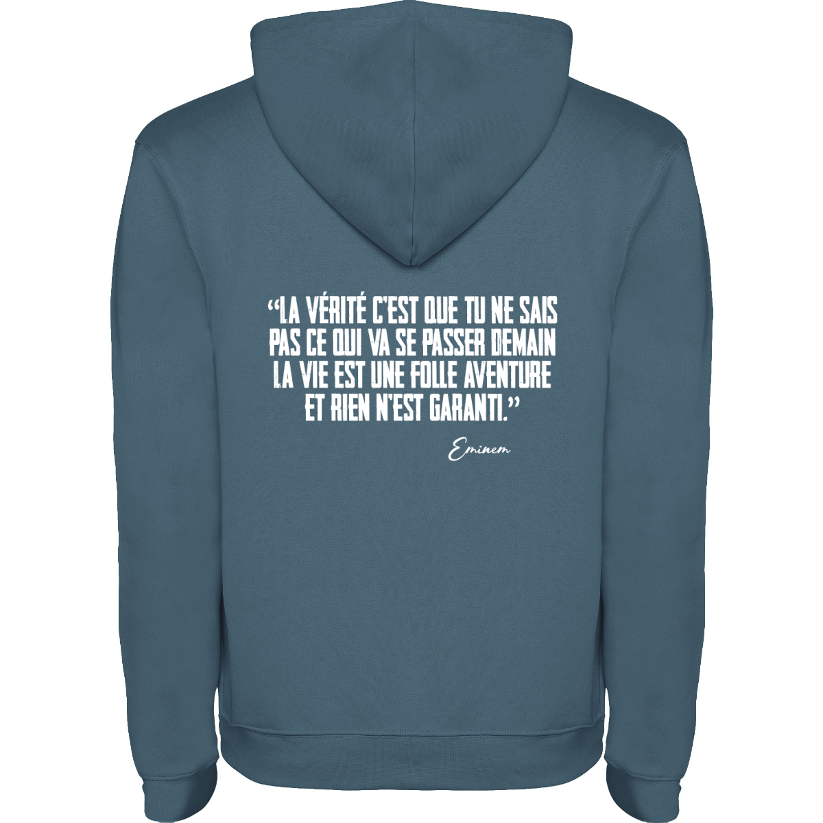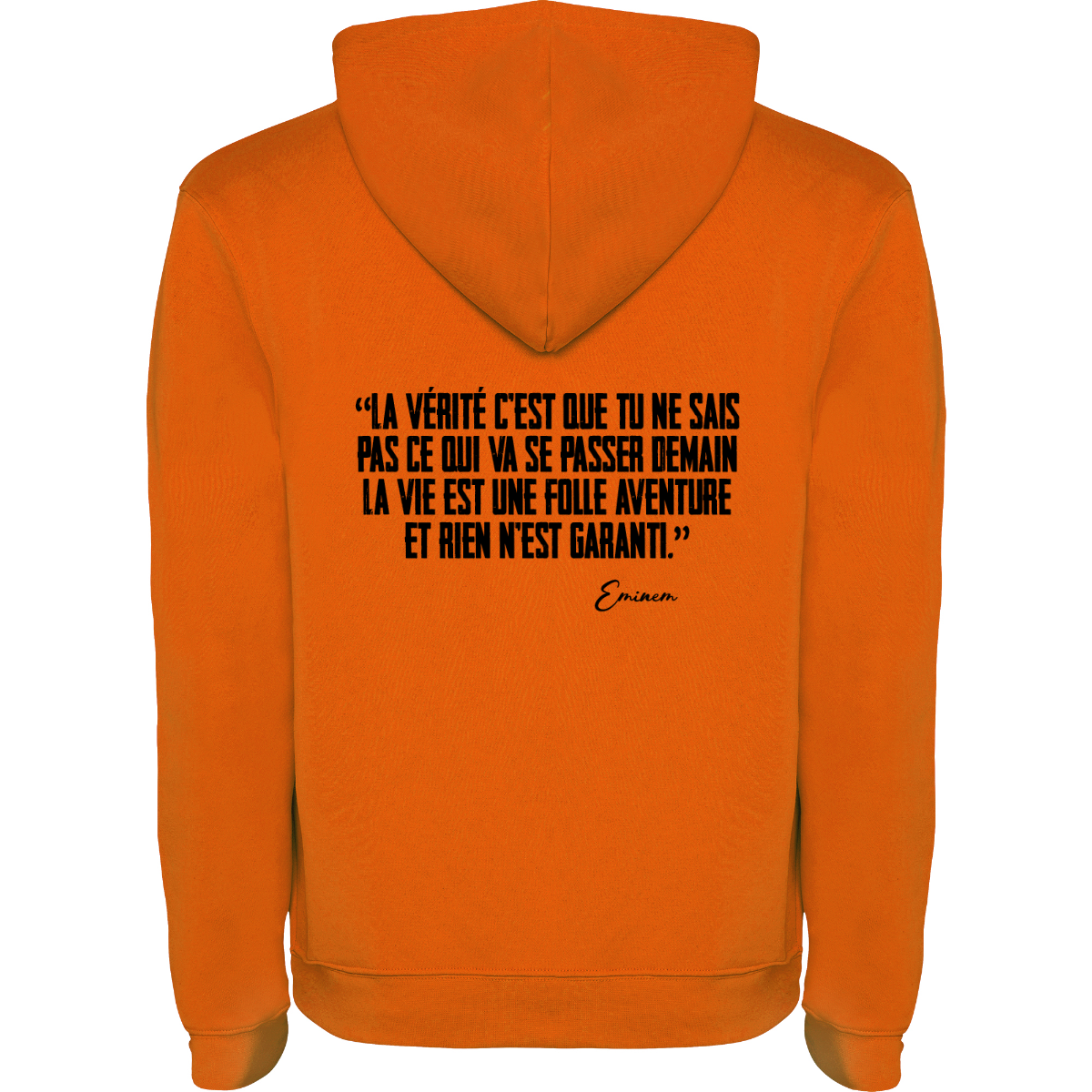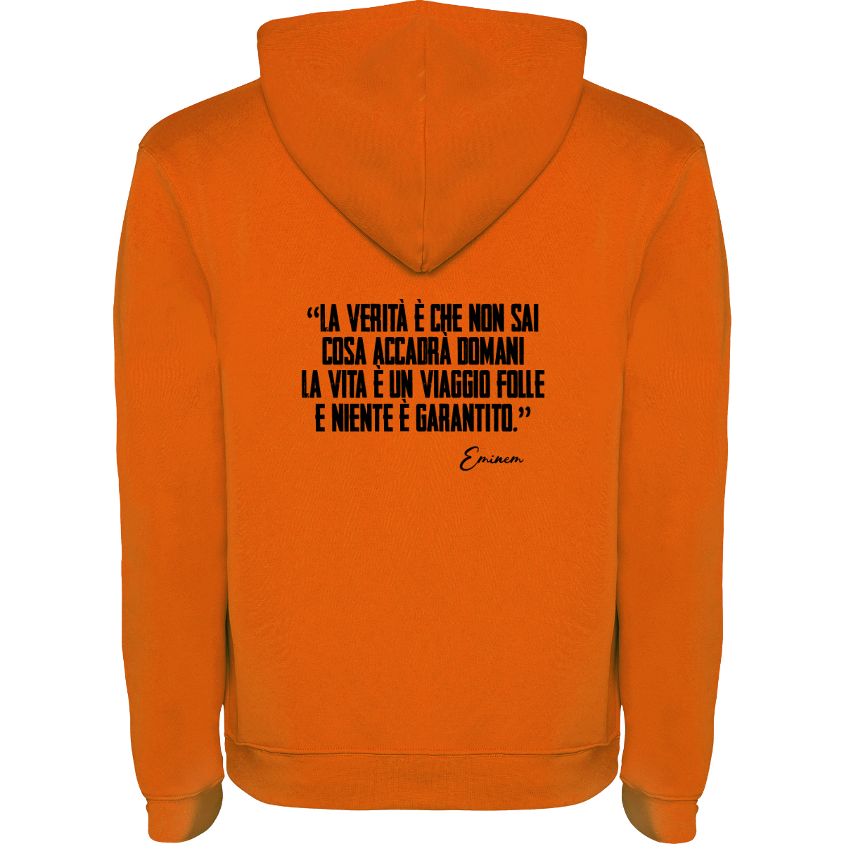 Felpa con cappuccio bicolore, tessuto doppio, con cordone regolabile. Tasca frontale. Costine 1x1 su polsini e girovita. Modello bambino senza cordone. Material: 50% cotone / 50% poliestere, interno felpato, 280 g/m².