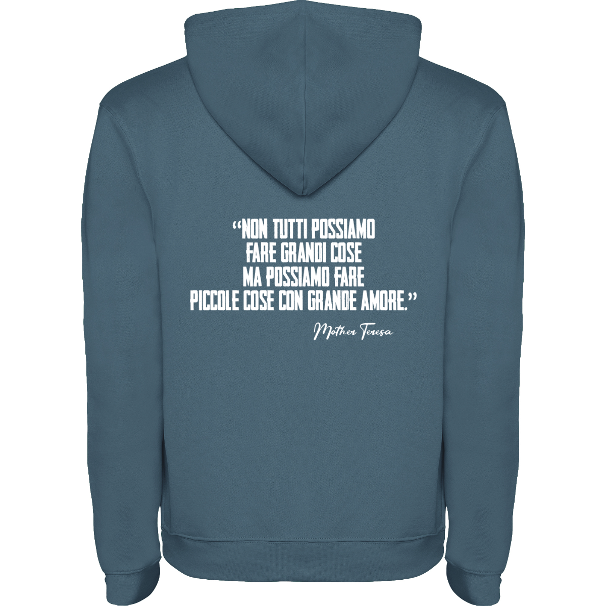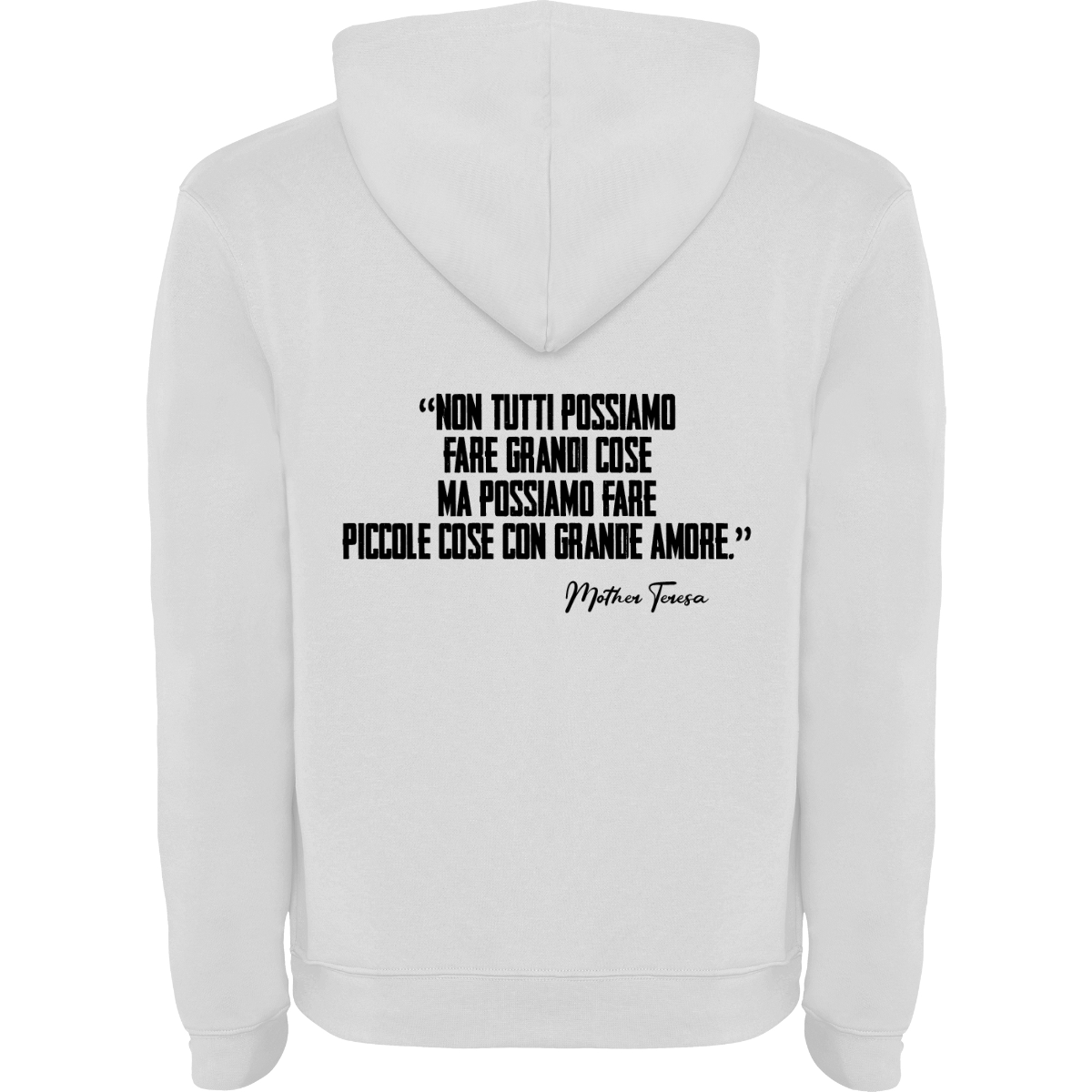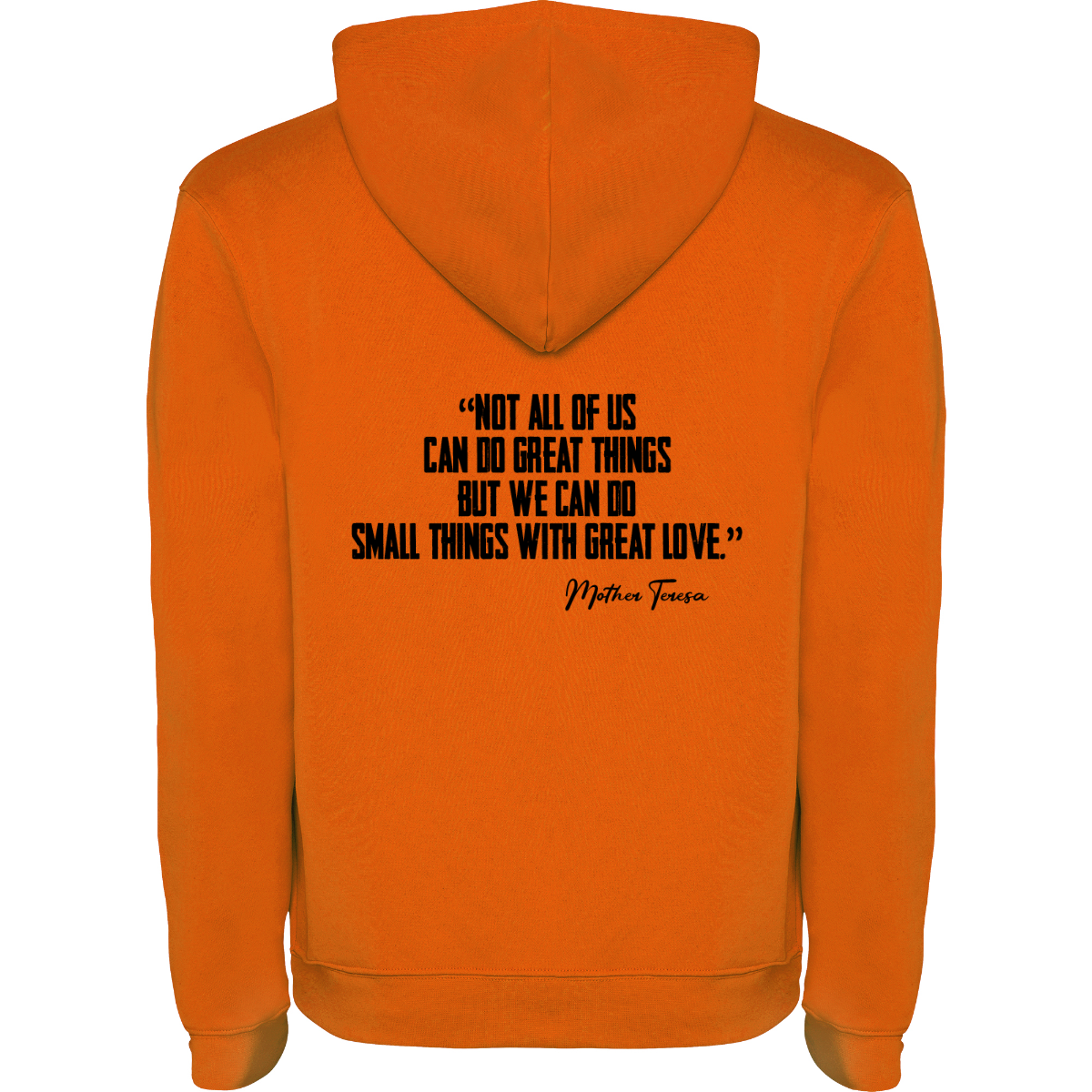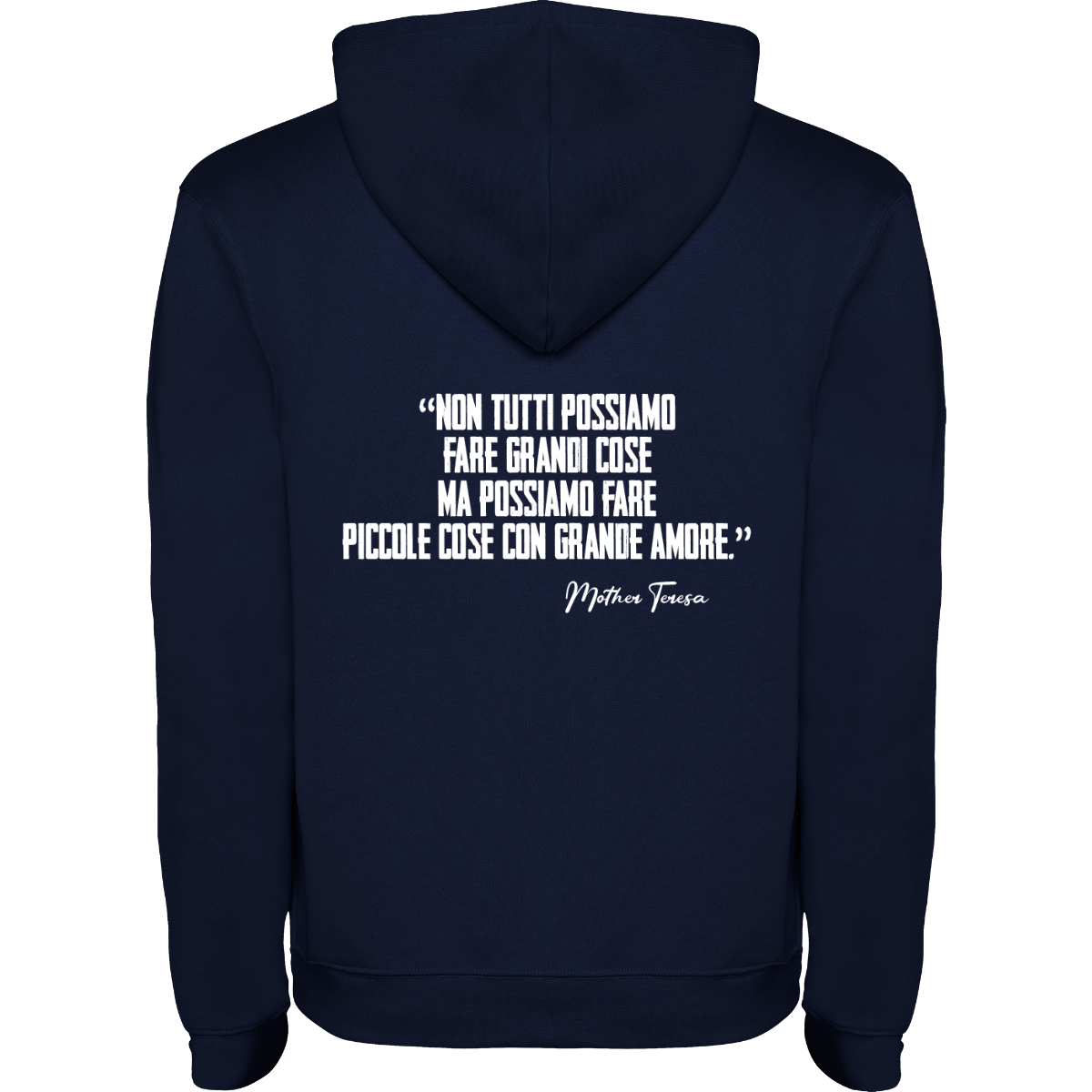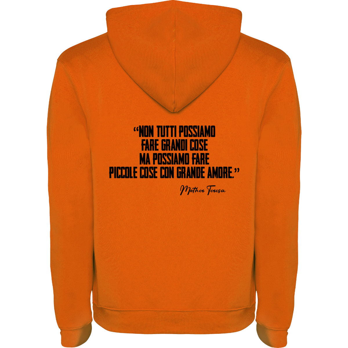 Felpa con cappuccio bicolore, tessuto doppio, con cordone regolabile. Tasca frontale. Costine 1x1 su polsini e girovita. Modello bambino senza cordone. Material: 50% cotone / 50% poliestere, interno felpato, 280 g/m².