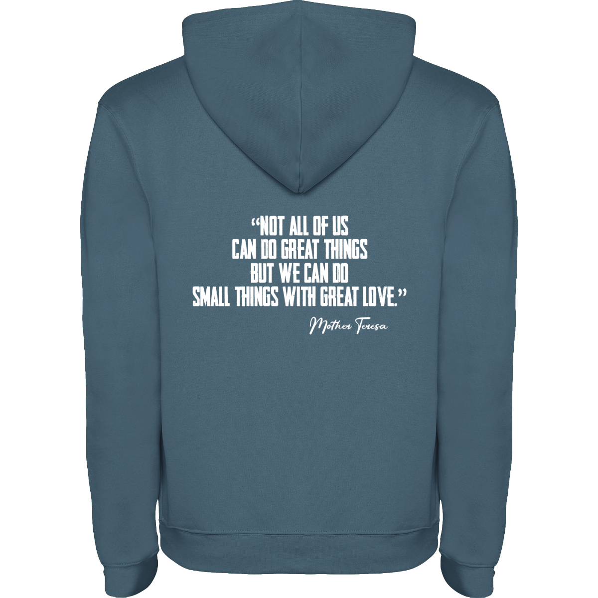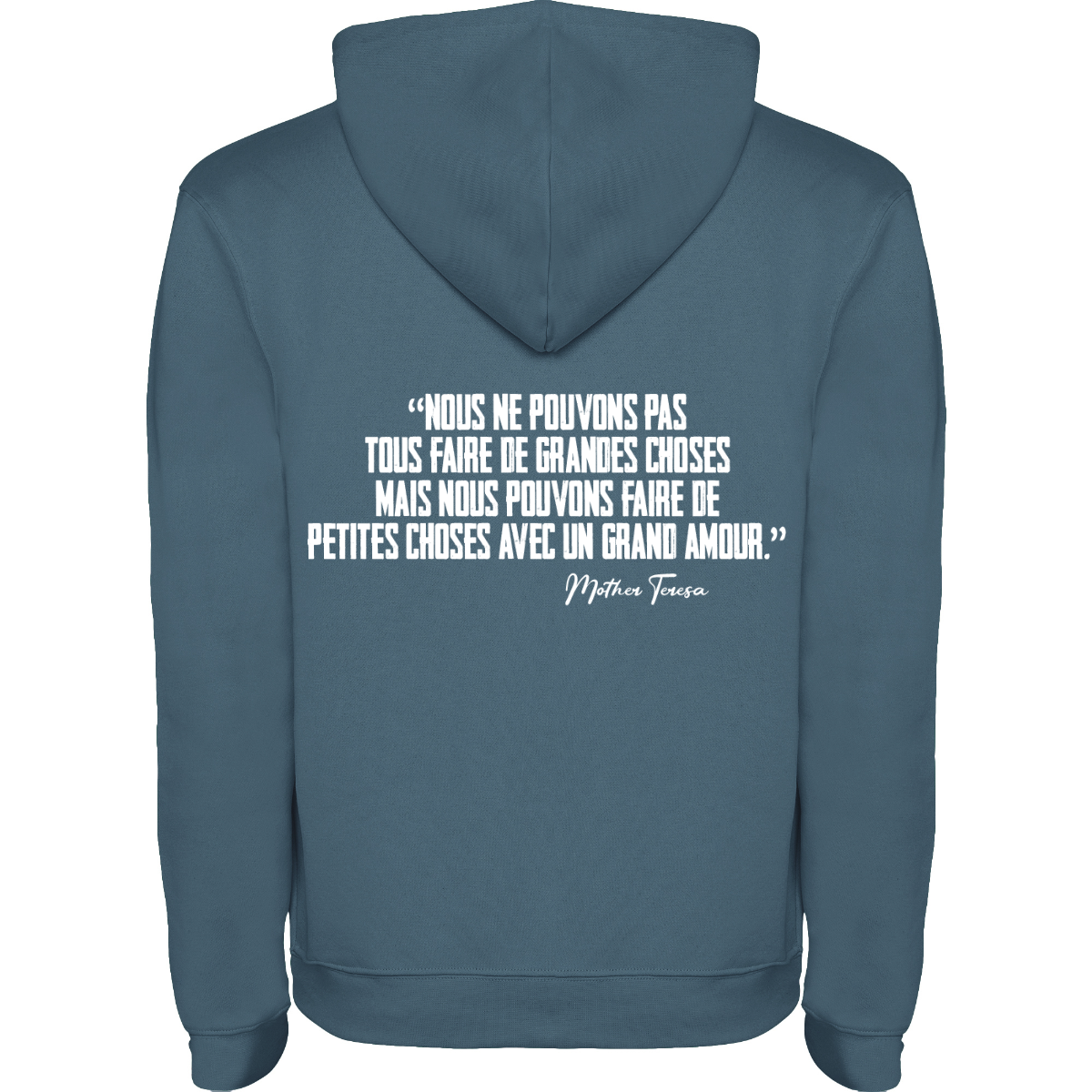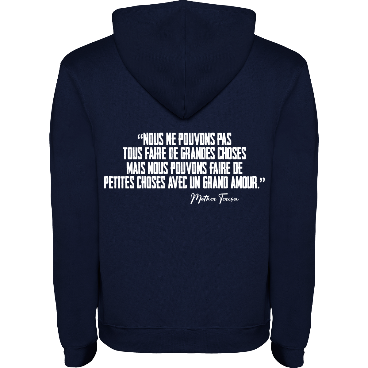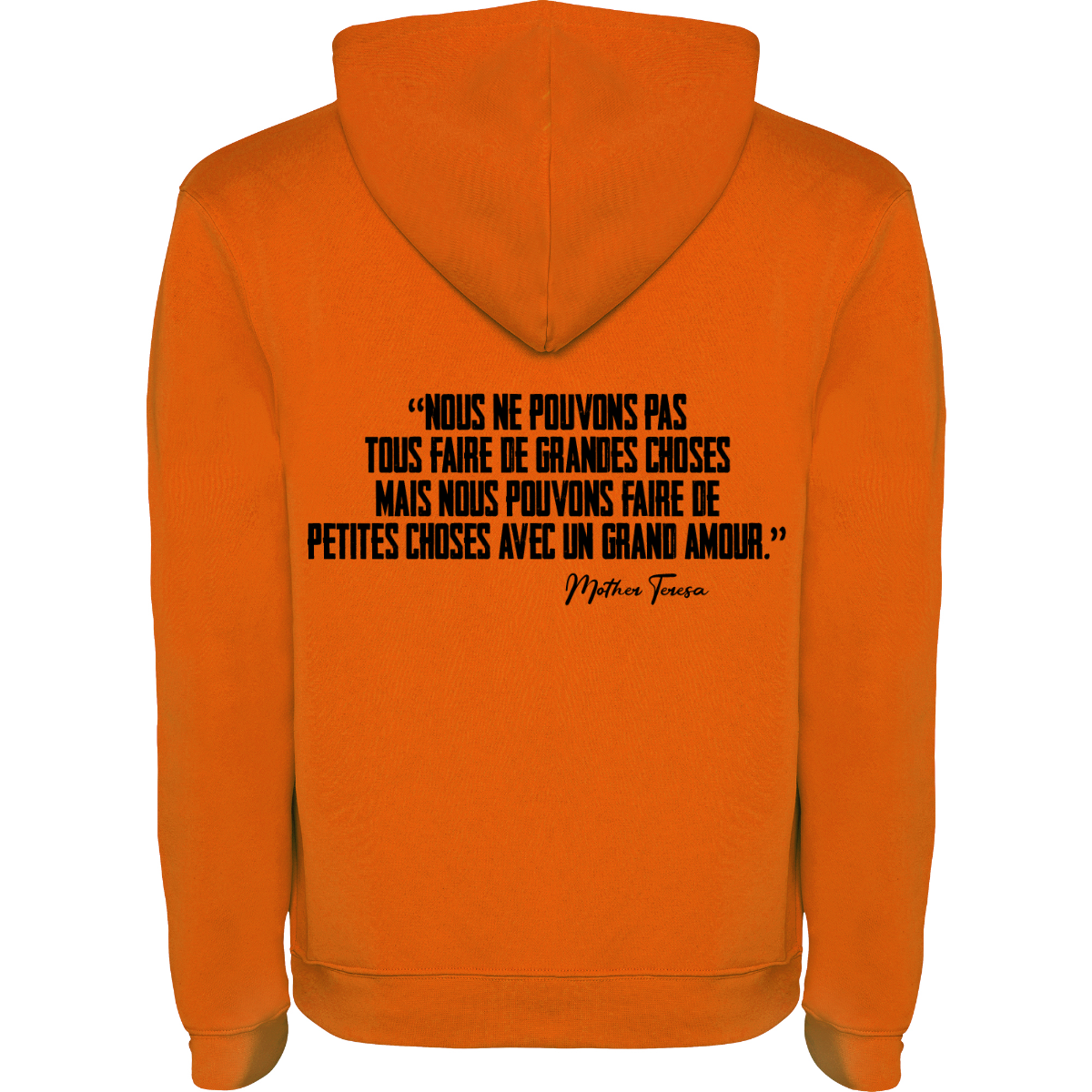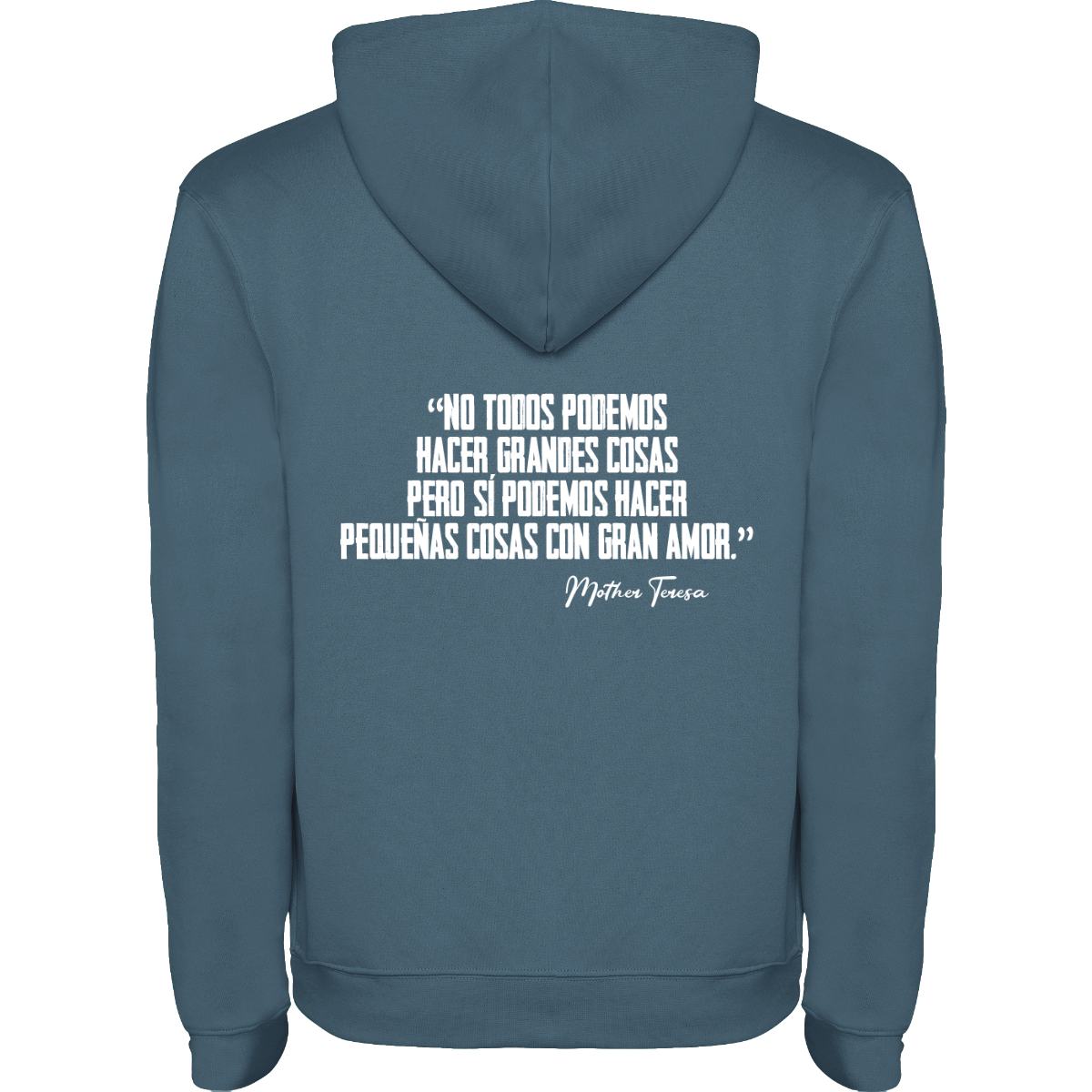 Felpa con cappuccio bicolore, tessuto doppio, con cordone regolabile. Tasca frontale. Costine 1x1 su polsini e girovita. Modello bambino senza cordone. Material: 50% cotone / 50% poliestere, interno felpato, 280 g/m².