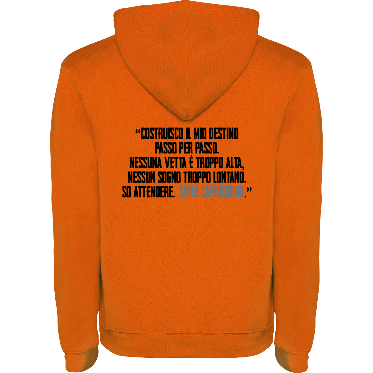 Sudadera bicolor con capucha, de doble tejido y cordón ajustable. Bolsillo frontal. Puños y cinturilla de canalé 1x1. Modelo para niño sin cordón. Material: 50 % algodón / 50 % poliéster, forro polar, 280 g/m².