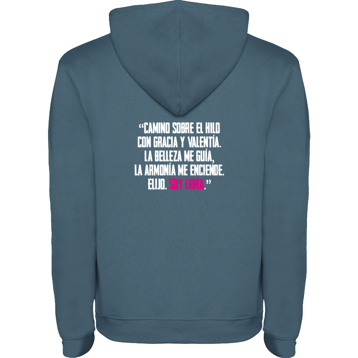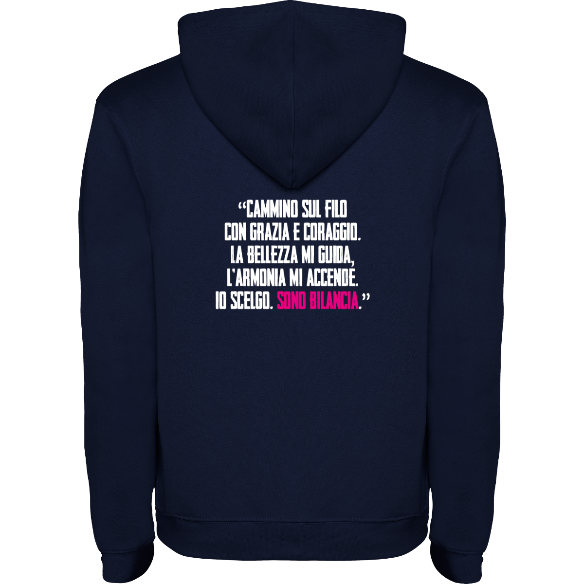 Felpa con cappuccio bicolore, tessuto doppio, con cordone regolabile. Tasca frontale. Costine 1x1 su polsini e girovita. Modello bambino senza cordone. Material: 50% cotone / 50% poliestere, interno felpato, 280 g/m².