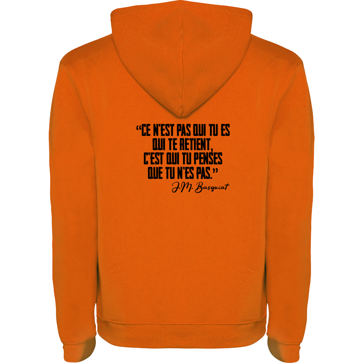 Felpa con cappuccio bicolore, tessuto doppio, con cordone regolabile. Tasca frontale. Costine 1x1 su polsini e girovita. Modello bambino senza cordone. Material: 50% cotone / 50% poliestere, interno felpato, 280 g/m².