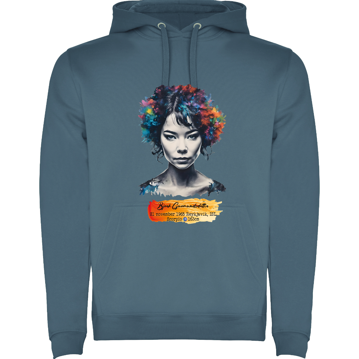 Felpa con cappuccio bicolore, tessuto doppio, con cordone regolabile. Tasca frontale. Costine 1x1 su polsini e girovita. Modello bambino senza cordone. Material: 50% cotone / 50% poliestere, interno felpato, 280 g/m².