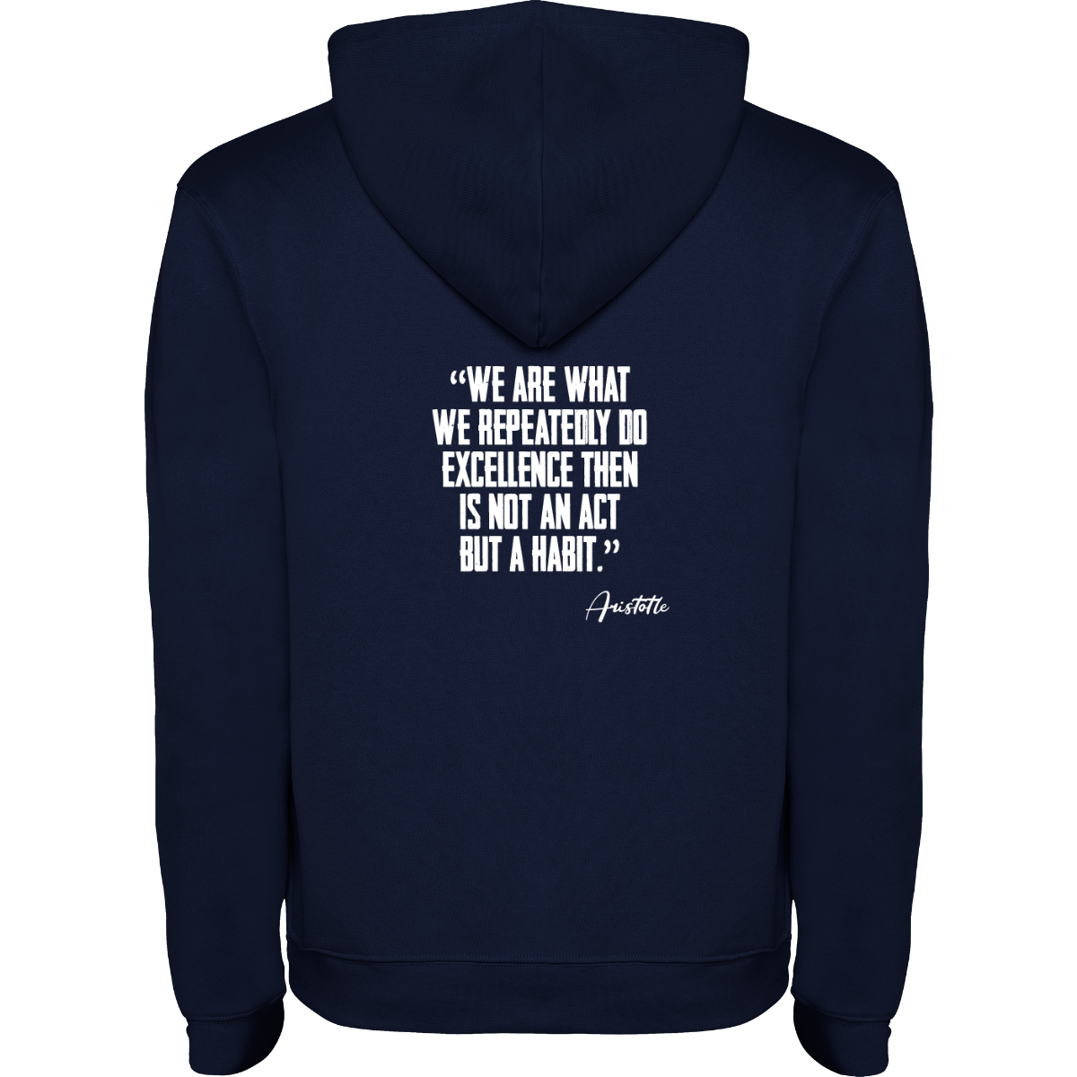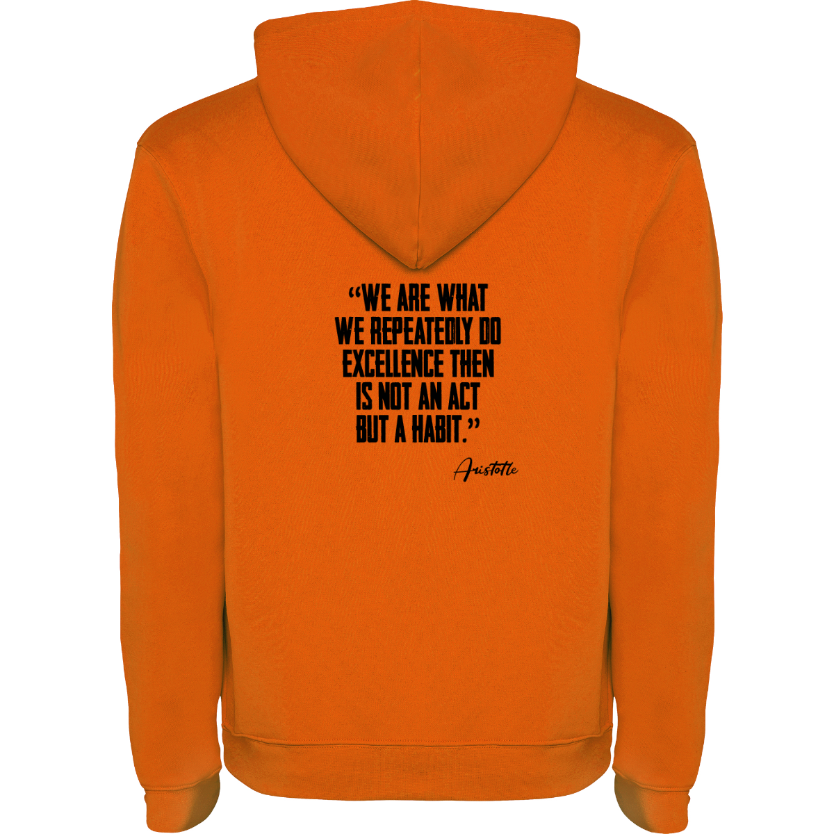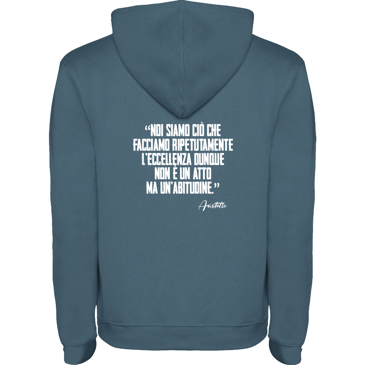 Felpa con cappuccio bicolore, tessuto doppio, con cordone regolabile. Tasca frontale. Costine 1x1 su polsini e girovita. Modello bambino senza cordone. Material: 50% cotone / 50% poliestere, interno felpato, 280 g/m².