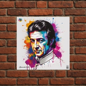 In ogni nostra grafica è presente anche un QR code che reindirizza al sito iconicomix.com, alla pagina ufficiale dell’icona che hai scelto. Una porta digitale che racconta la sua storia, le sue frasi e il suo mondo.