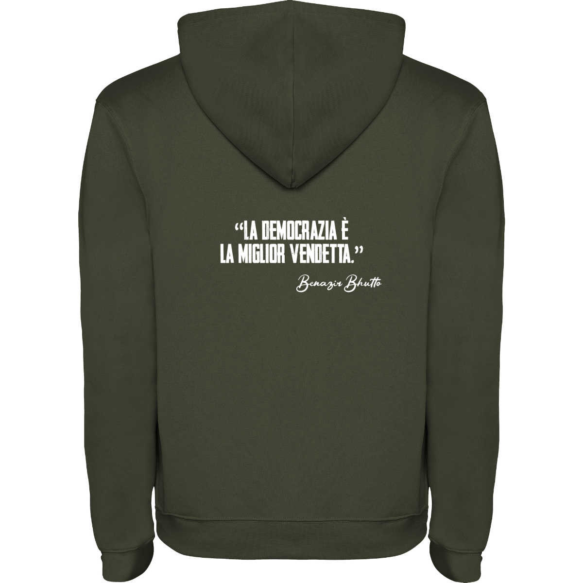 Felpa con capuchio foderato. Polsini e vita a coste 2x1 con elastán. Cuciture nastrate in tessuto coordinato. Coulisse piatta sul capuchio. Opciones de color con capuchino, contraste y occhielli en metal en tinta. Material: 50% algodón / 50% poliéster, felpa interna, 280 g/m².