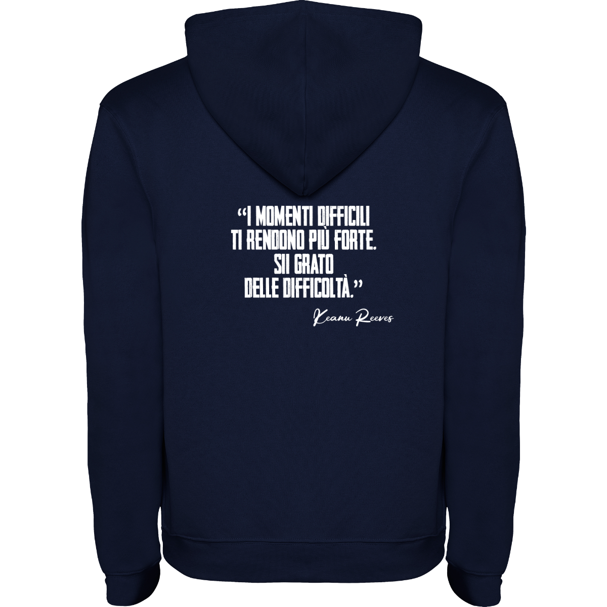 Felpa con cappuccio foderato. Polsini e vita a coste 2x1 con elastan. Cuciture nastrate in tessuto coordinato. Coulisse piatta sul cappuccio. Opzioni di colore con cappuccio a contrasto e occhielli in metallo in tinta. Materiale: 50% cotone / 50% poliestere, interno felpato, 280 g/m².