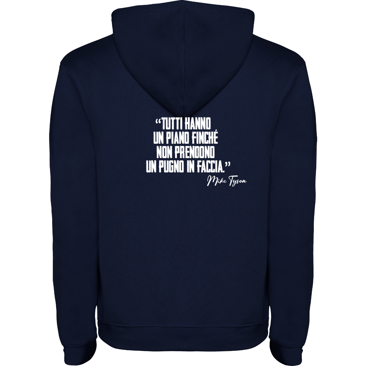 Felpa con cappuccio foderato. Polsini e vita a coste 2x1 con elastan. Cuciture nastrate in tessuto coordinato. Coulisse piatta sul cappuccio. Opzioni di colore con cappuccio a contrasto e occhielli in metallo in tinta. Materiale: 50% cotone / 50% poliestere, interno felpato, 280 g/m².