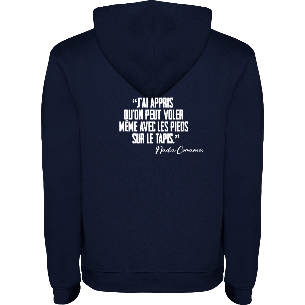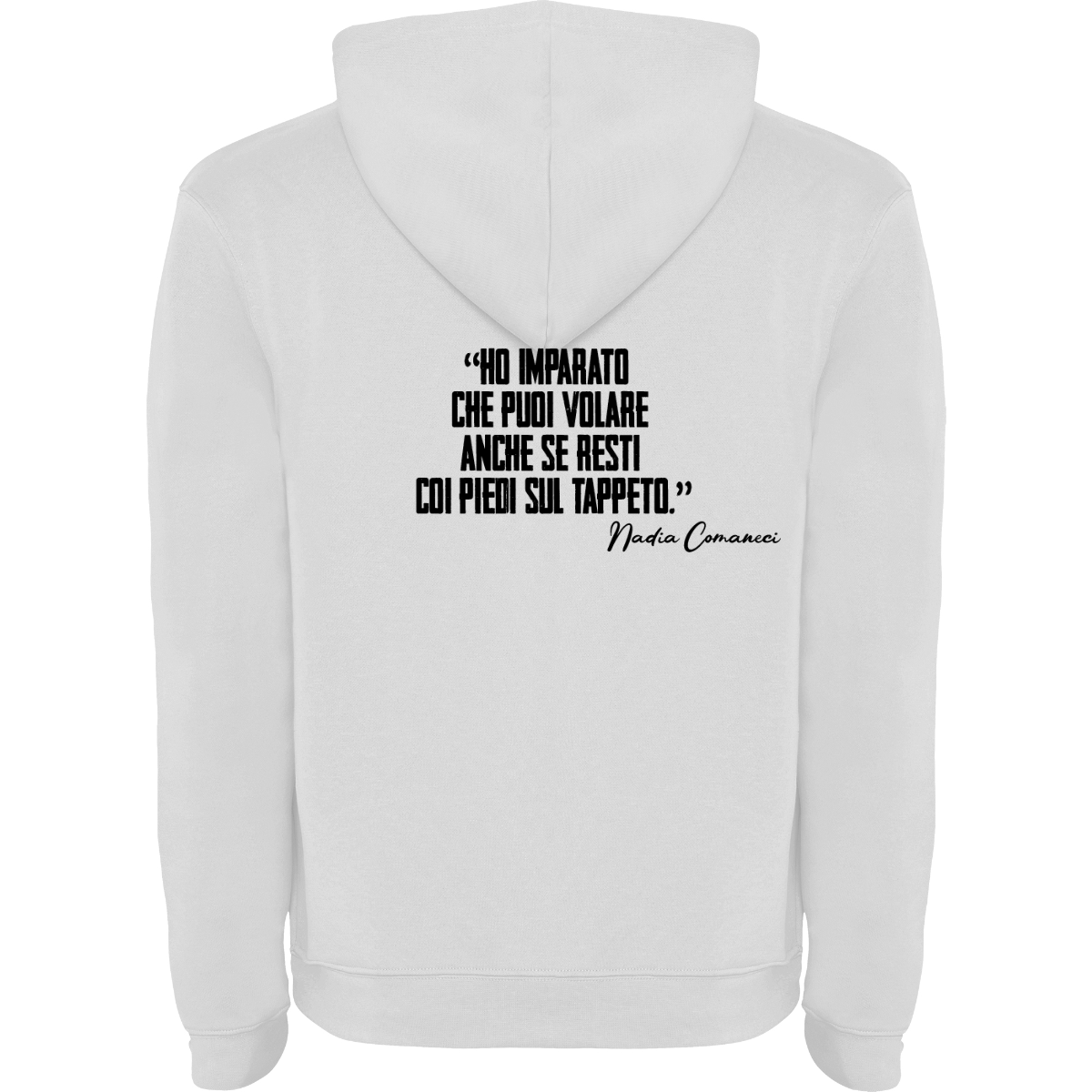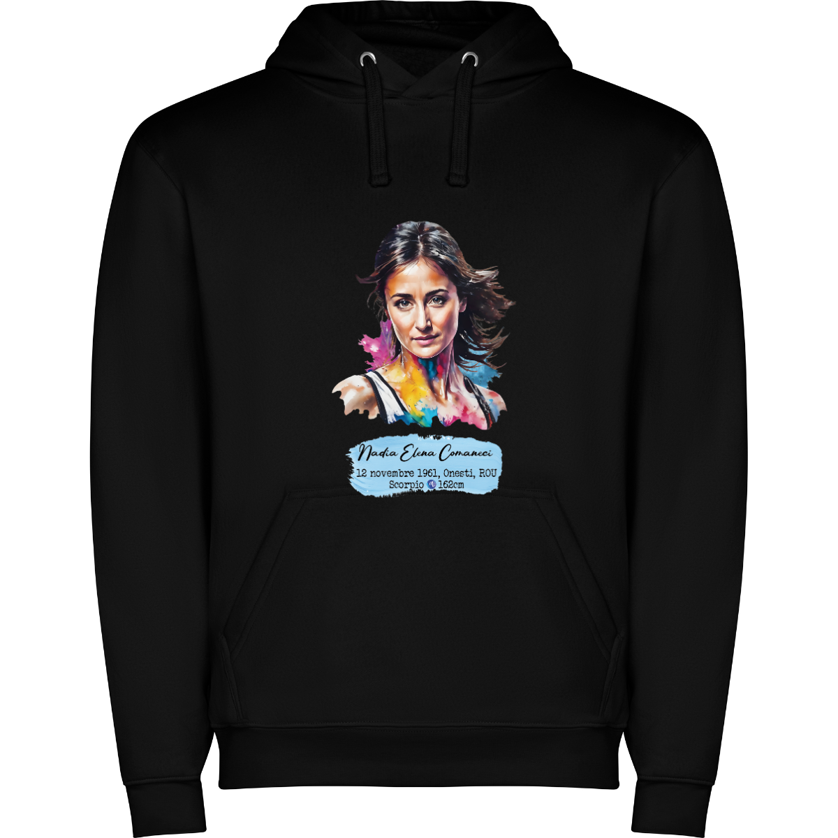 Felpa con cappuccio foderato. Polsini e vita a coste 2x1 con elastan. Cuciture nastrate in tessuto coordinato. Coulisse piatta sul cappuccio. Opzioni di colore con cappuccio a contrasto e occhielli in metallo in tinta. Materiale: 50% cotone / 50% poliestere, interno felpato, 280 g/m².