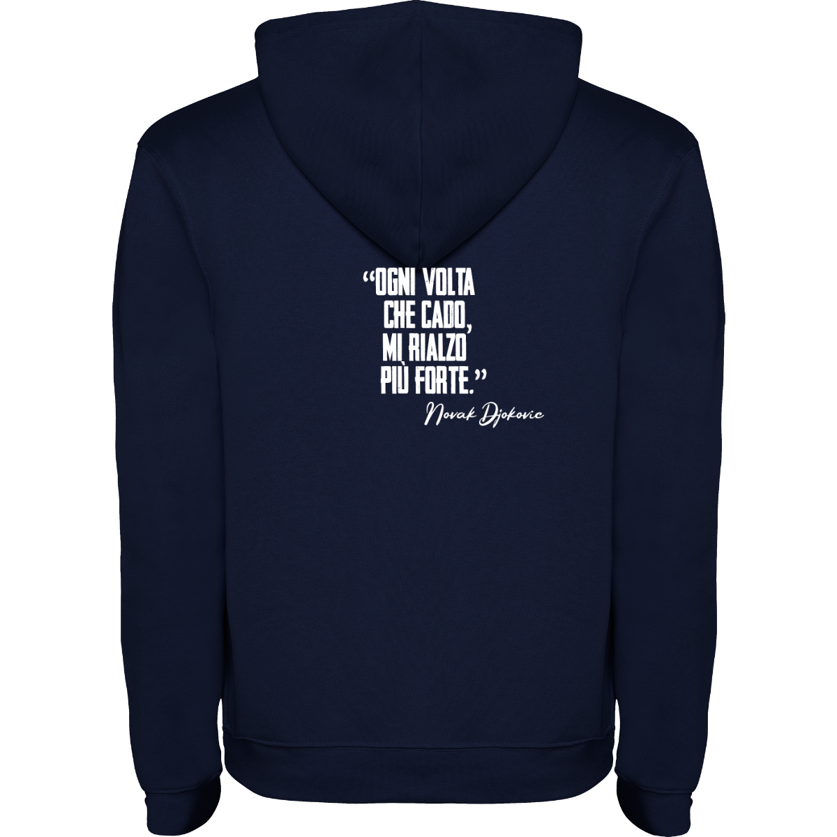 Felpa con cappuccio foderato. Polsini e vita a coste 2x1 con elastan. Cuciture nastrate in tessuto coordinato. Coulisse piatta sul cappuccio. Opzioni di colore con cappuccio a contrasto e occhielli in metallo in tinta. Materiale: 50% cotone / 50% poliestere, interno felpato, 280 g/m².