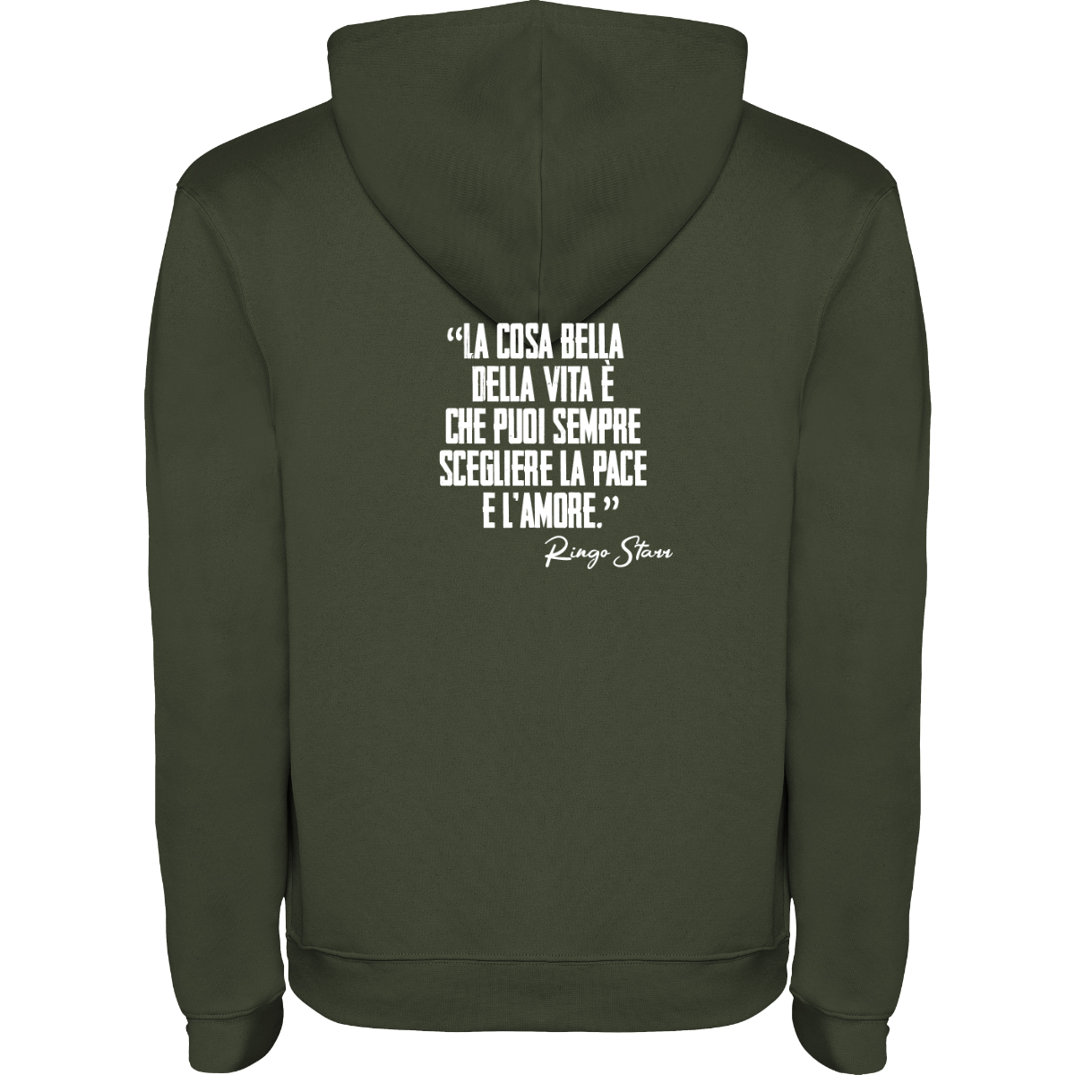 Felpa con cappuccio foderato. Polsini e vita a coste 2x1 con elastan. Cuciture nastrate in tessuto coordinato. Coulisse piatta sul cappuccio. Opzioni di colore con cappuccio a contrasto e occhielli in metallo in tinta. Materiale: 50% cotone / 50% poliestere, interno felpato, 280 g/m².