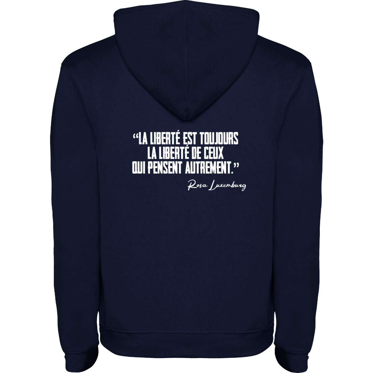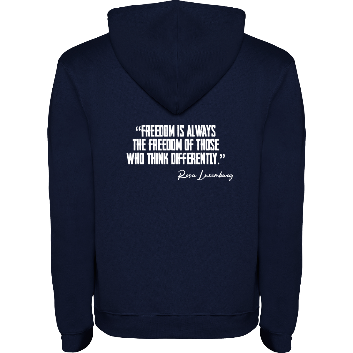 Lined hoodie. 2x1 ribbed cuffs and waistband with elastane. Matching fabric taped seams. Flat drawstring hood. Contrasting hood color options with matching metal eyelets. Material: 50% cotton / 50% polyester, brushed interior, 280 gsm.