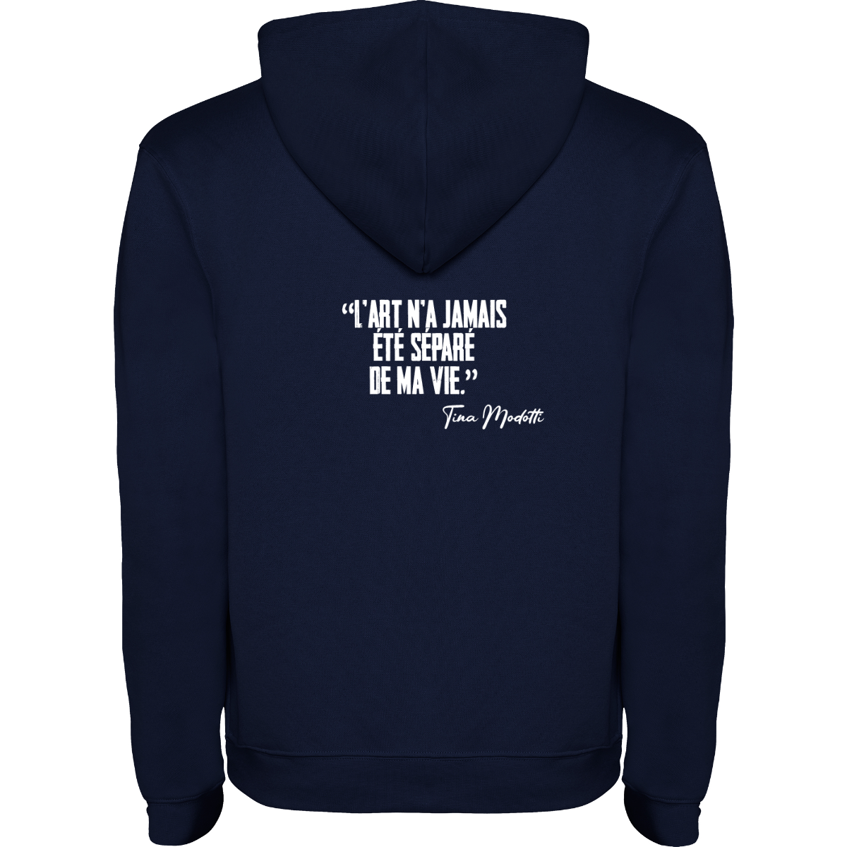 Felpa con cappuccio foderato. Polsini e vita a coste 2x1 con elastan. Cuciture nastrate in tessuto coordinato. Coulisse piatta sul cappuccio. Opzioni di colore con cappuccio a contrasto e occhielli in metallo in tinta. Materiale: 50% cotone / 50% poliestere, interno felpato, 280 g/m².
