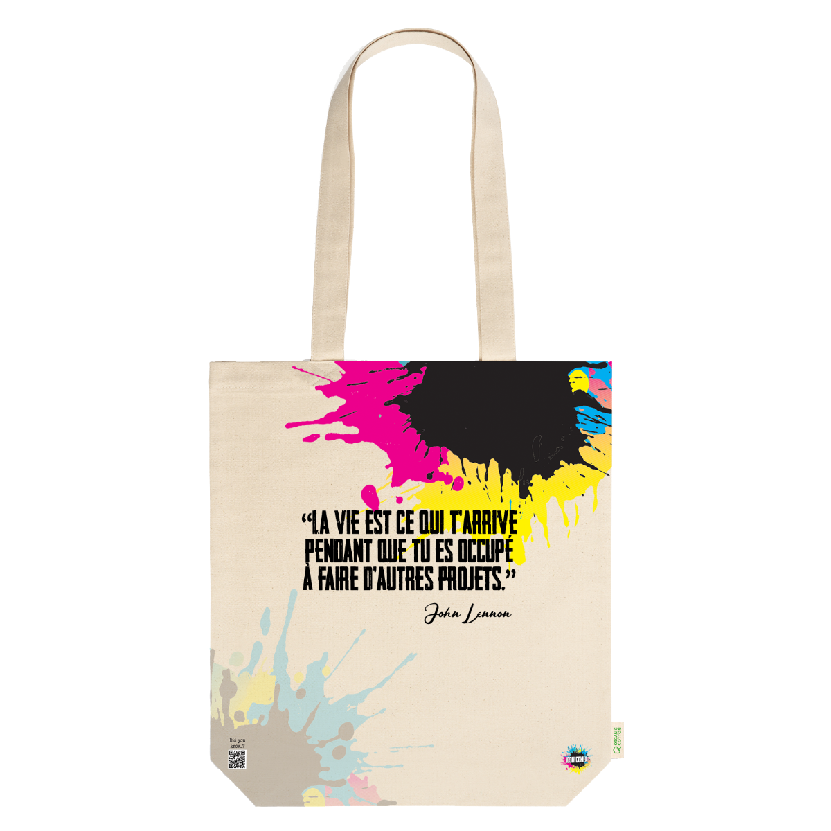 Borsa 100% cotone biologico 280 g/m² con soffietto e pratici manici lunghi 70 cm.  38cm/42cm/9cm