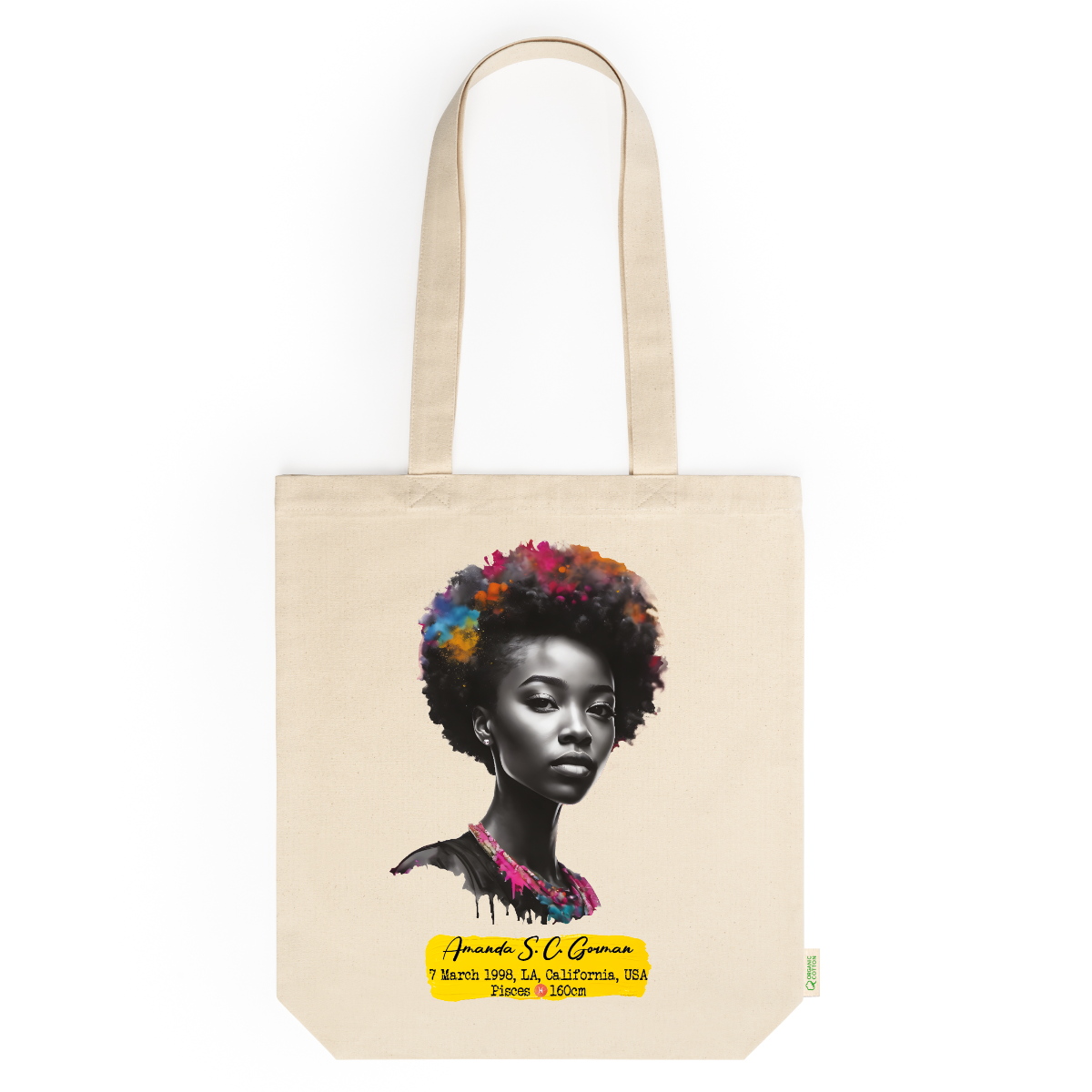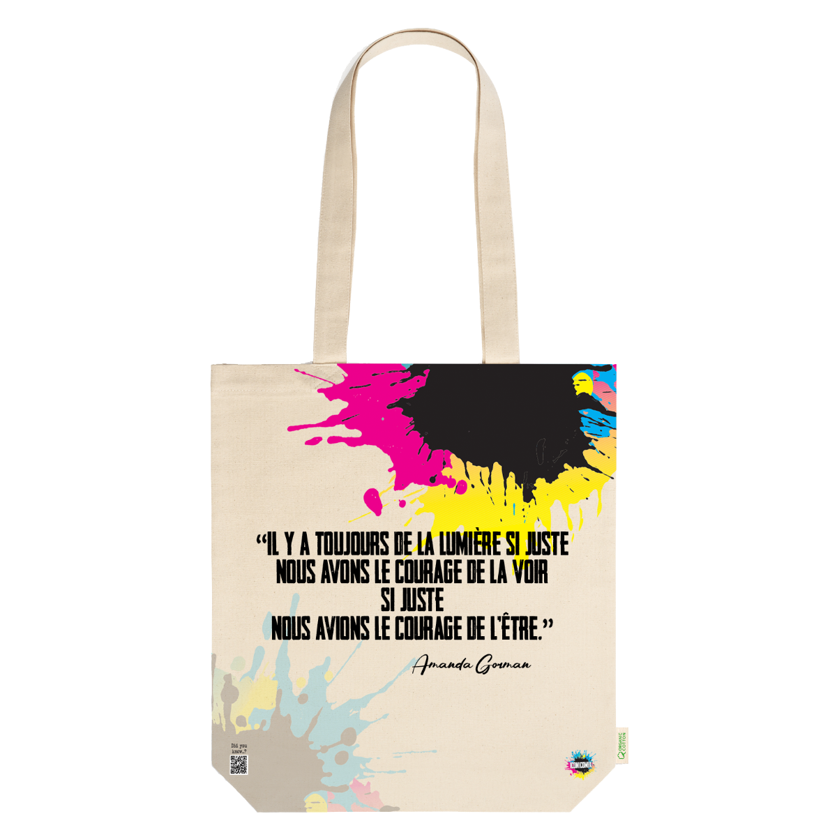 Borsa 100% cotone biologico 280 g/m² con soffietto e pratici manici lunghi 70 cm.  38cm/42cm/9cm