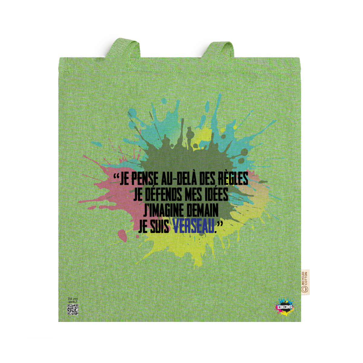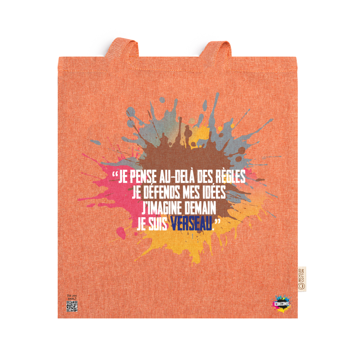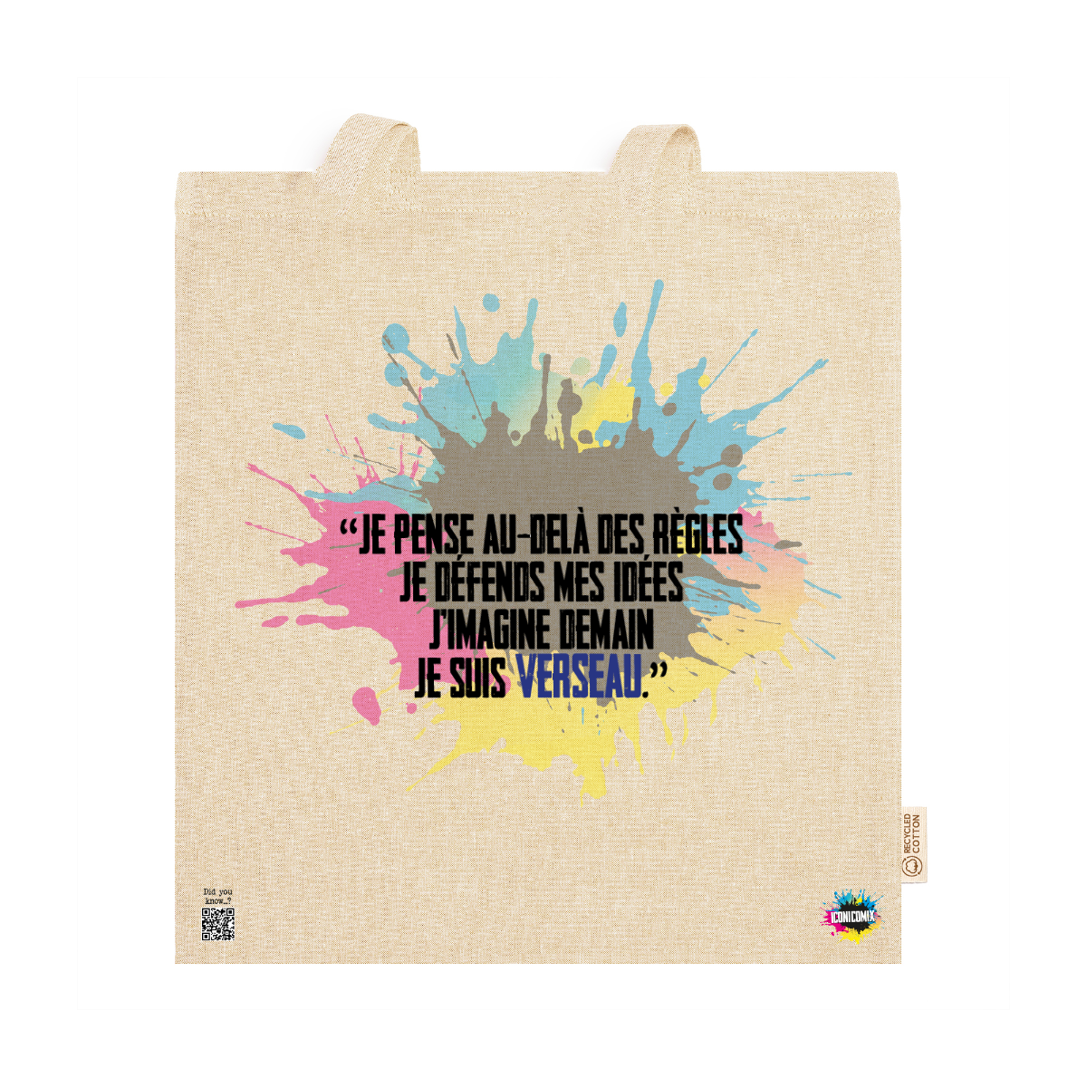 In ogni nostra grafica è presente anche un QR code che reindirizza al sito iconicomix.com, alla pagina ufficiale dell’icona che hai scelto. Una porta digitale che racconta la sua storia, le sue frasi e il suo mondo.