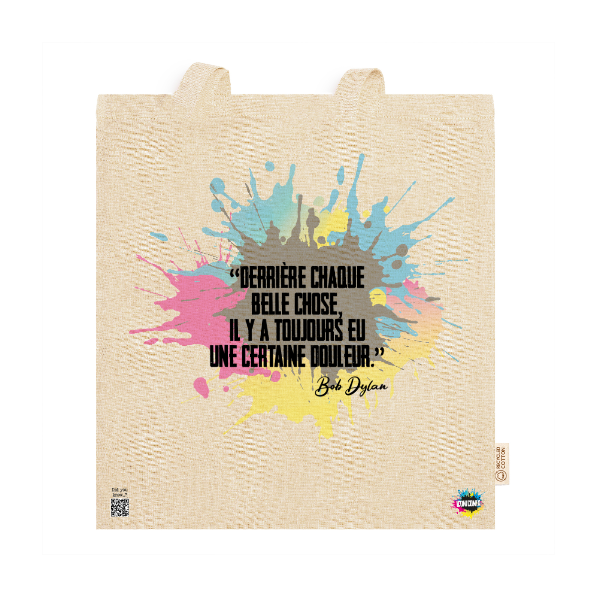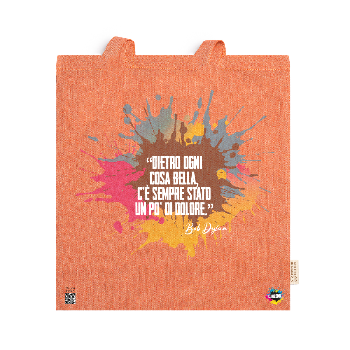 In ogni nostra grafica è presente anche un QR code che reindirizza al sito iconicomix.com, alla pagina ufficiale dell’icona che hai scelto. Una porta digitale che racconta la sua storia, le sue frasi e il suo mondo.