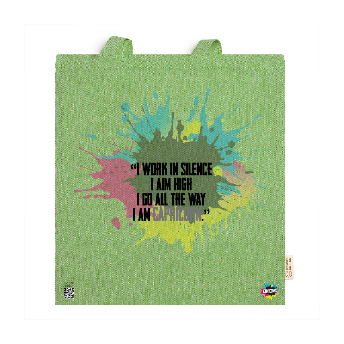 In ogni nostra grafica è presente anche un QR code che reindirizza al sito iconicomix.com, alla pagina ufficiale dell’icona che hai scelto. Una porta digitale che racconta la sua storia, le sue frasi e il suo mondo.