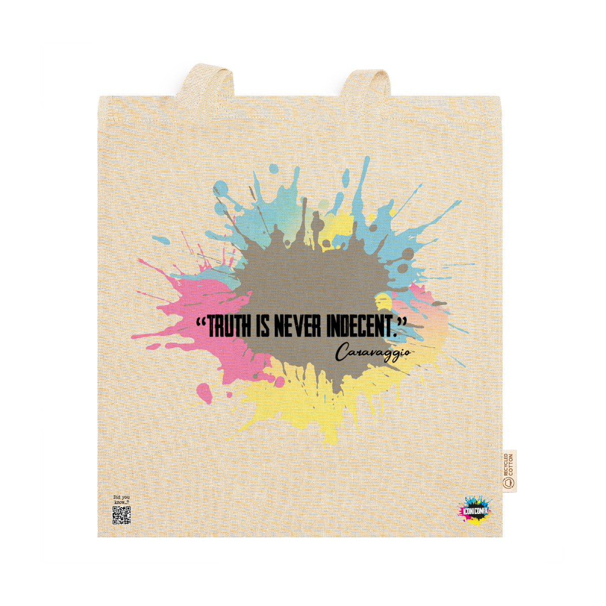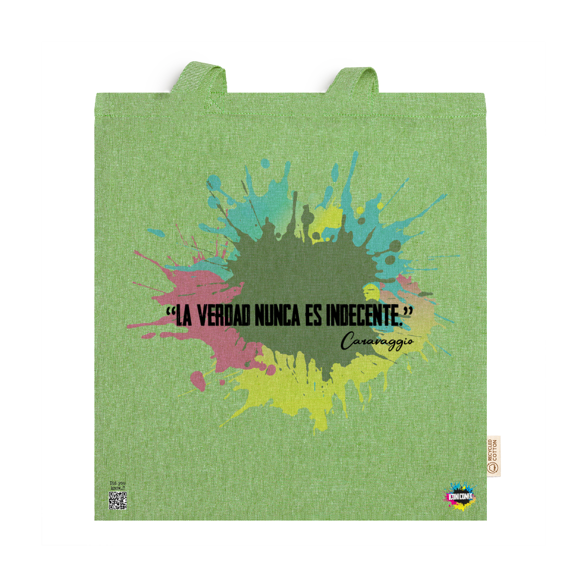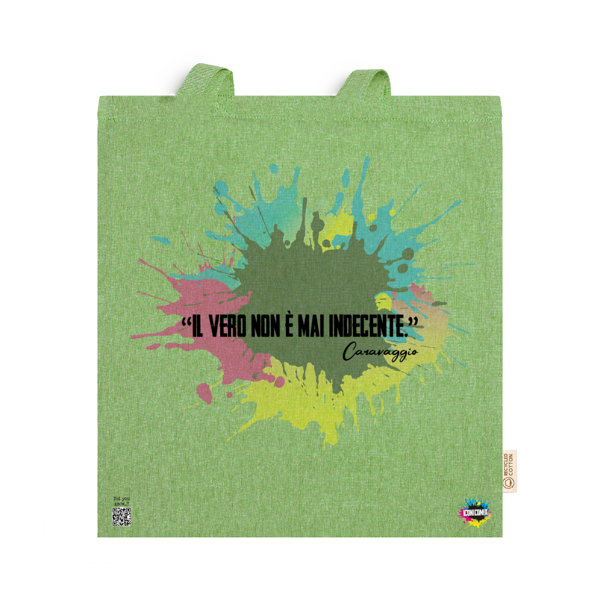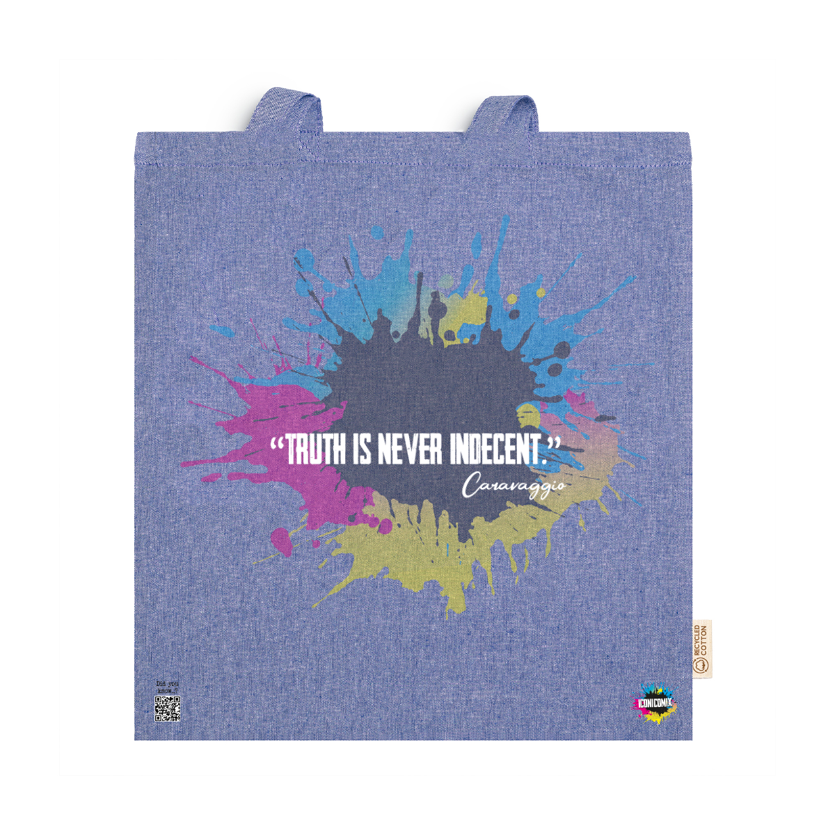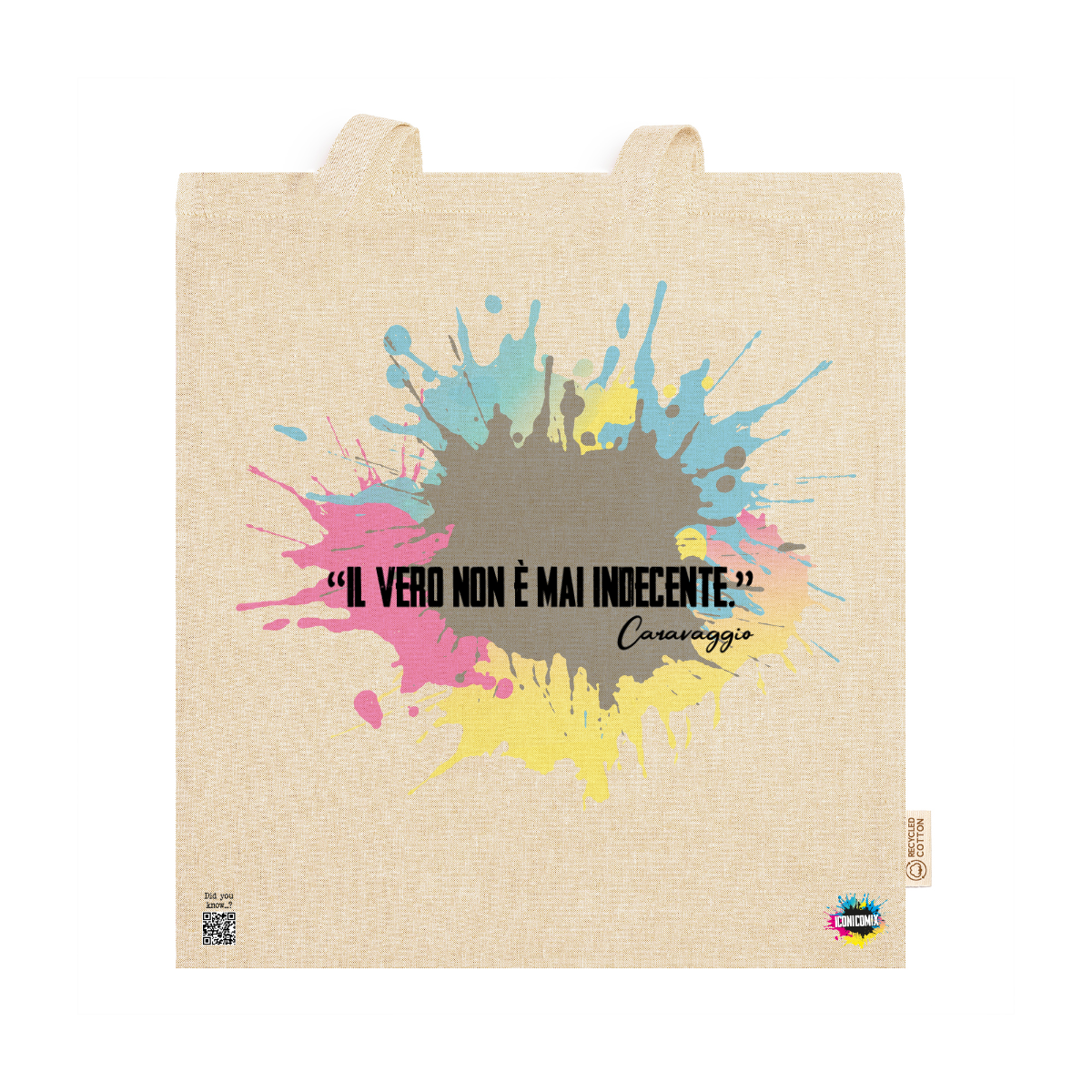 In ogni nostra grafica è presente anche un QR code che reindirizza al sito iconicomix.com, alla pagina ufficiale dell’icona che hai scelto. Una porta digitale che racconta la sua storia, le sue frasi e il suo mondo.