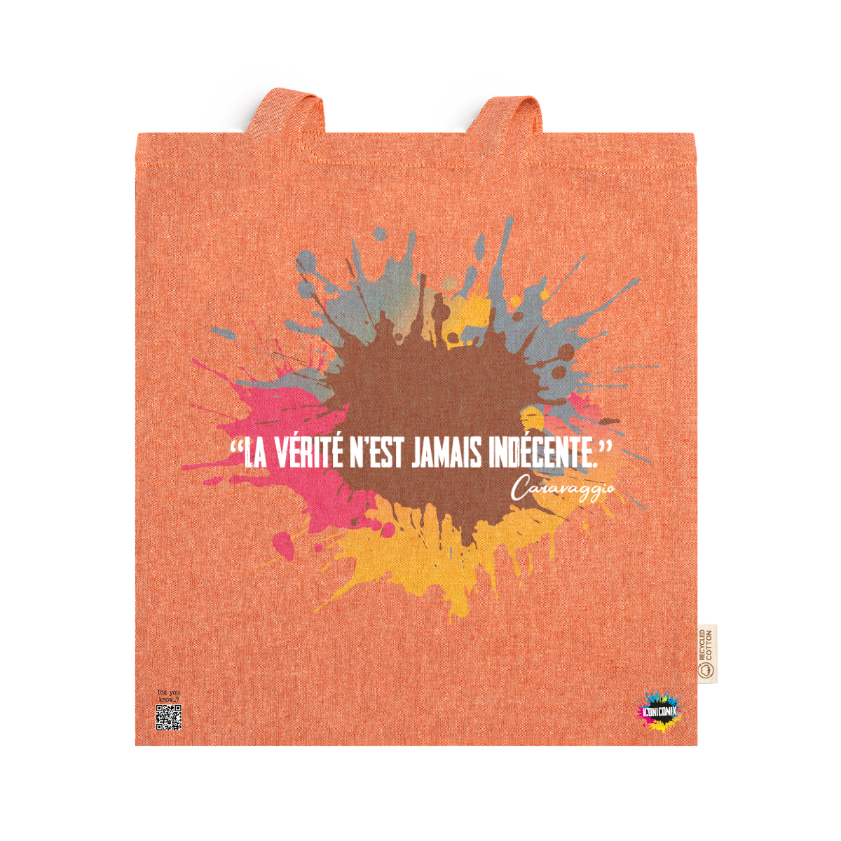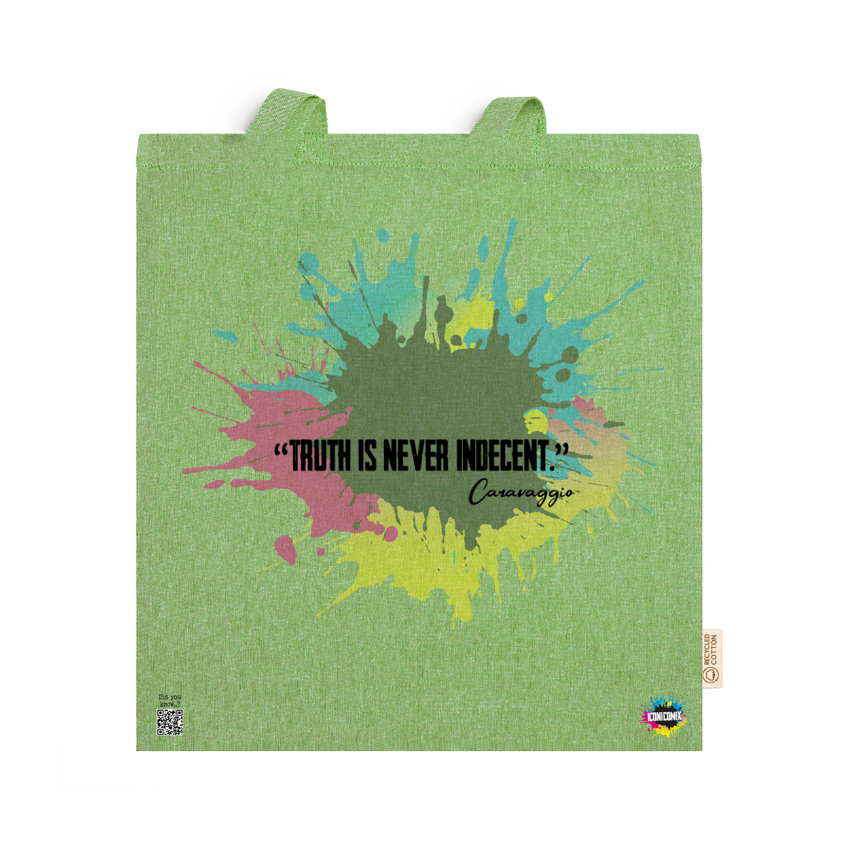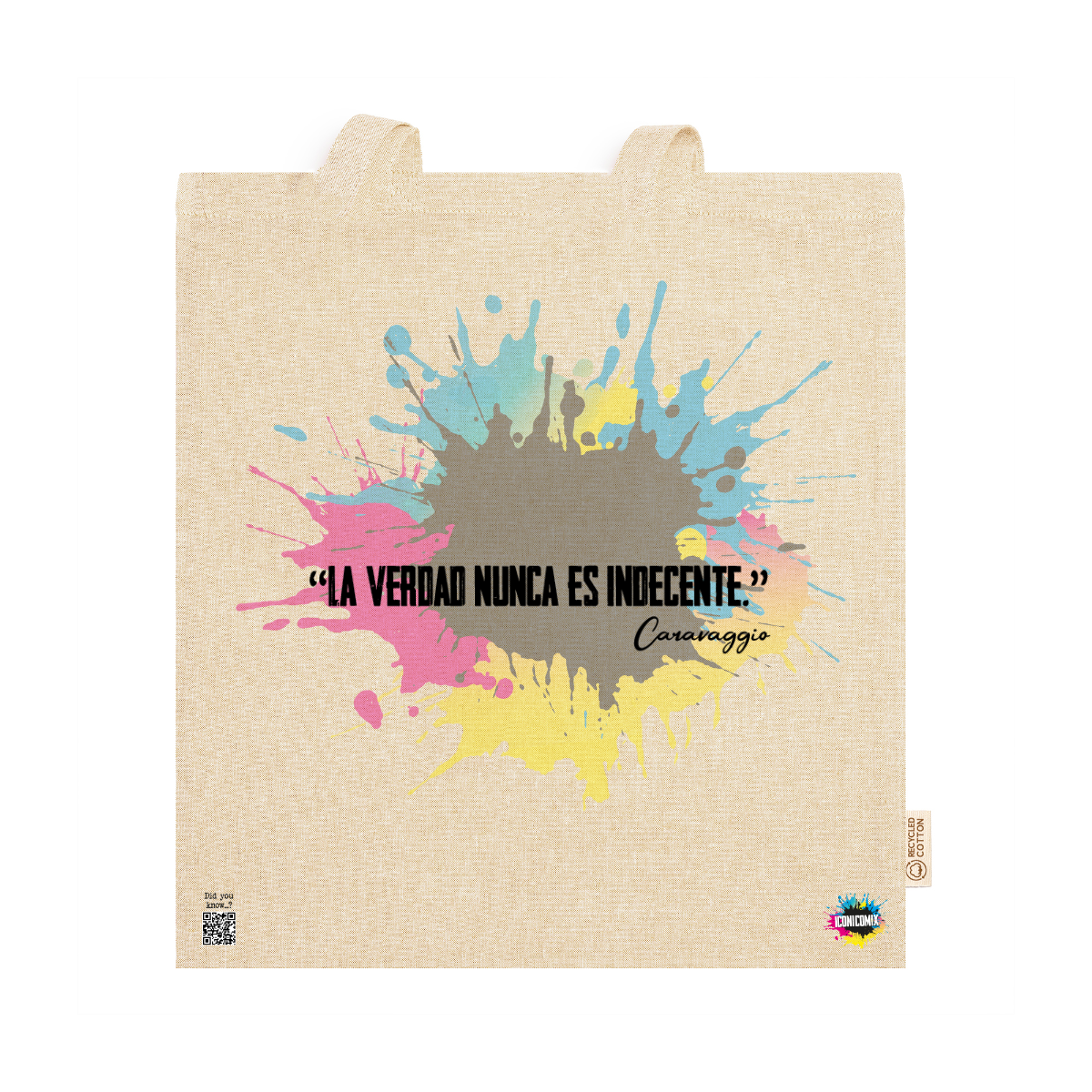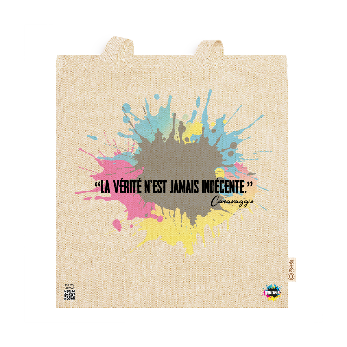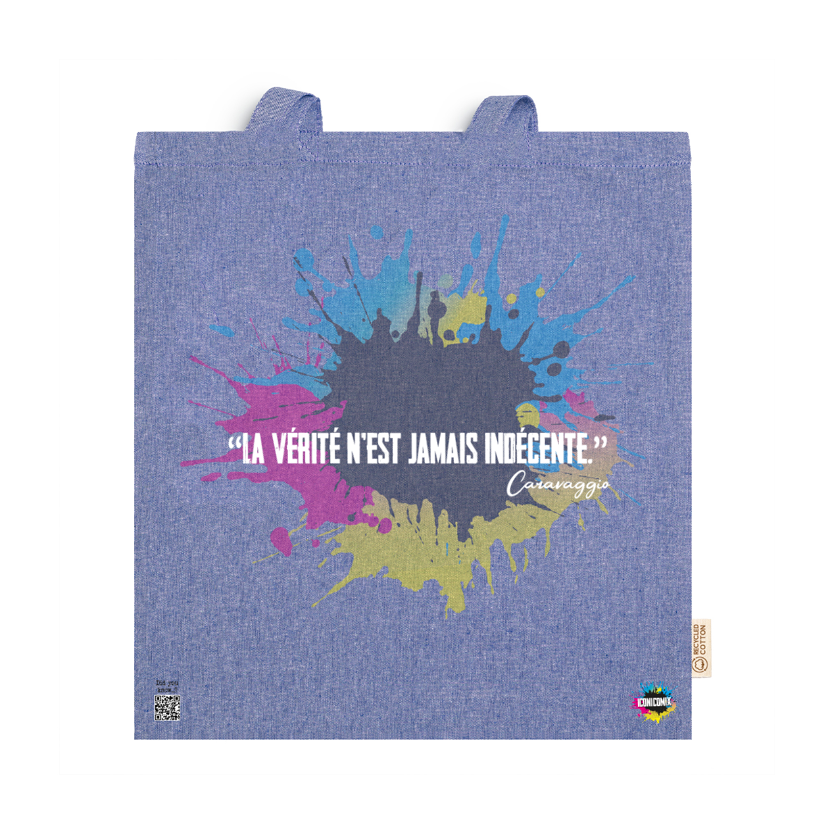 In ogni nostra grafica è presente anche un QR code che reindirizza al sito iconicomix.com, alla pagina ufficiale dell’icona che hai scelto. Una porta digitale che racconta la sua storia, le sue frasi e il suo mondo.