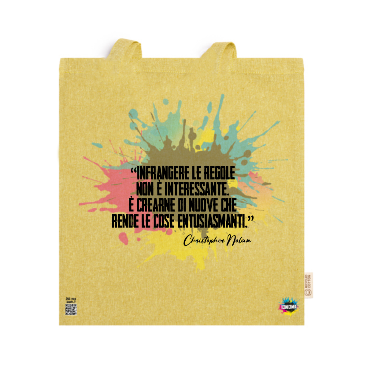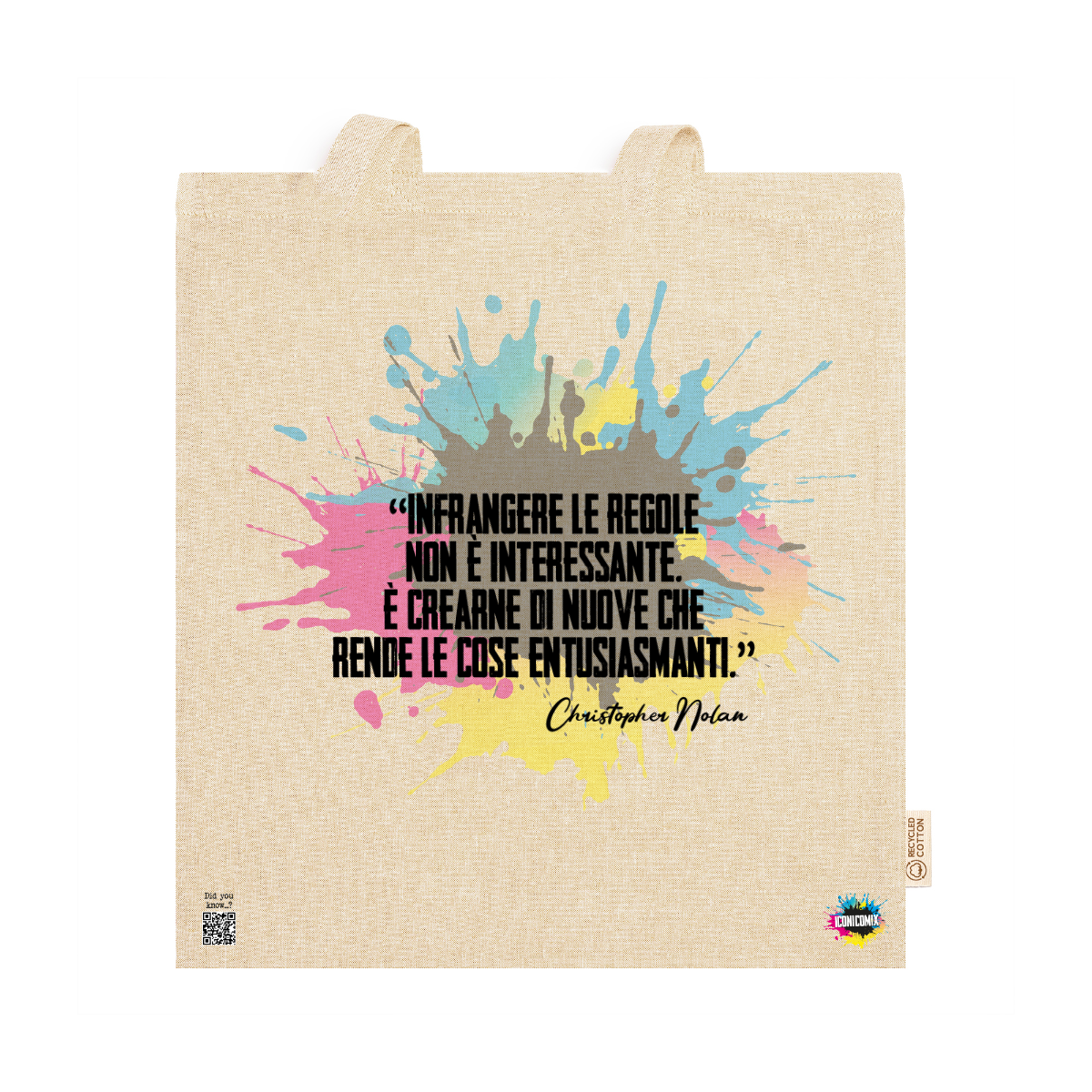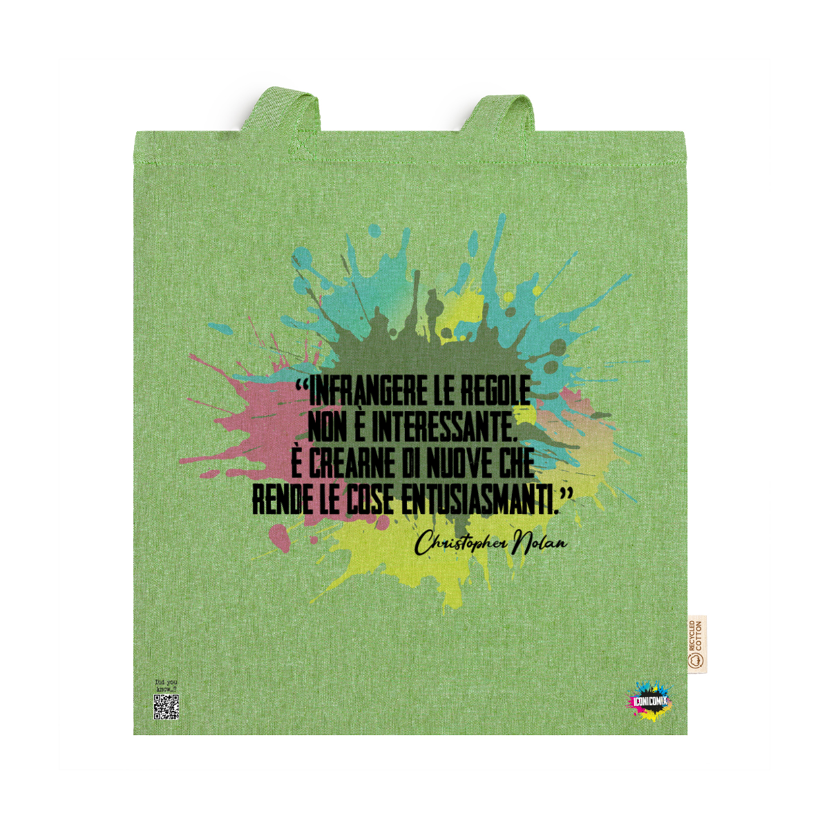 In ogni nostra grafica è presente anche un QR code che reindirizza al sito iconicomix.com, alla pagina ufficiale dell’icona che hai scelto. Una porta digitale che racconta la sua storia, le sue frasi e il suo mondo.