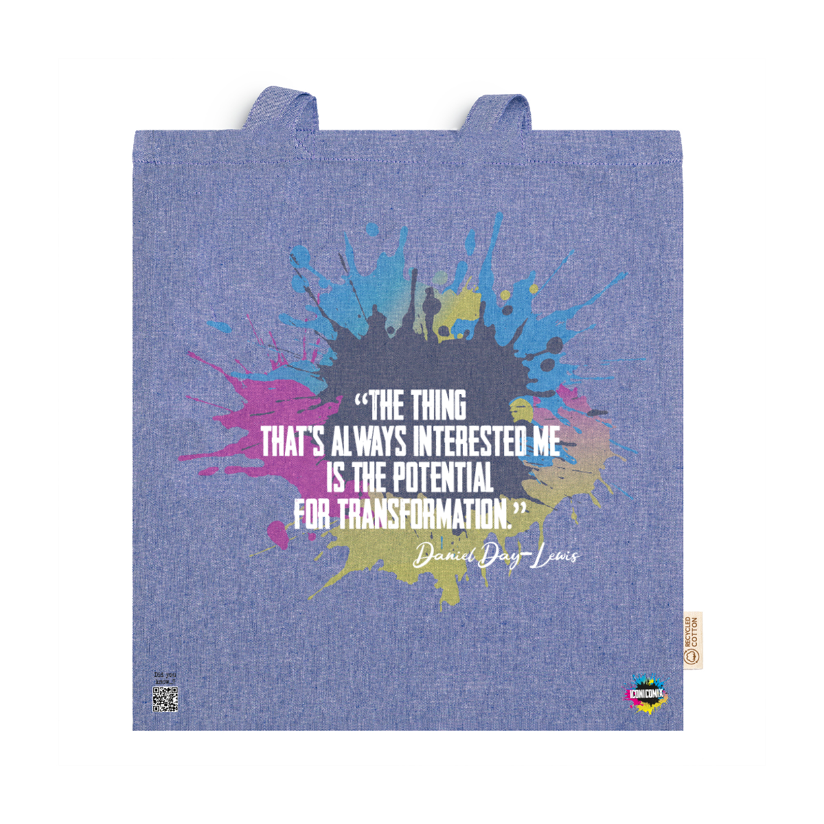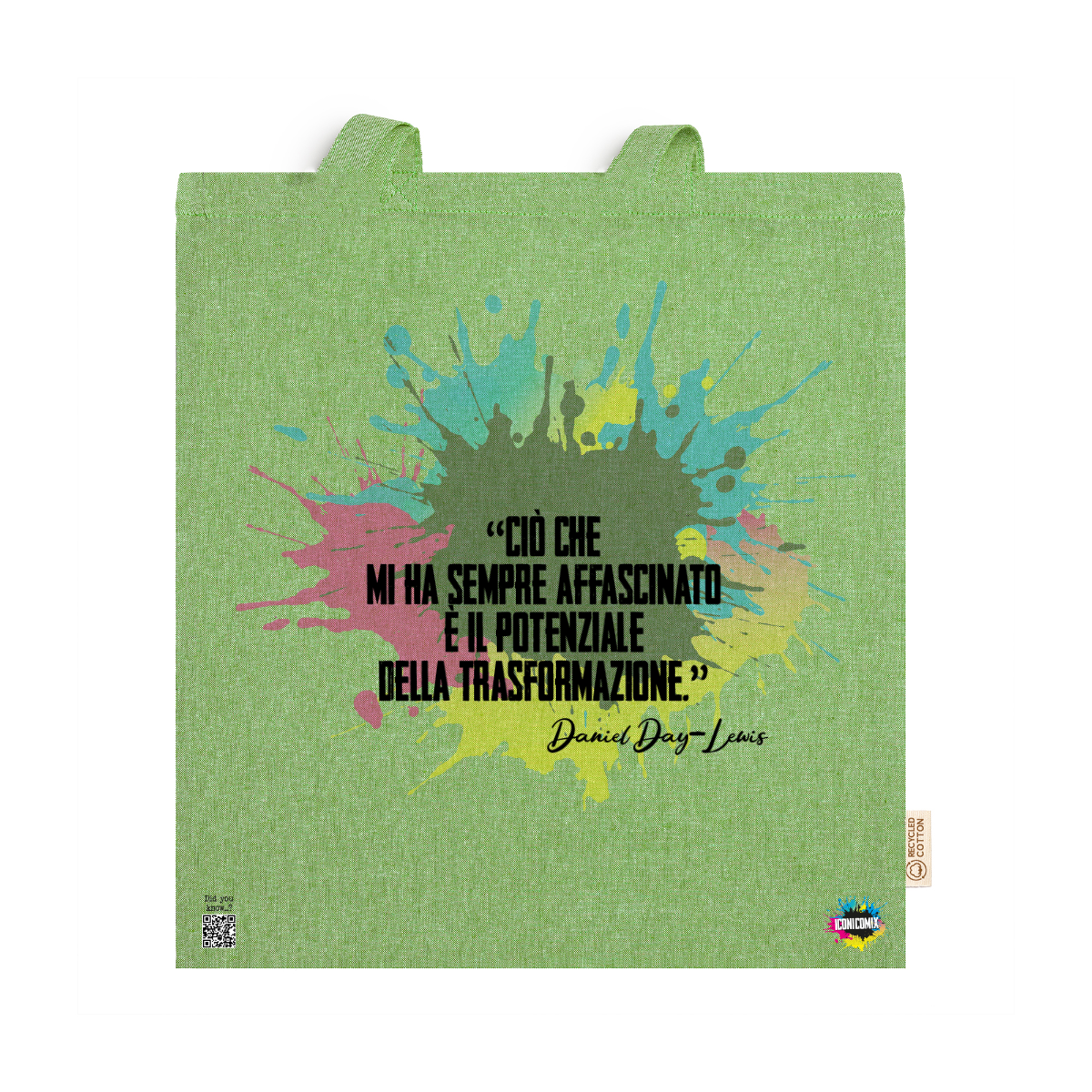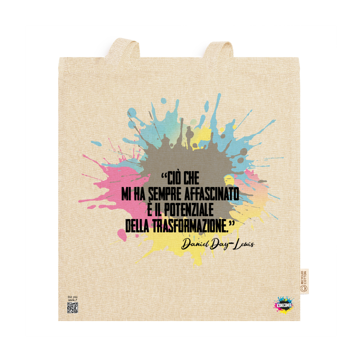 In ogni nostra grafica è presente anche un QR code che reindirizza al sito iconicomix.com, alla pagina ufficiale dell’icona che hai scelto. Una porta digitale che racconta la sua storia, le sue frasi e il suo mondo.