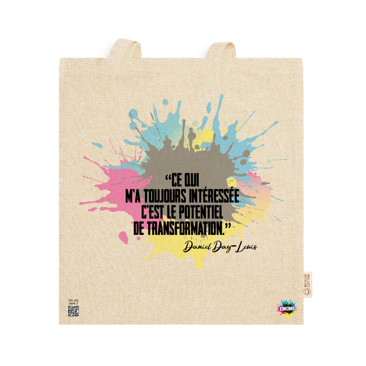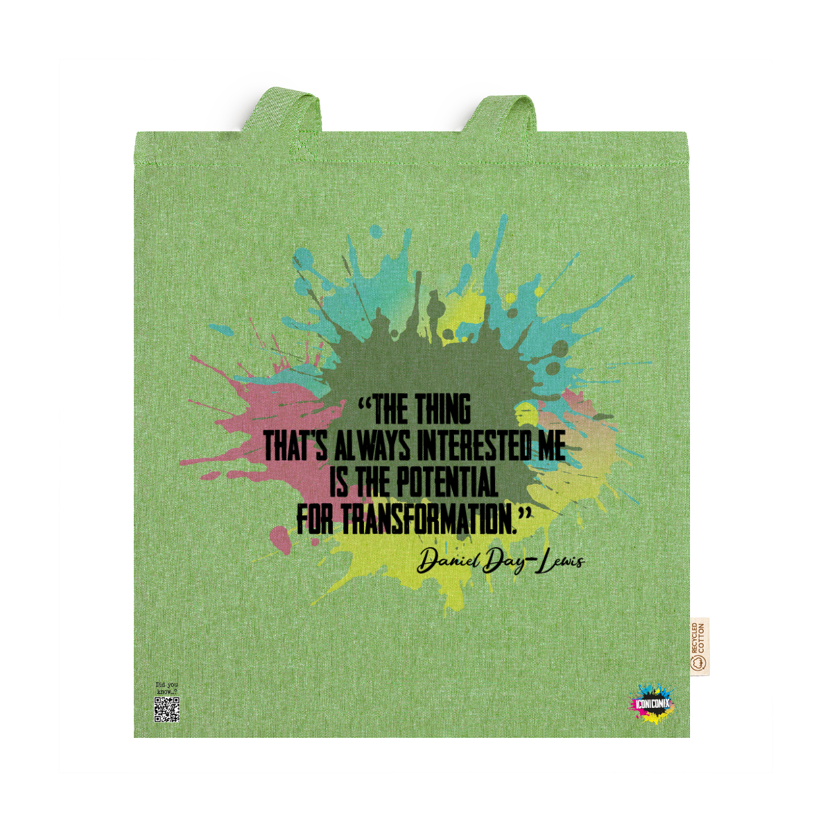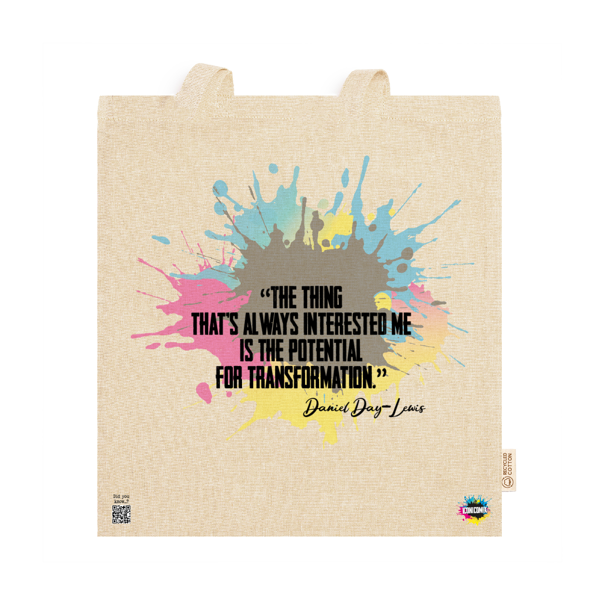 In ogni nostra grafica è presente anche un QR code che reindirizza al sito iconicomix.com, alla pagina ufficiale dell’icona che hai scelto. Una porta digitale che racconta la sua storia, le sue frasi e il suo mondo.